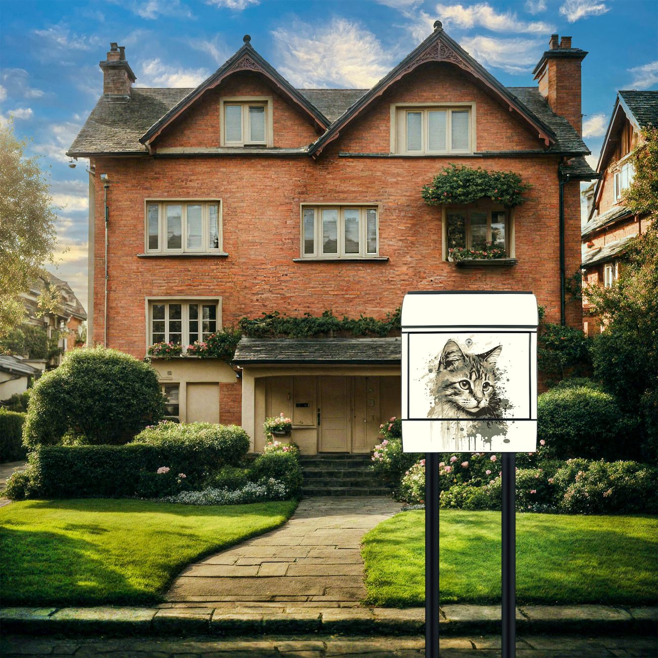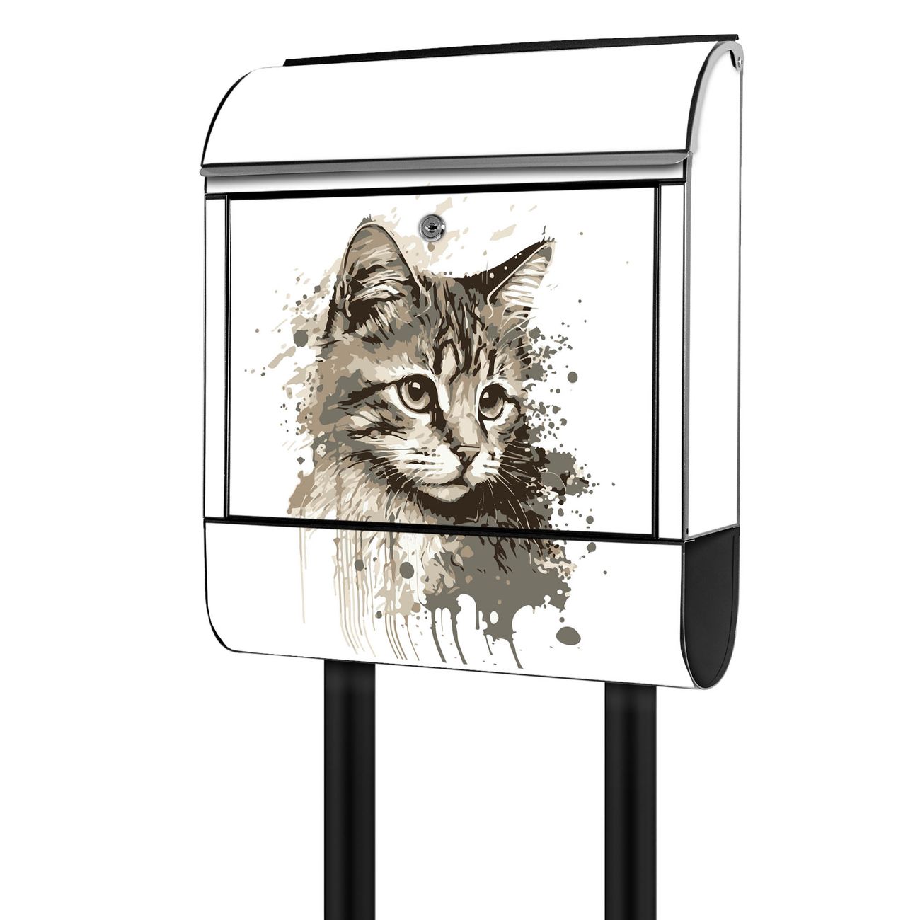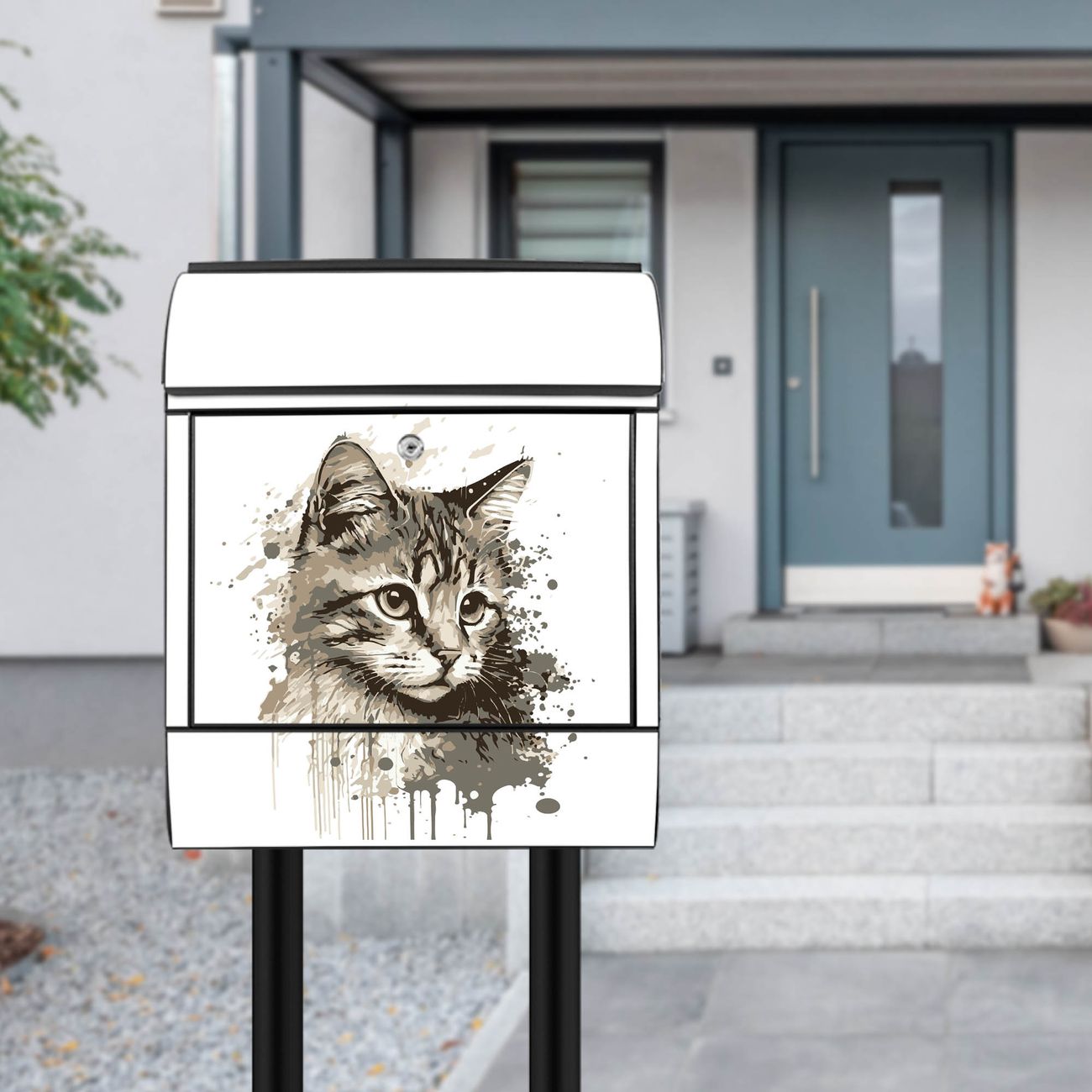 Standbriefkasten Stahl Motiv Katzenportrait in Aquarell 3
