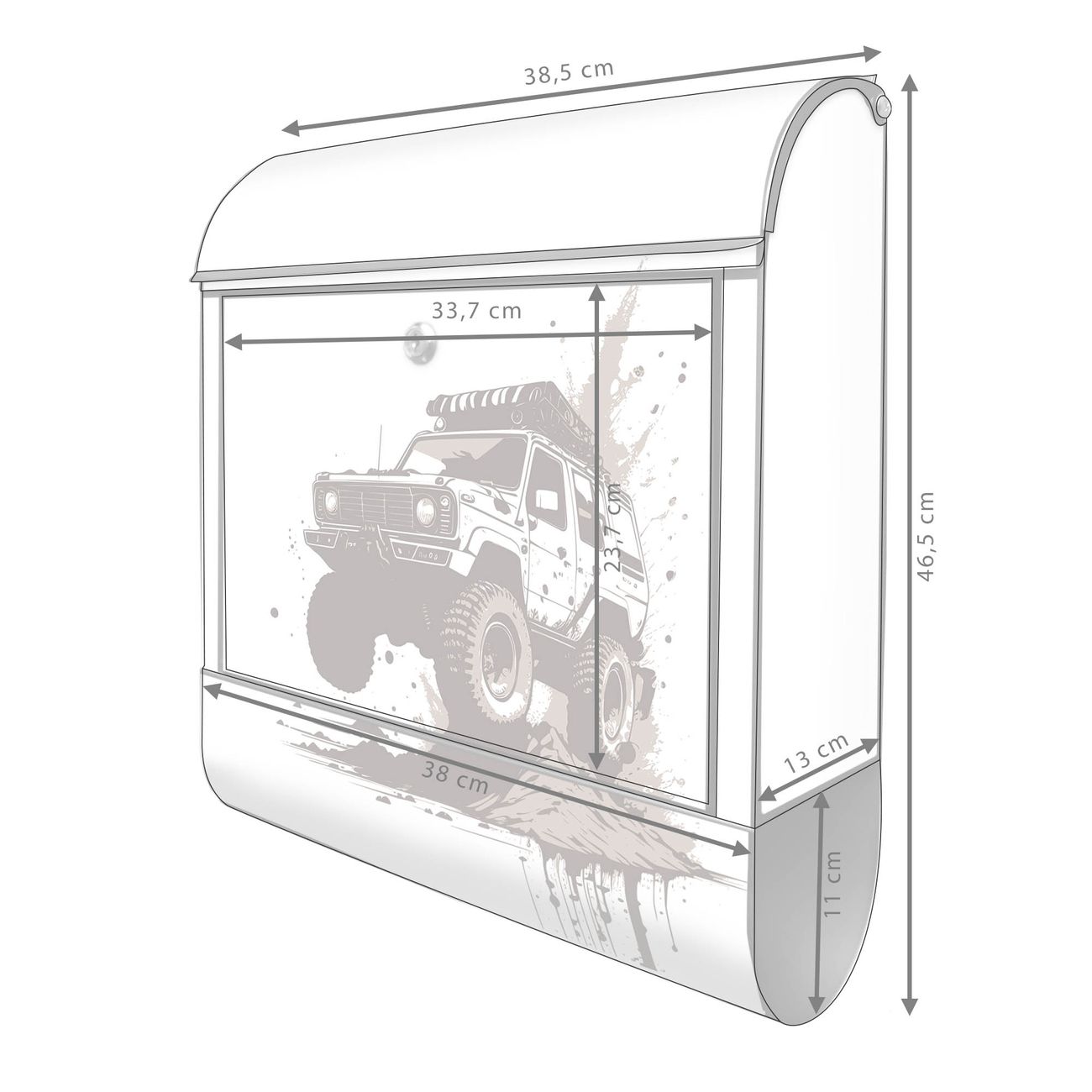 Der banjado Standbriefkasten mit Motiv Motiv Offroad Abenteuer 3 kombiniert großzügigen Stauraum mit modernem Design. Durch das geräumige Fach finden auch große A4-Sendungen problemlos Platz. Die integrierte Zeitungsrolle sorgt dafür, dass Tageszeitungen und Magazine separat und griffbereit untergebracht sind. Der pulverbeschichtete Standfuß ist farblich passend zum Briefkasten gestaltet und sorgt für ein stimmiges Gesamtbild. Mit dem individuellen Motiv setzen Sie einen optischen Akzent, der sowohl praktisch als auch dekorativ ist.