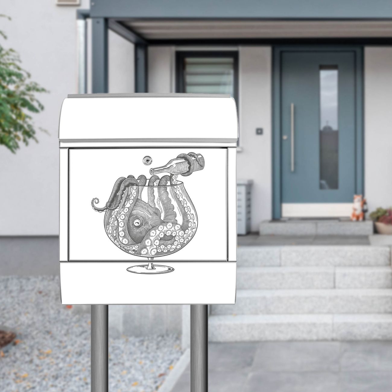 Standbriefkasten Stahl Motiv Oktopus im Glas 2