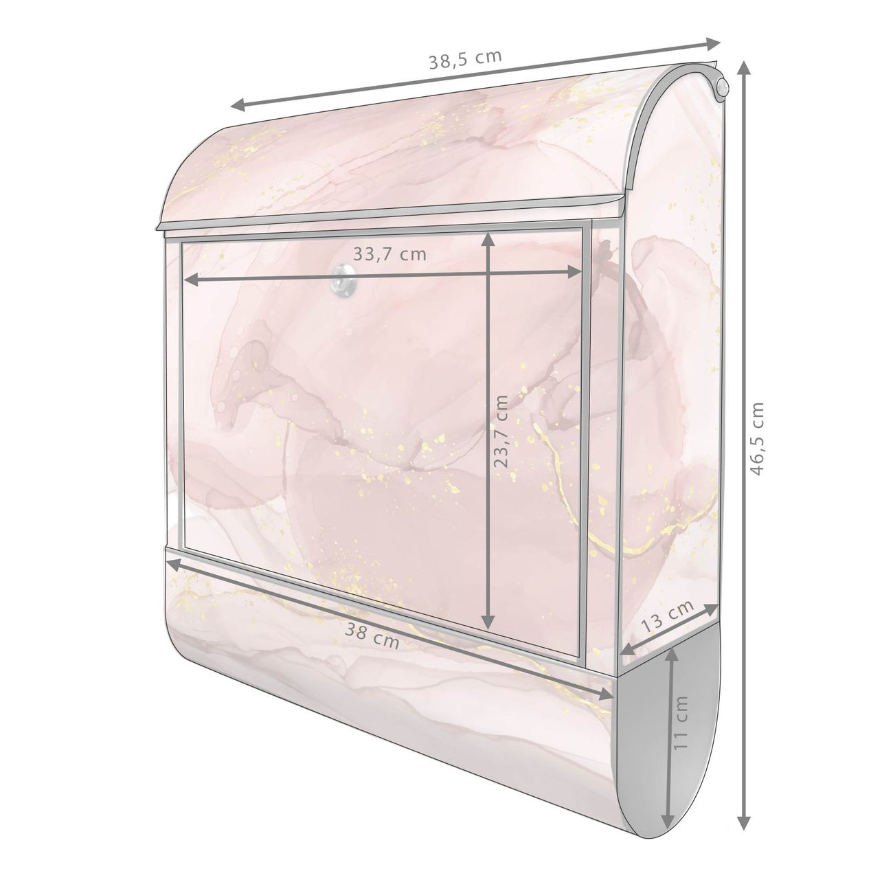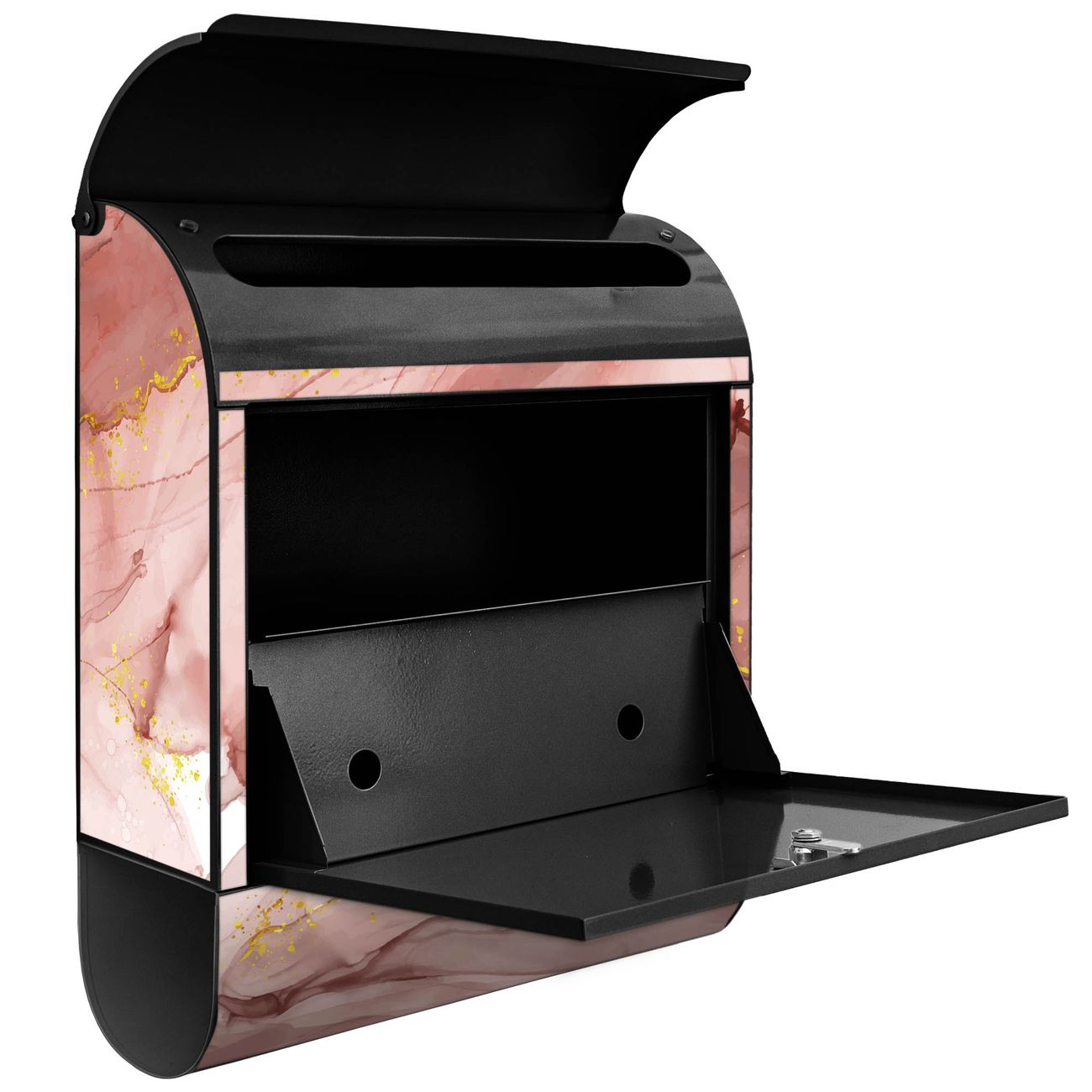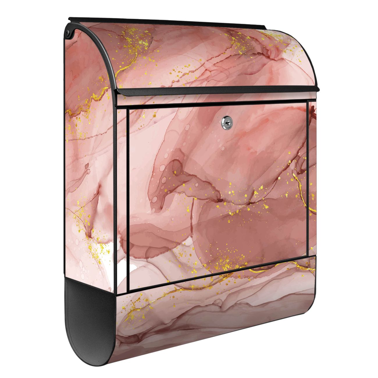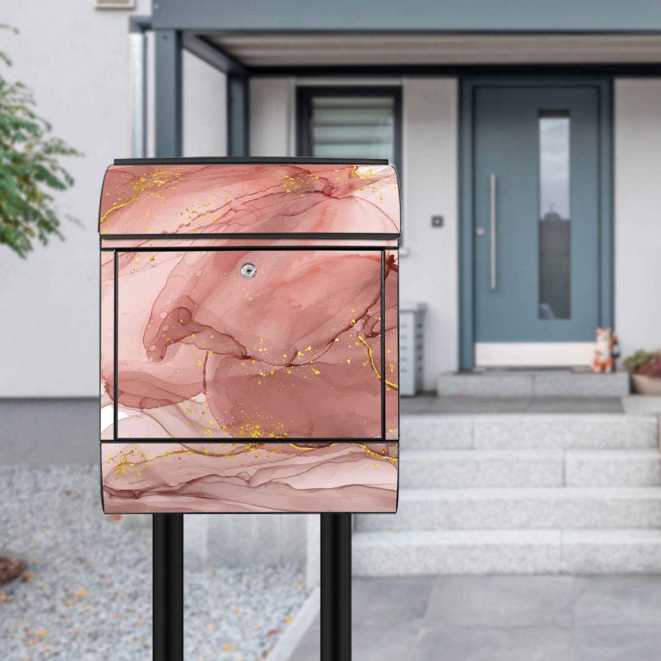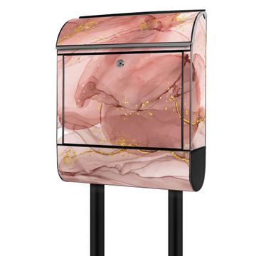 Standbriefkasten Stahl Motiv Rosa Marmor mit Gold 1