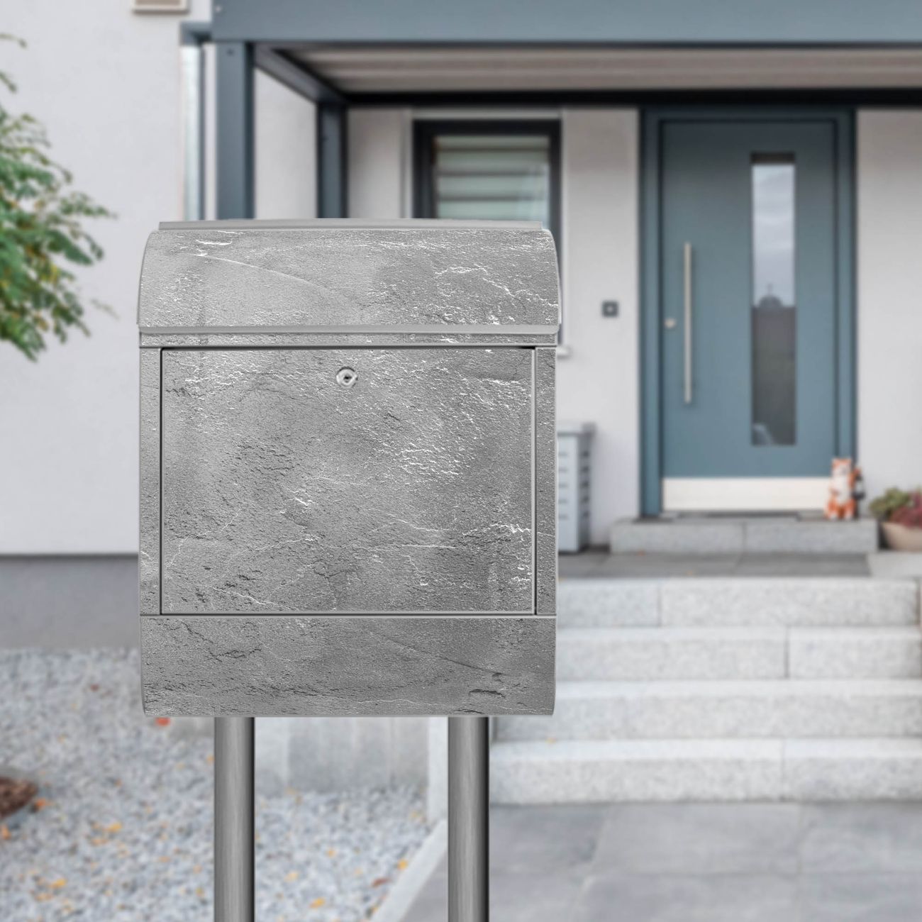 Standbriefkasten Stahl Motiv Schiefer Platte 3