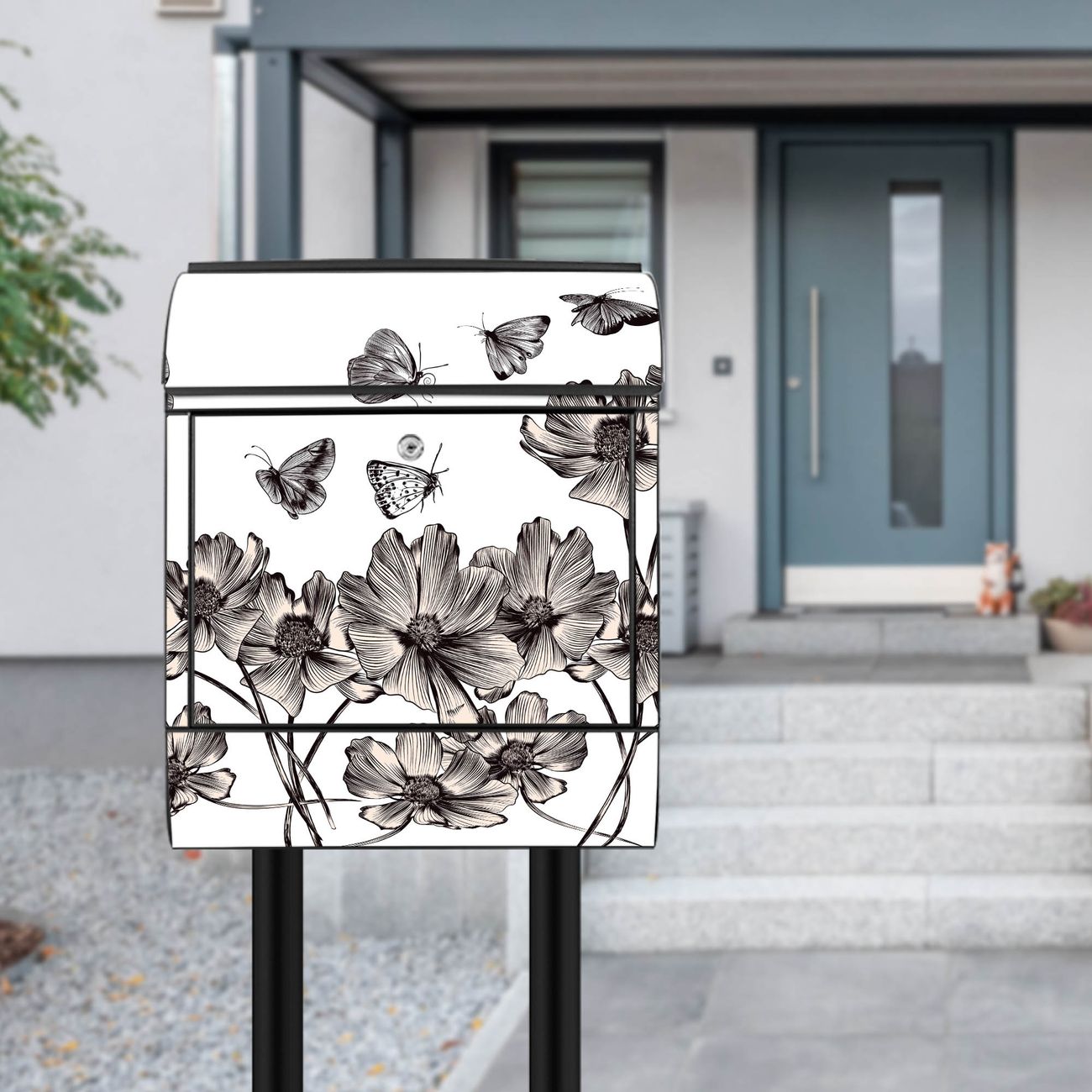 Standbriefkasten Stahl Motiv Schmetterlingsgarten