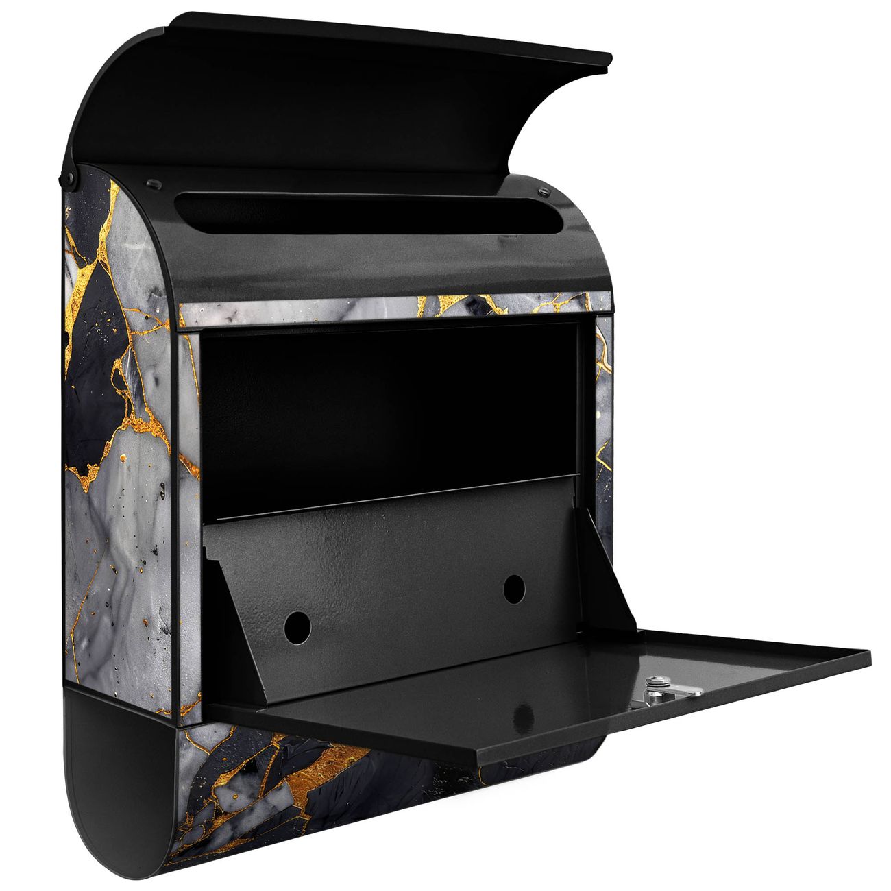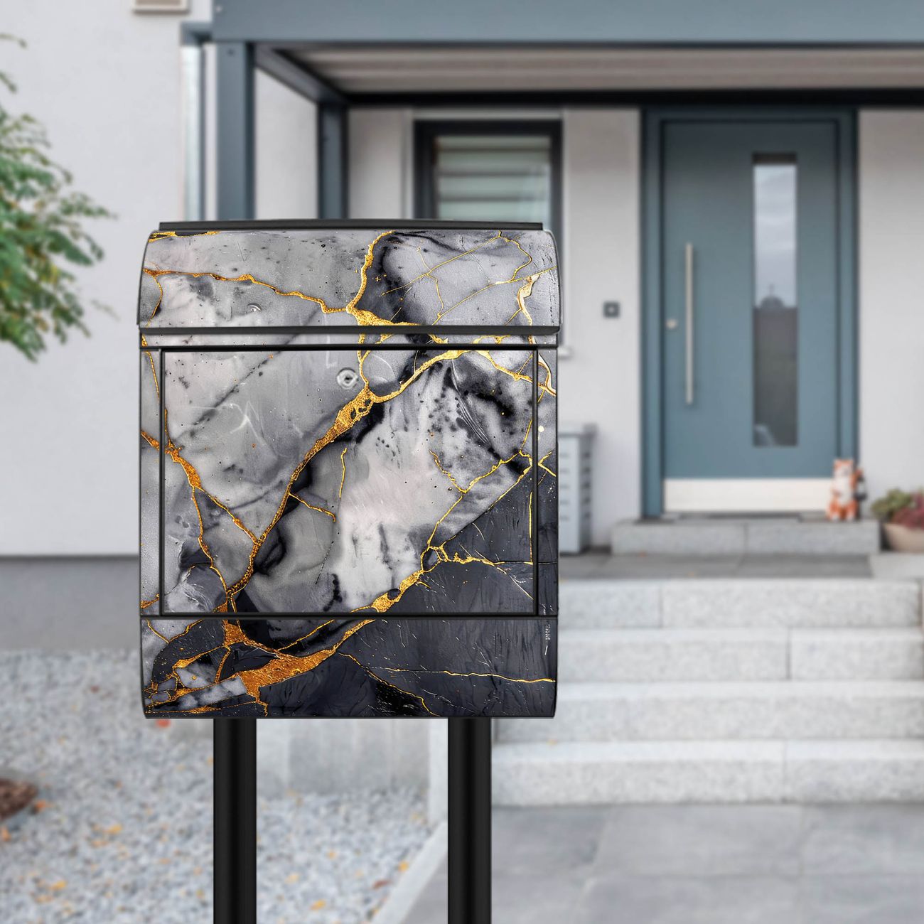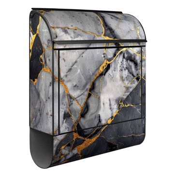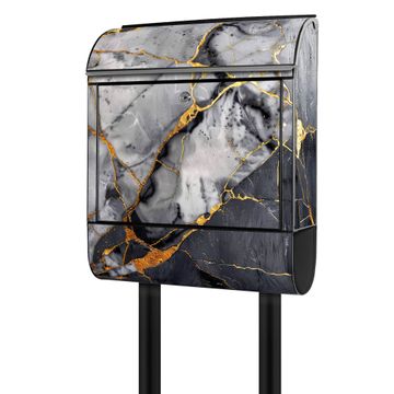 Standbriefkasten Stahl Motiv Schwarzer Marmor mit Gold 2