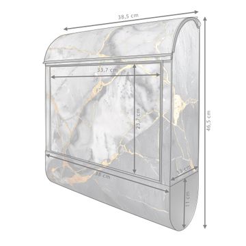 Der banjado Standbriefkasten mit Motiv Motiv Schwarzer Marmor mit Gold 2 kombiniert großzügigen Stauraum mit modernem Design. Durch das geräumige Fach finden auch große A4-Sendungen problemlos Platz. Die integrierte Zeitungsrolle sorgt dafür, dass Tageszeitungen und Magazine separat und griffbereit untergebracht sind. Der pulverbeschichtete Standfuß ist farblich passend zum Briefkasten gestaltet und sorgt für ein stimmiges Gesamtbild. Mit dem individuellen Motiv setzen Sie einen optischen Akzent, der sowohl praktisch als auch dekorativ ist.
