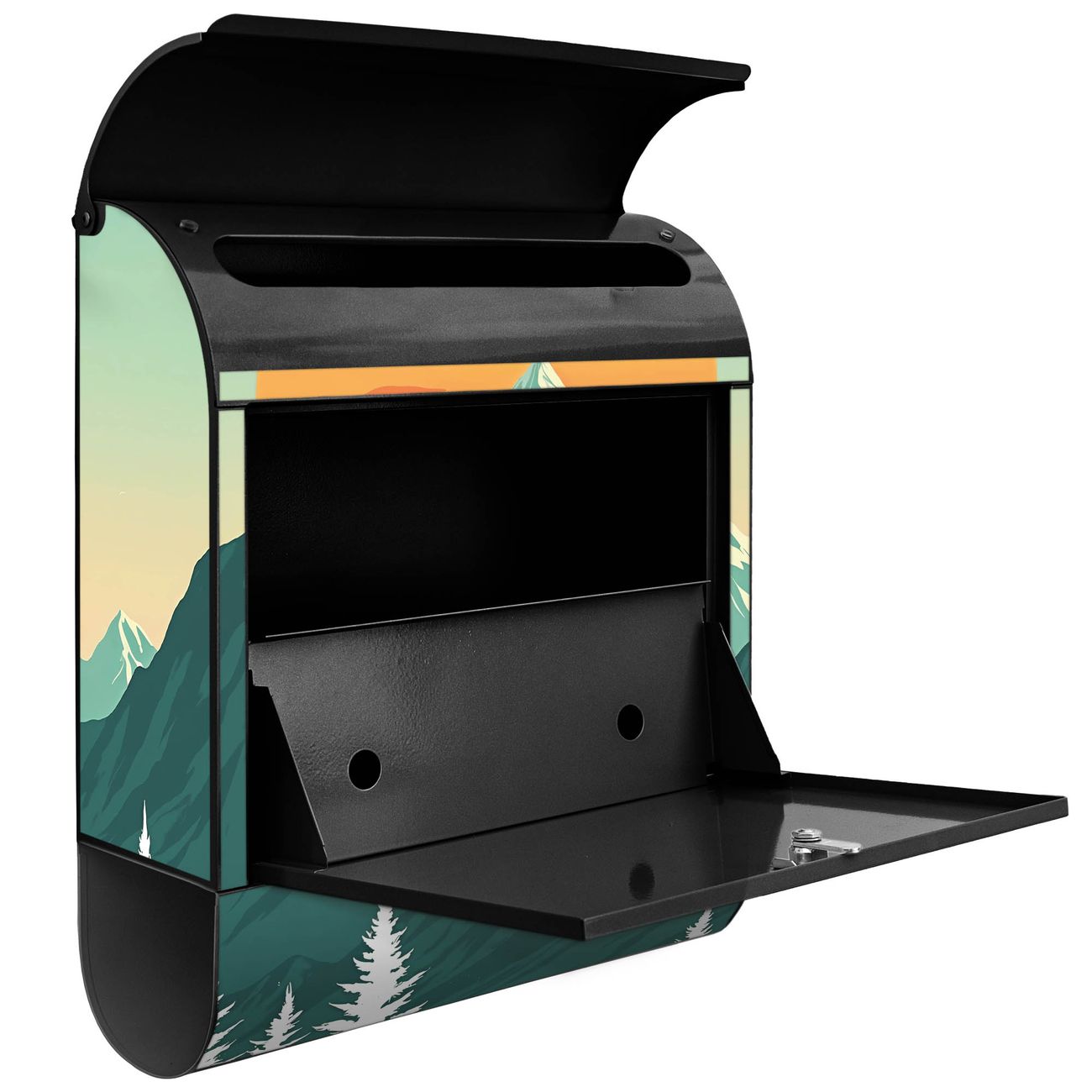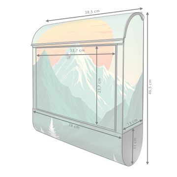 Der banjado Standbriefkasten mit Motiv Motiv Sonnenaufgang über den Bergen kombiniert großzügigen Stauraum mit modernem Design. Durch das geräumige Fach finden auch große A4-Sendungen problemlos Platz. Die integrierte Zeitungsrolle sorgt dafür, dass Tageszeitungen und Magazine separat und griffbereit untergebracht sind. Der pulverbeschichtete Standfuß ist farblich passend zum Briefkasten gestaltet und sorgt für ein stimmiges Gesamtbild. Mit dem individuellen Motiv setzen Sie einen optischen Akzent, der sowohl praktisch als auch dekorativ ist.