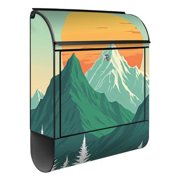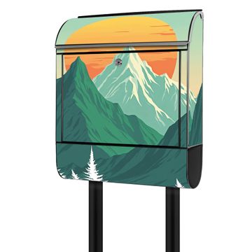 Standbriefkasten Stahl Motiv Sonnenaufgang über den Bergen
