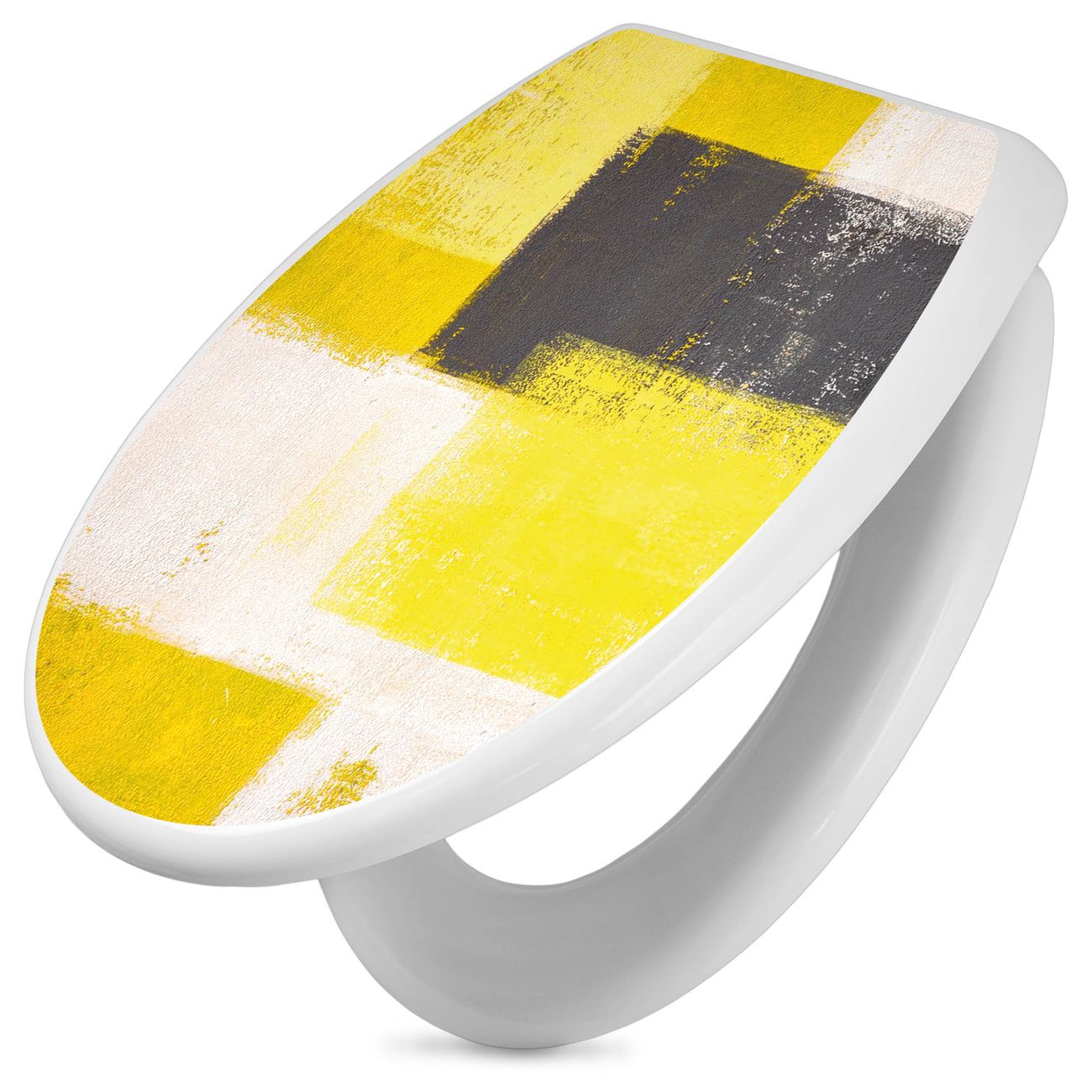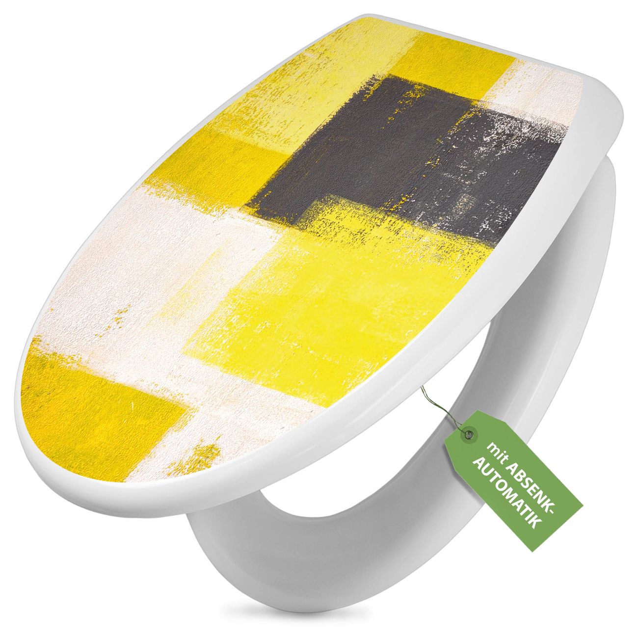 Toilettendeckel weiß mit Absenkautomatik Motiv Abstrakt Gelb