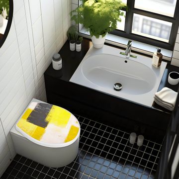 Toilettendeckel weiß mit Absenkautomatik Motiv Abstrakt Gelb
