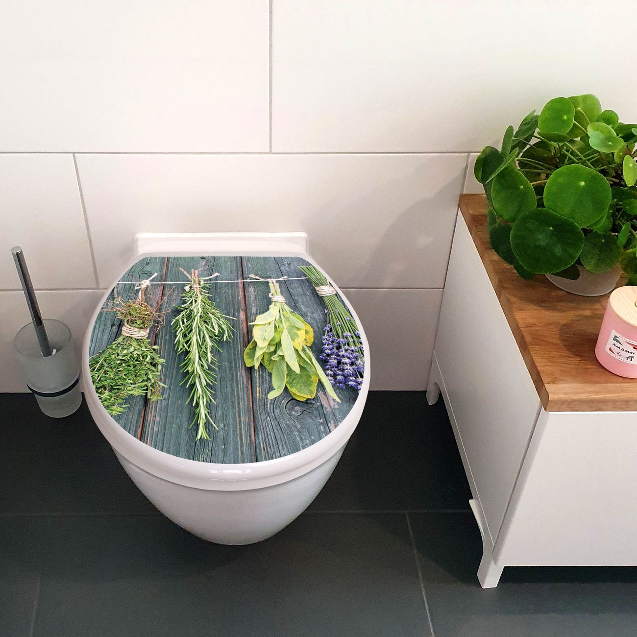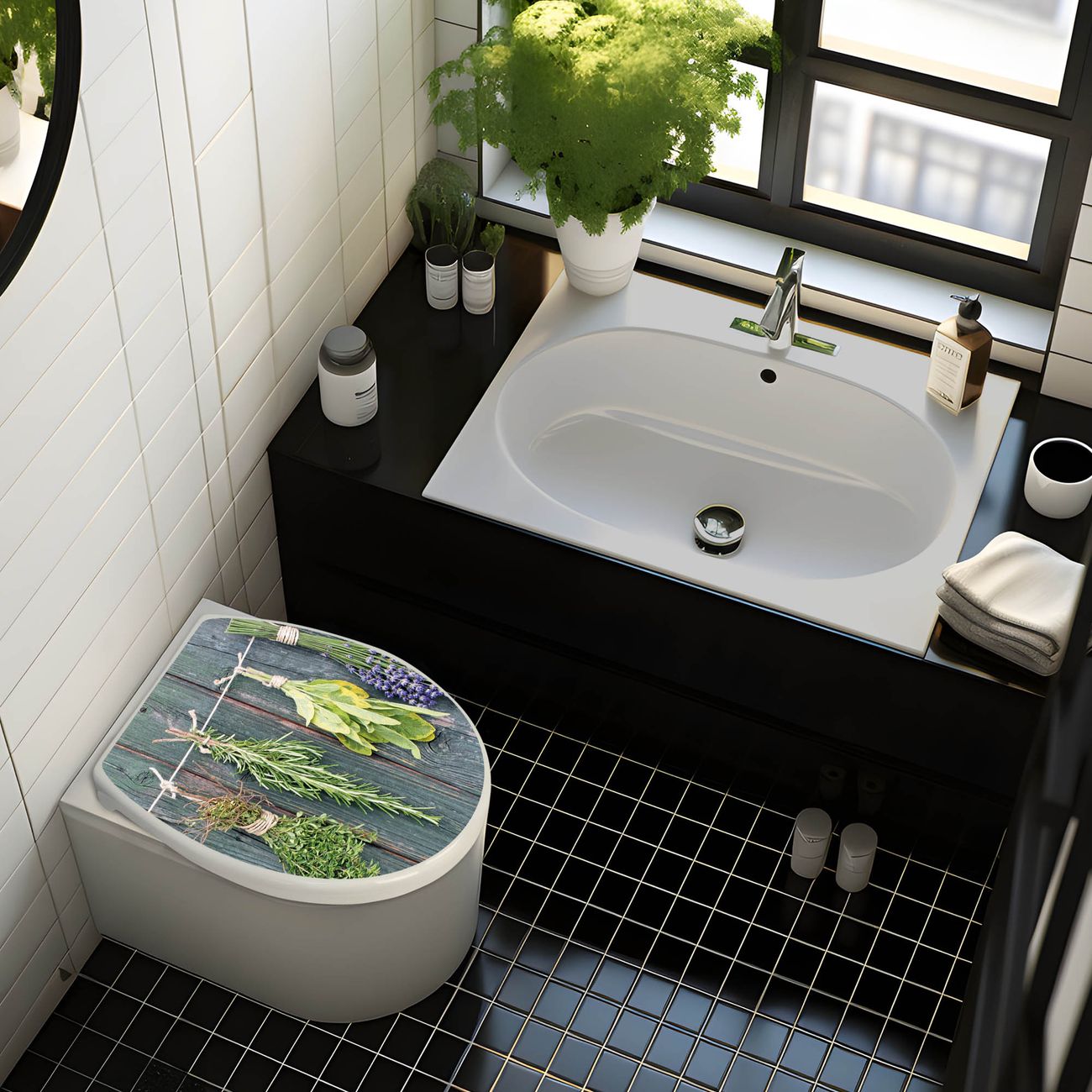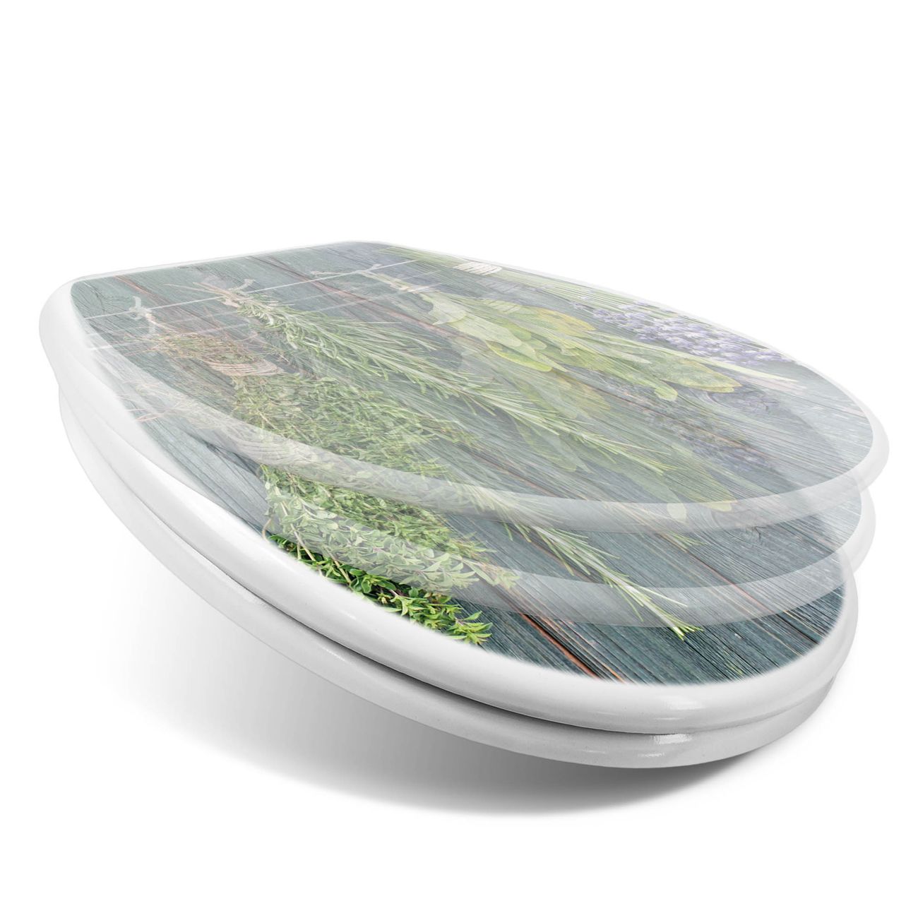 Toilettendeckel weiß mit Absenkautomatik Motiv Acht Kräuter