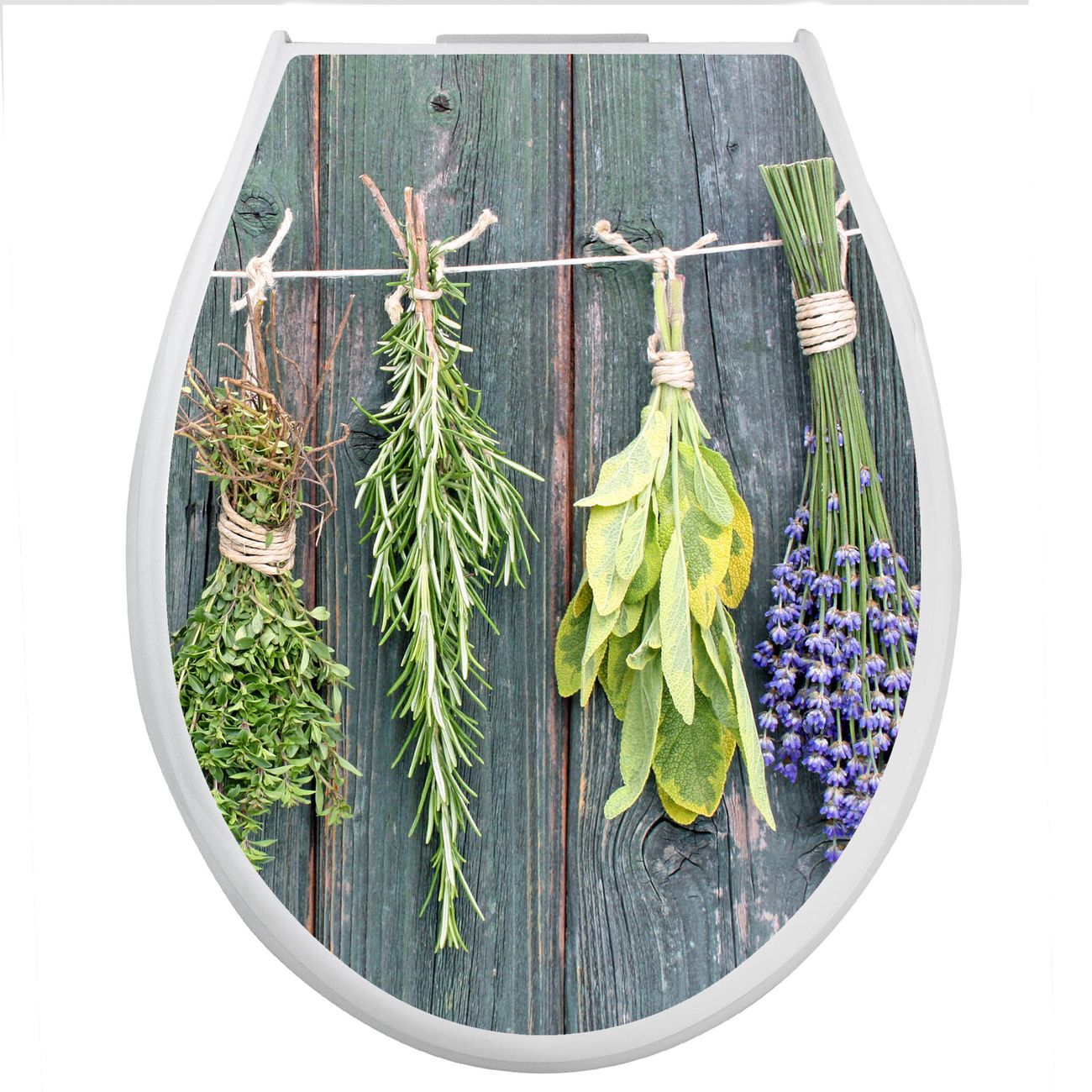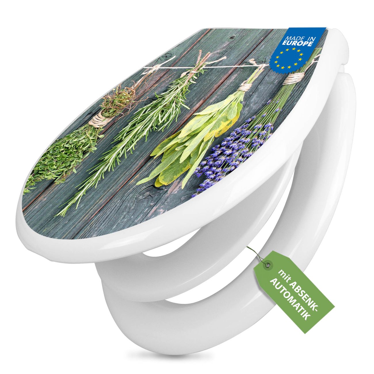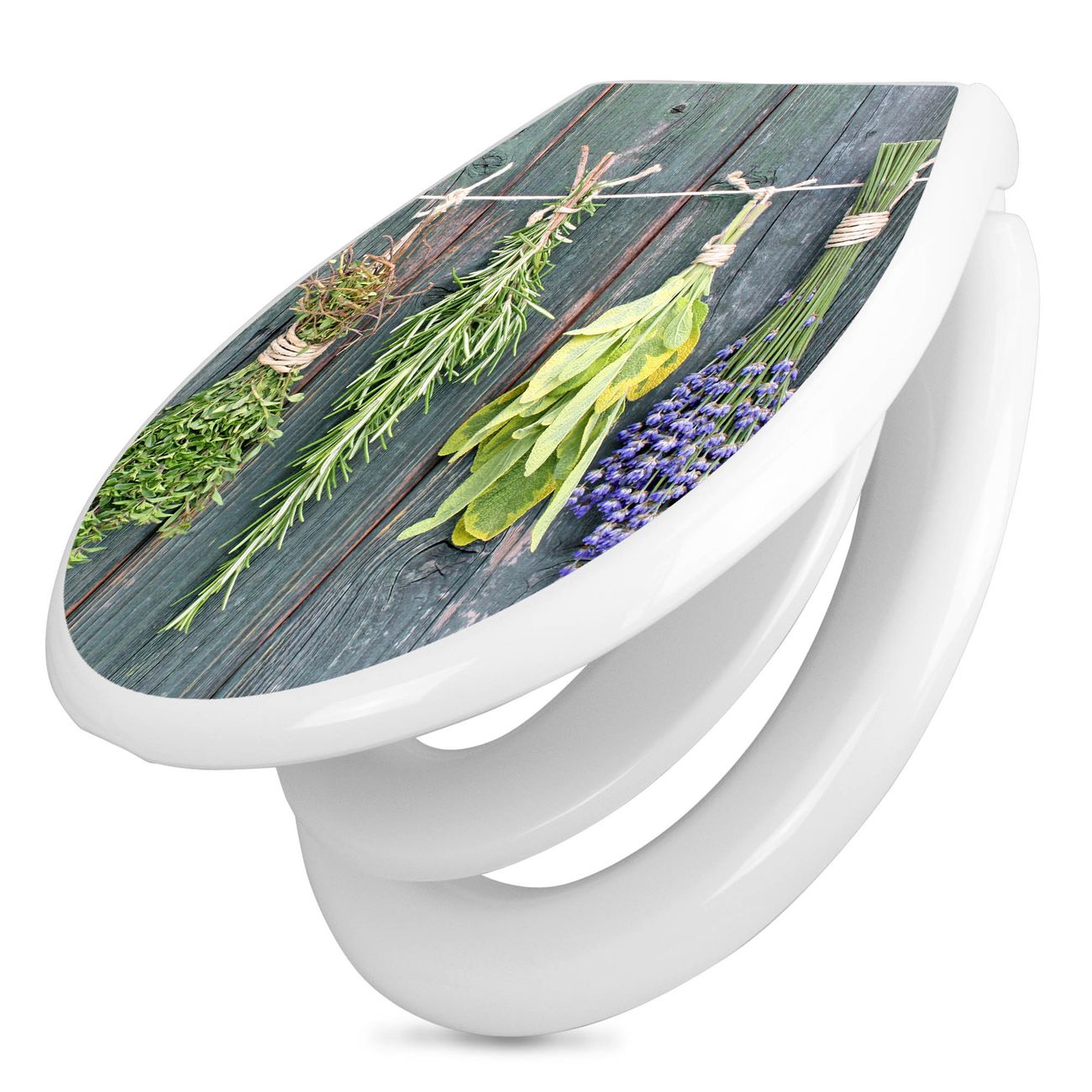 Toilettendeckel weiß mit Absenkautomatik Motiv Acht Kräuter