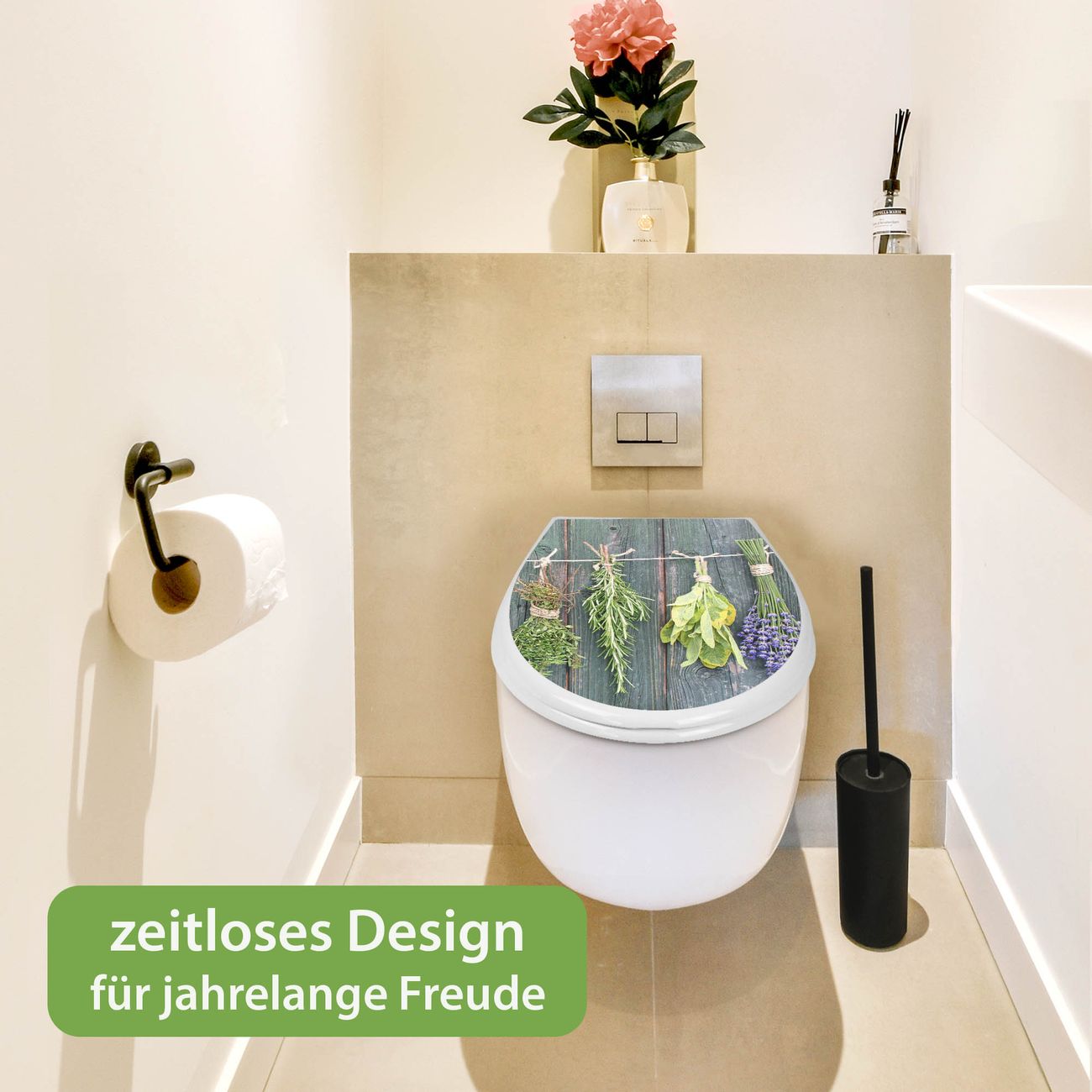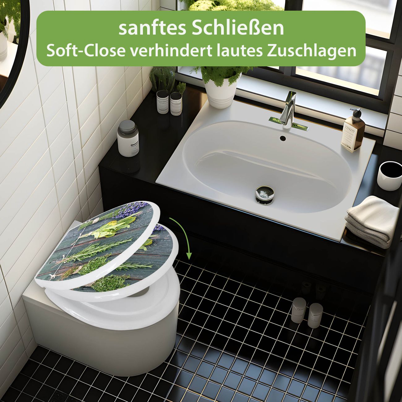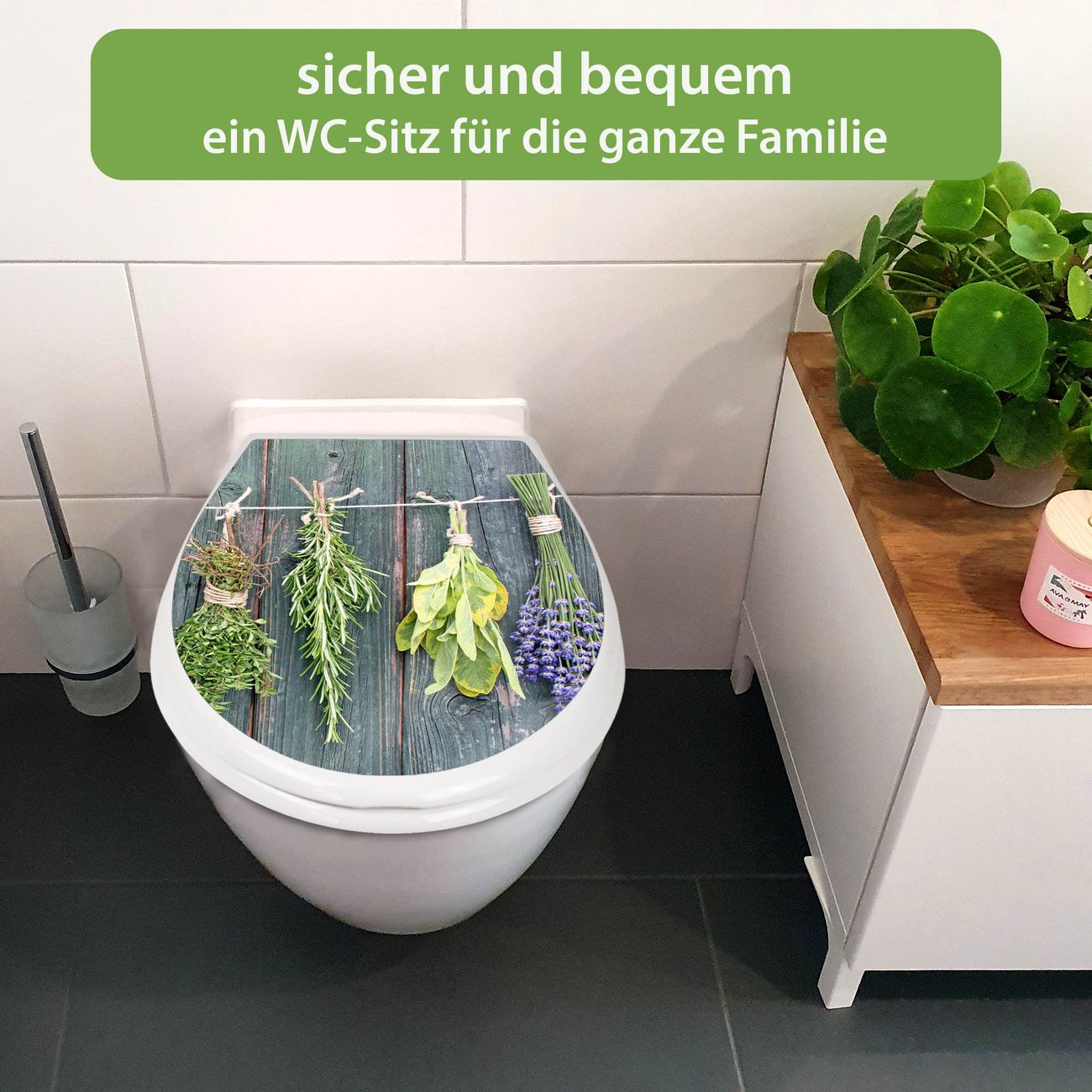 Toilettendeckel weiß mit Absenkautomatik Motiv Acht Kräuter