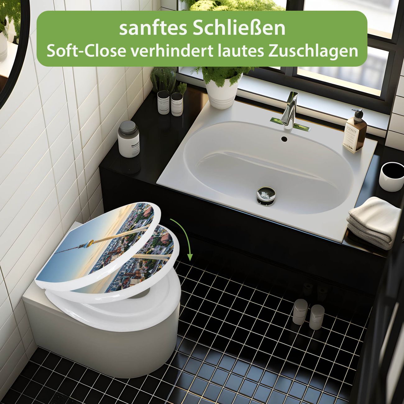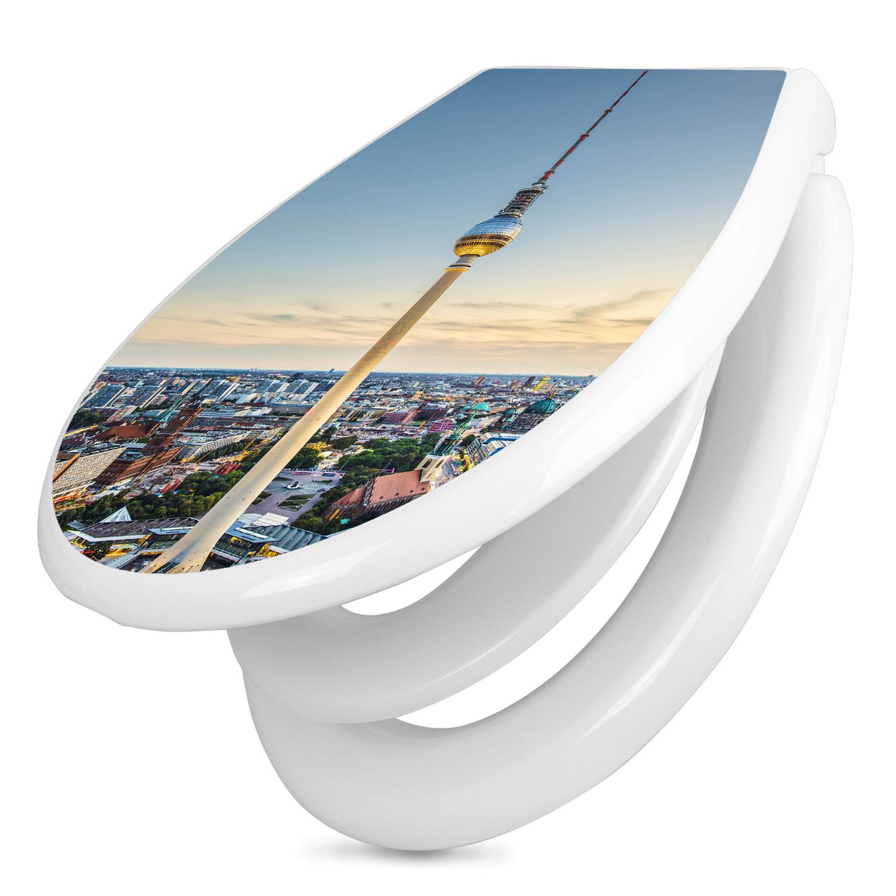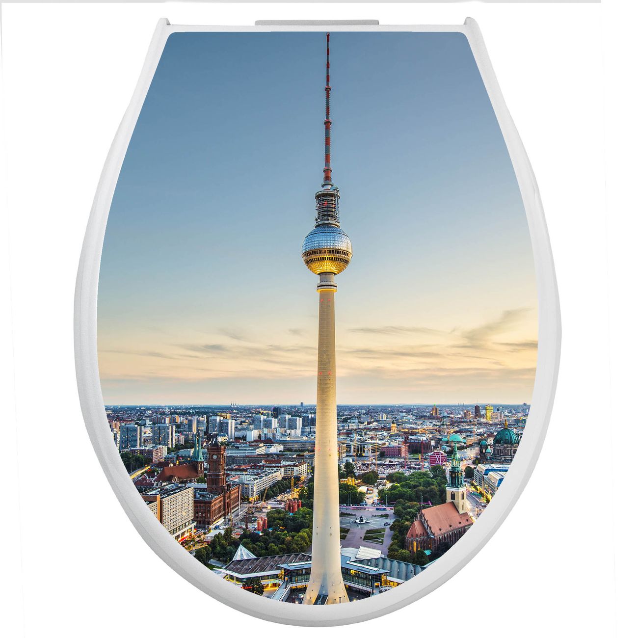 Toilettendeckel weiß mit Absenkautomatik Motiv Alexanderplatz
