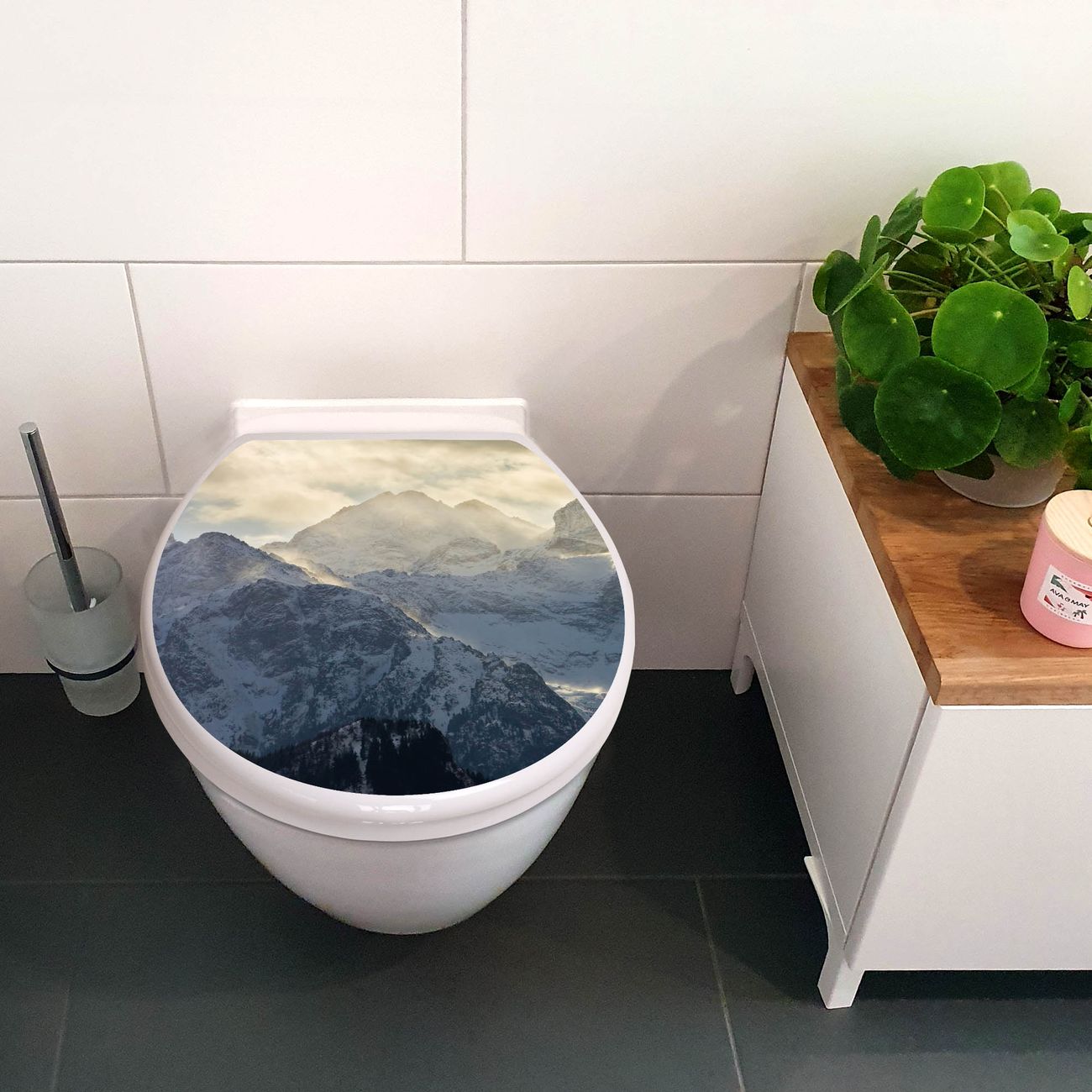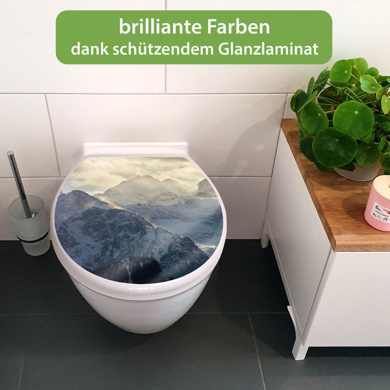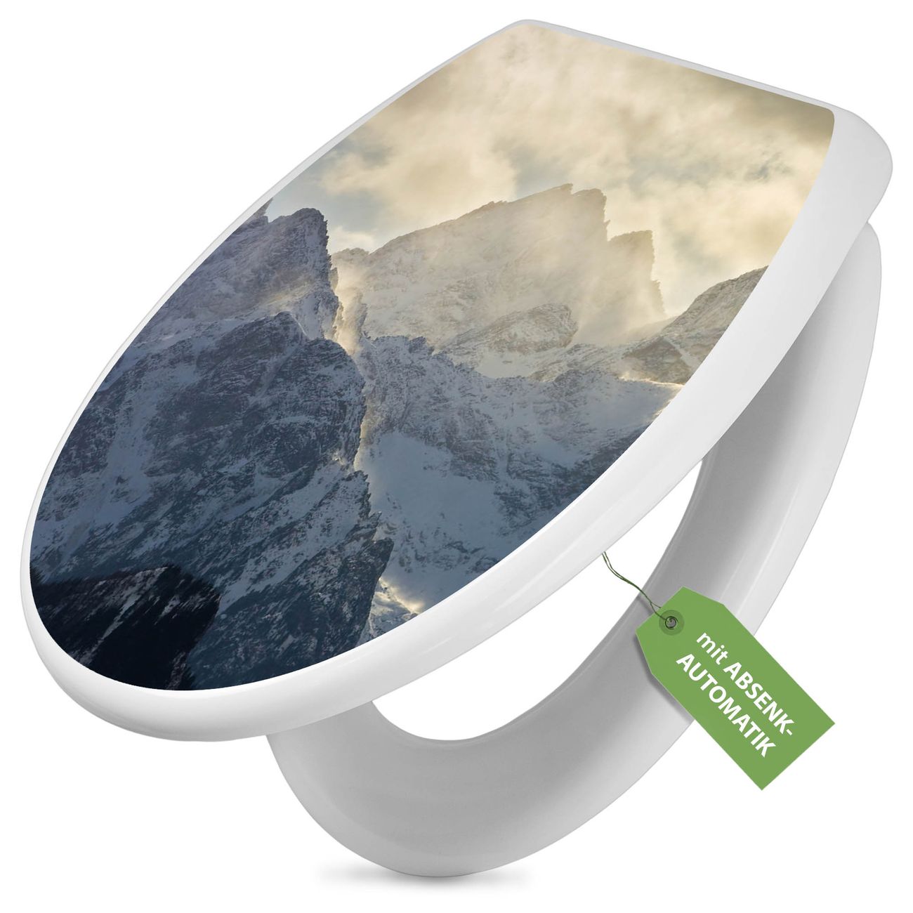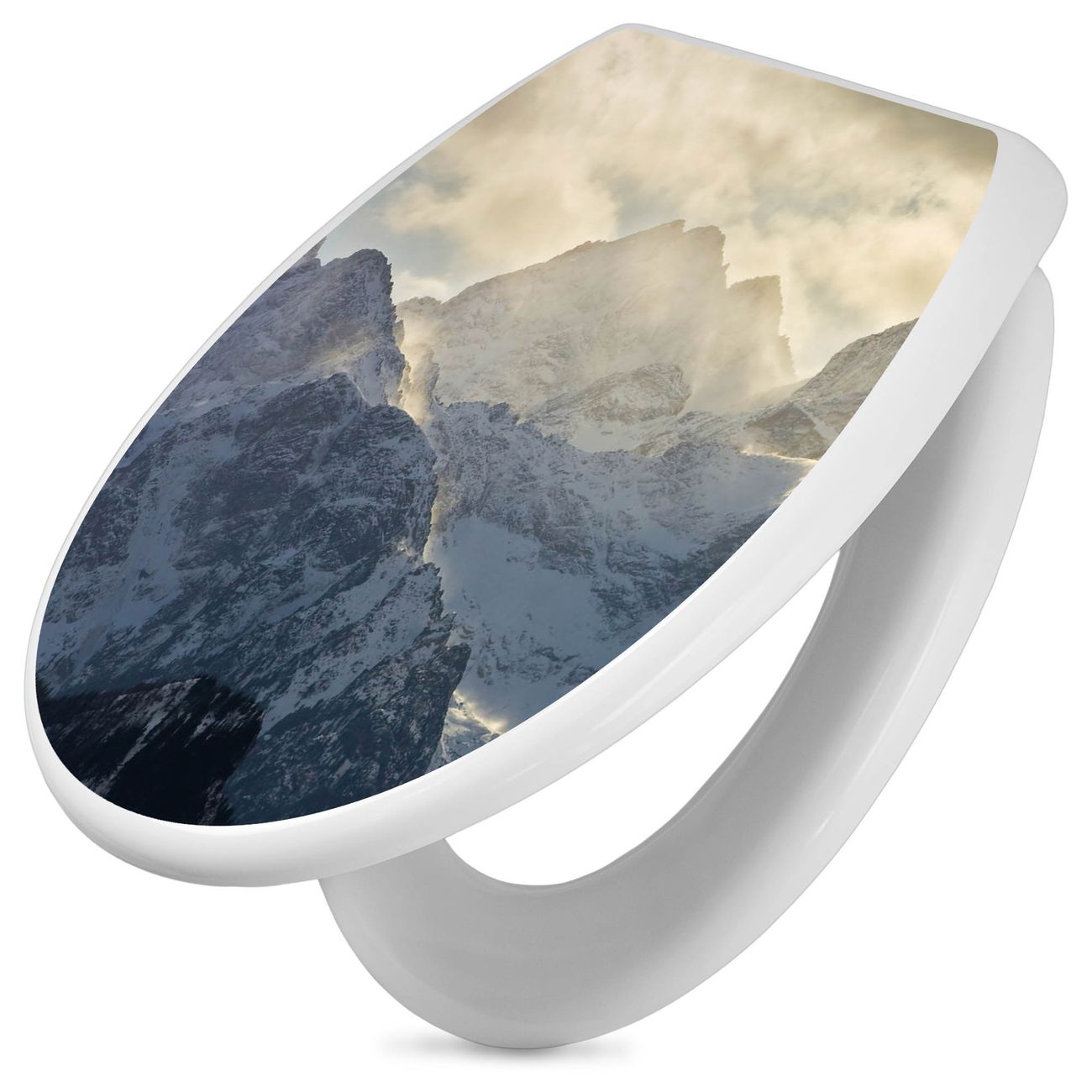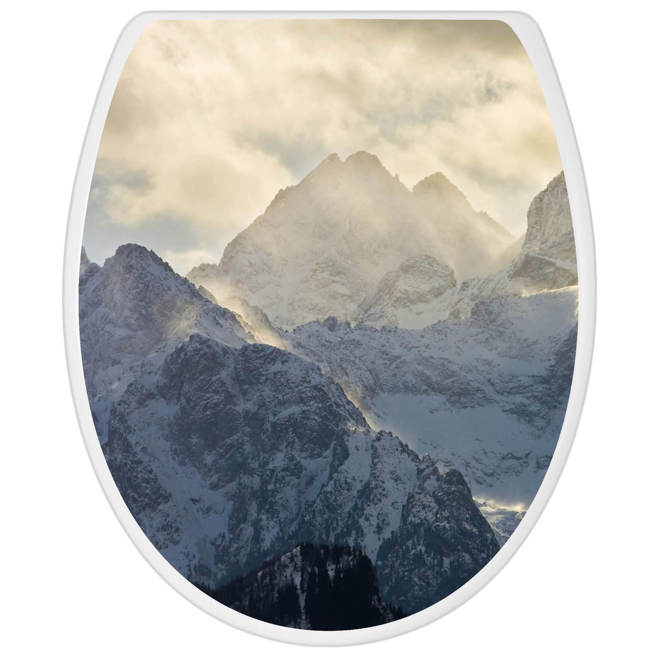 Toilettendeckel weiß mit Absenkautomatik Motiv Alpen im Sonnenschein