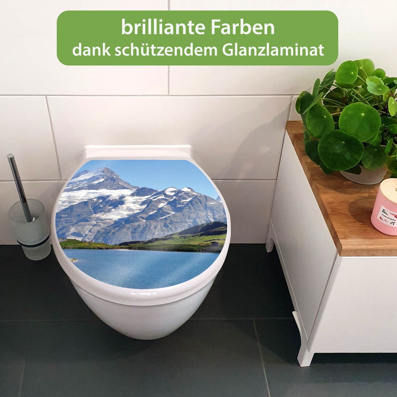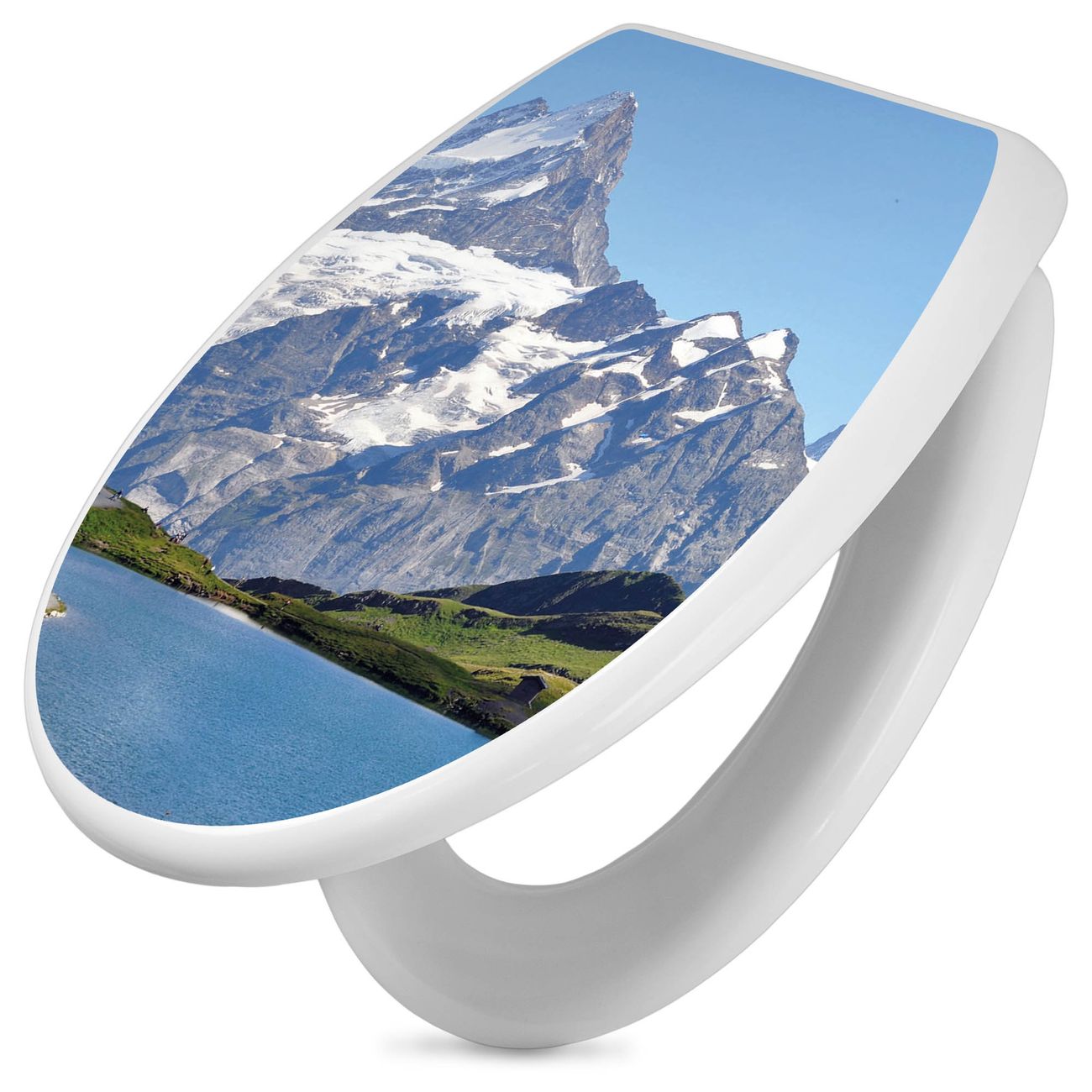 Toilettendeckel weiß mit Absenkautomatik Motiv Alpen