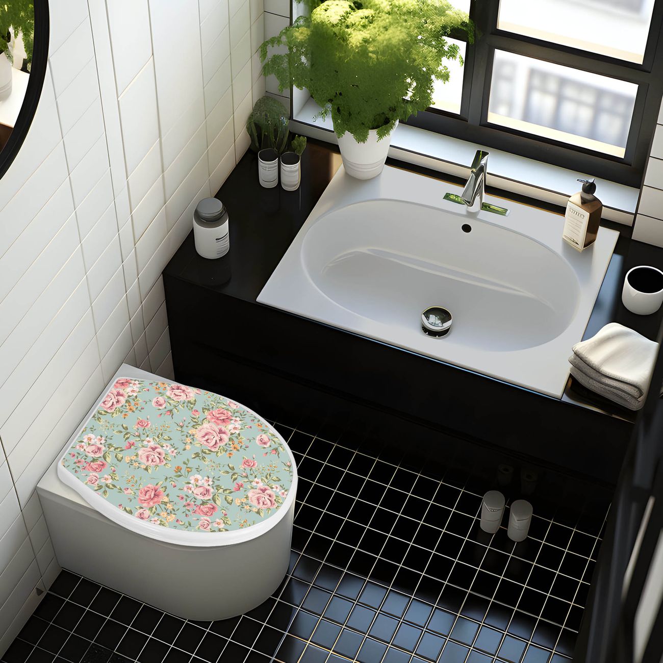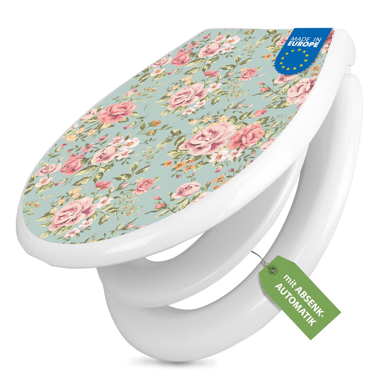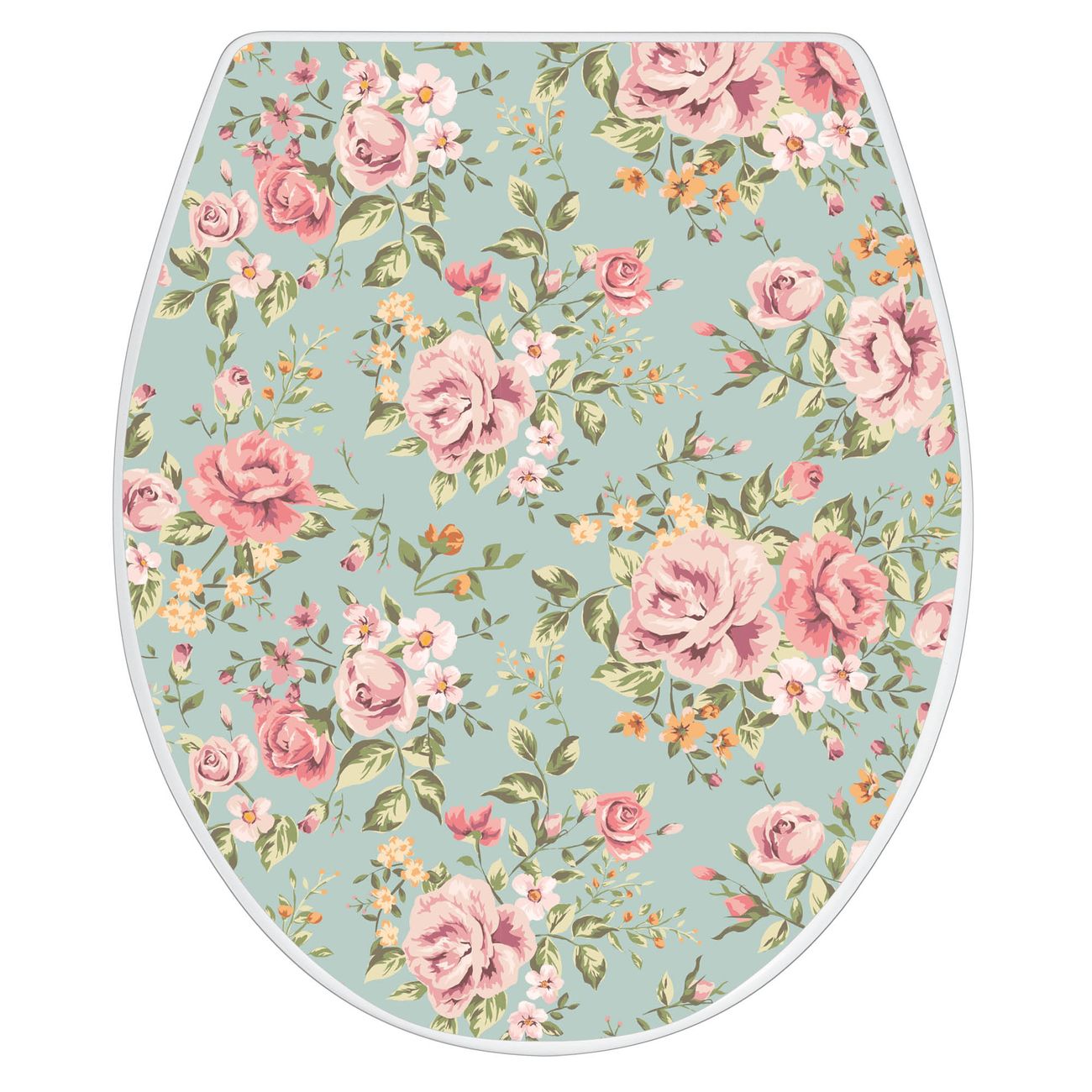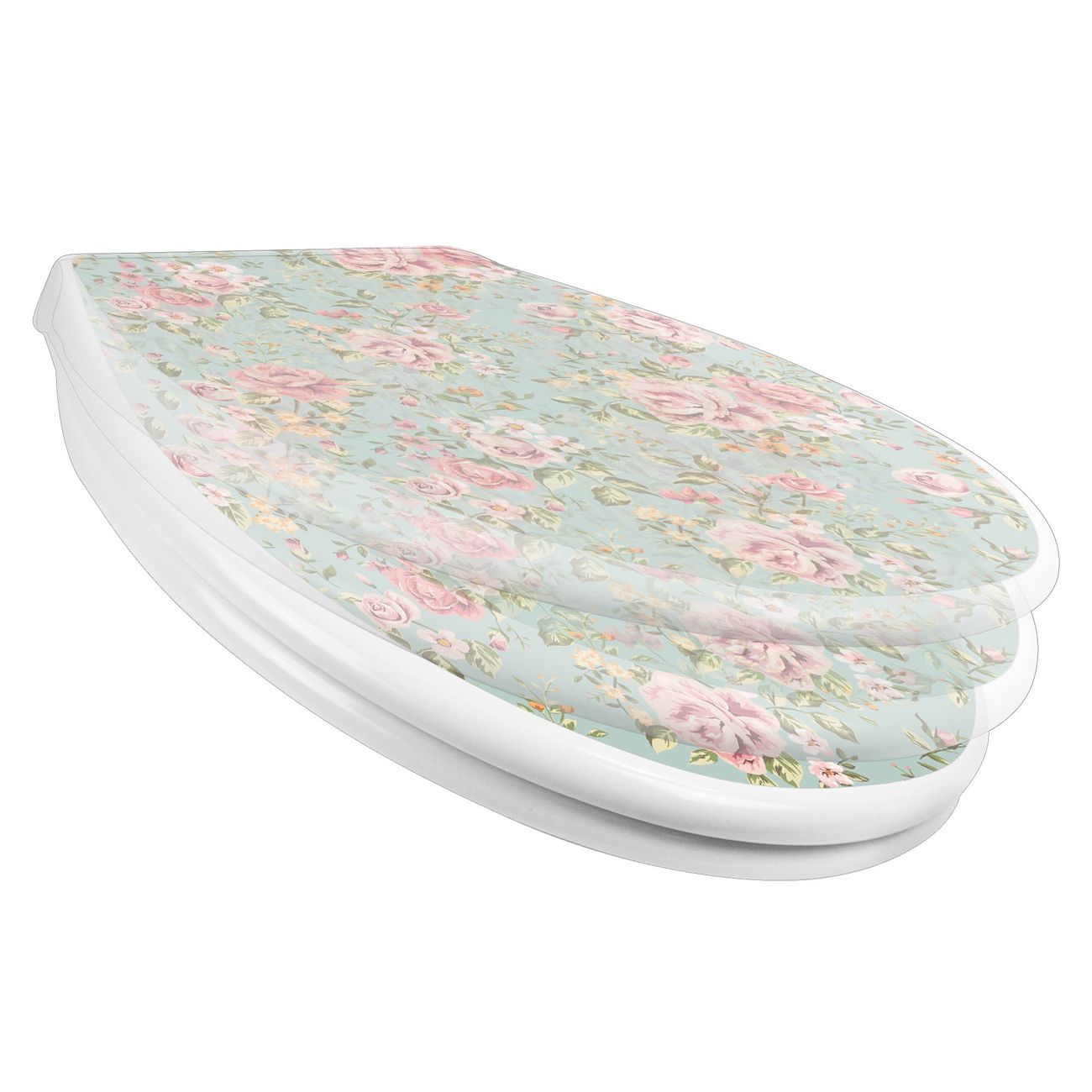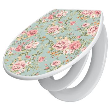 Toilettendeckel weiß mit Absenkautomatik Motiv Altrosa Blume