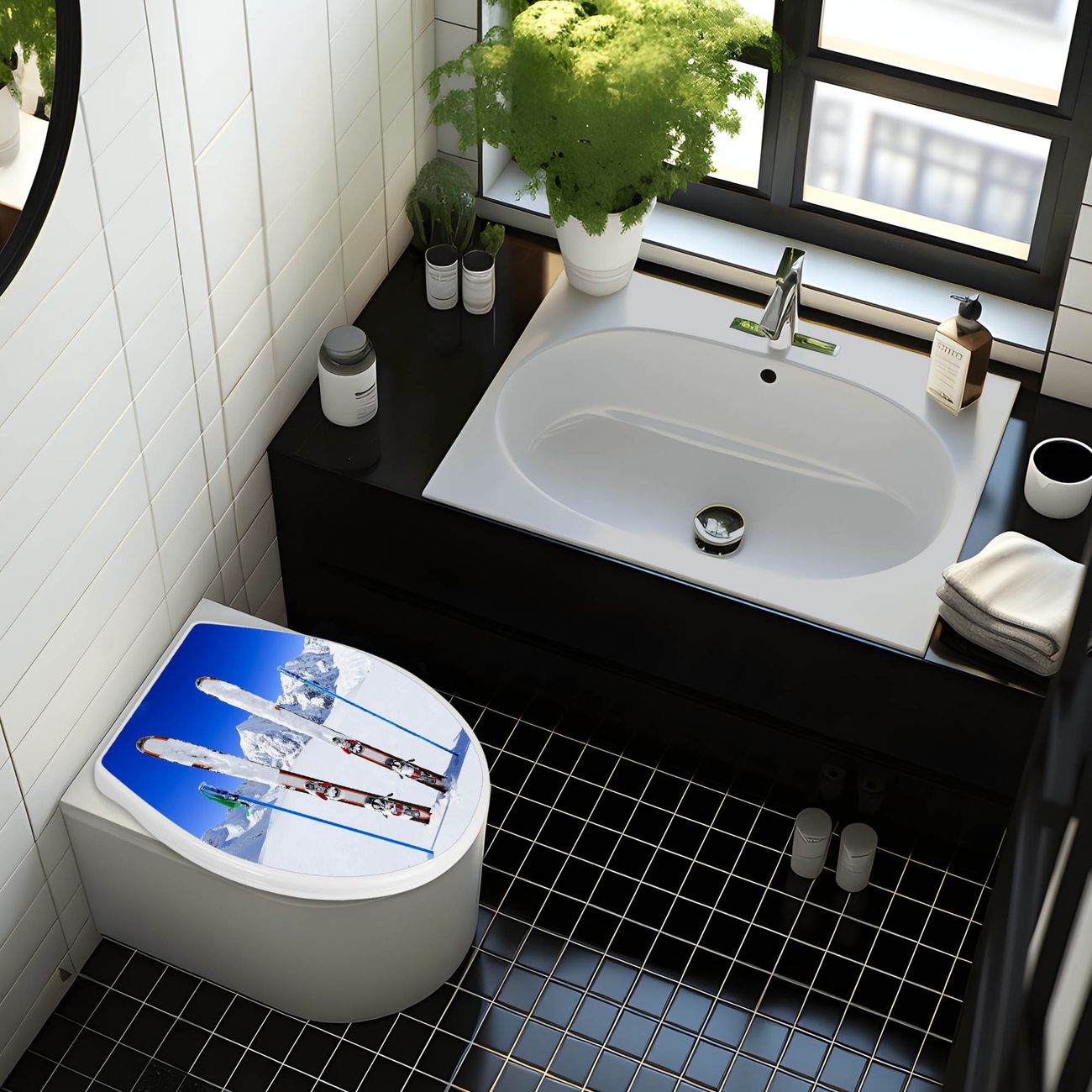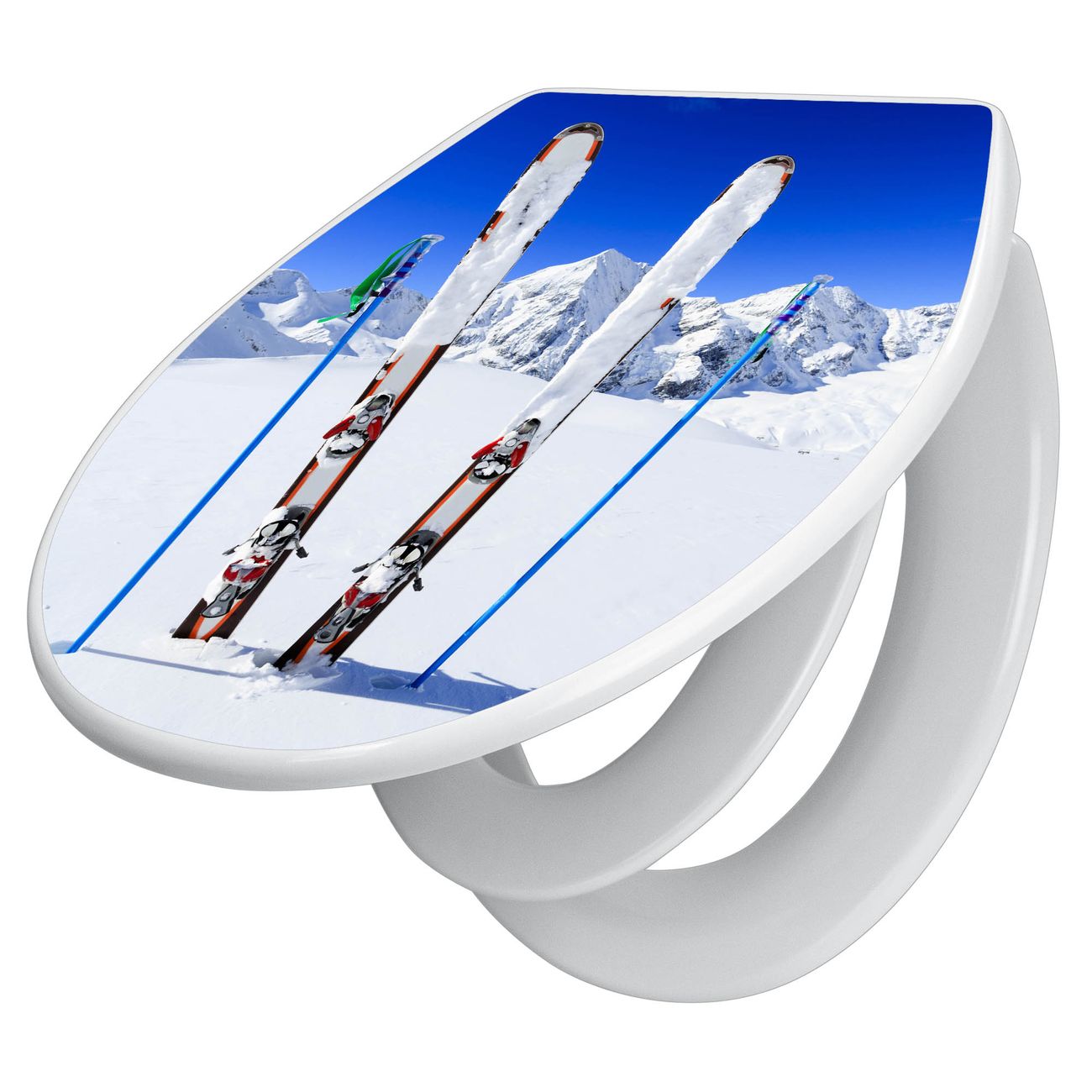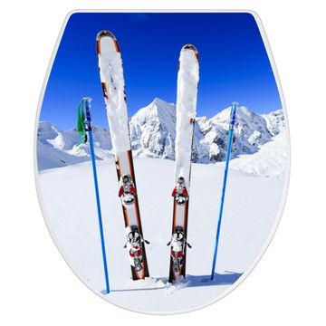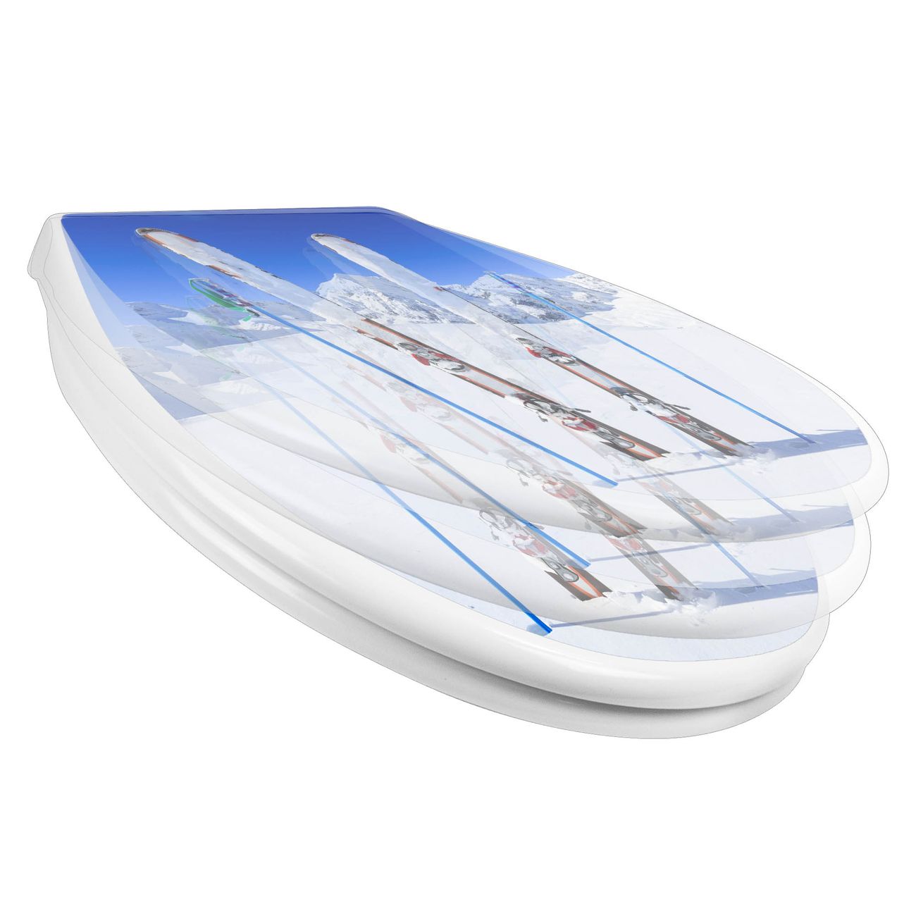 Toilettendeckel weiß mit Absenkautomatik Motiv Apres Ski