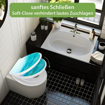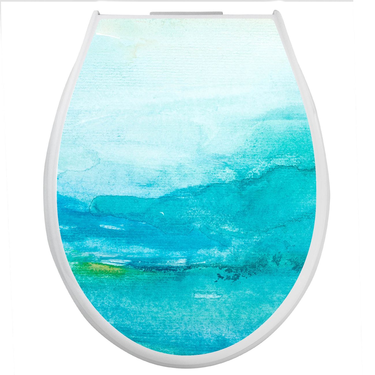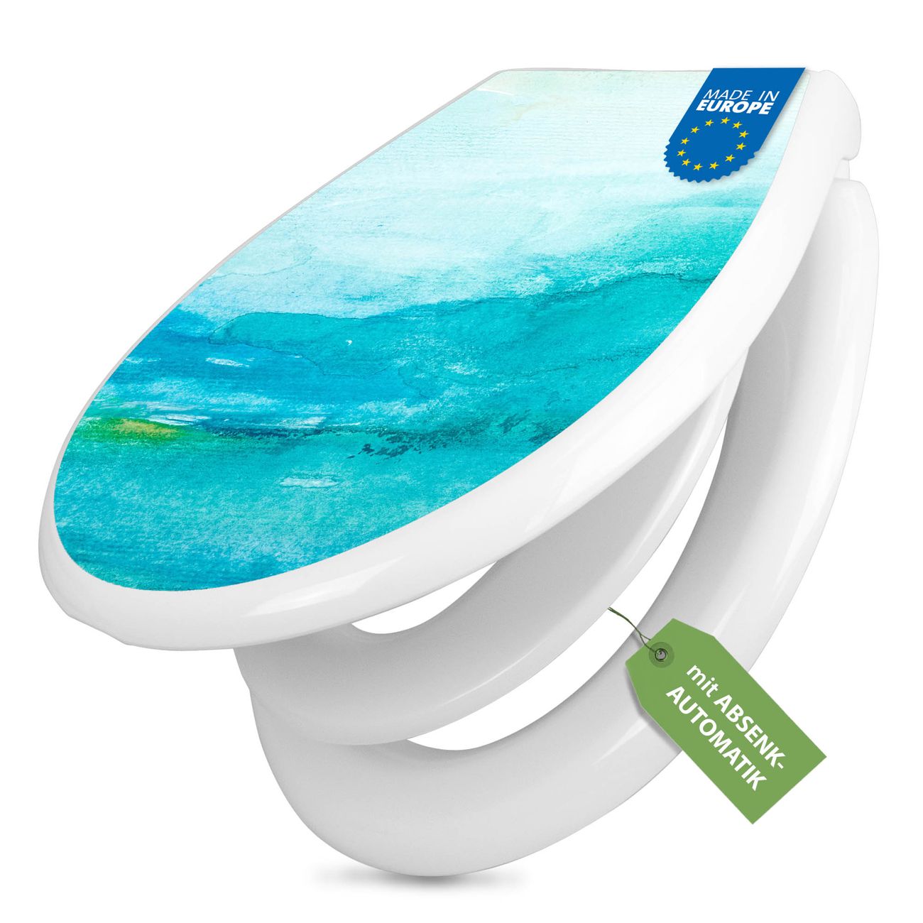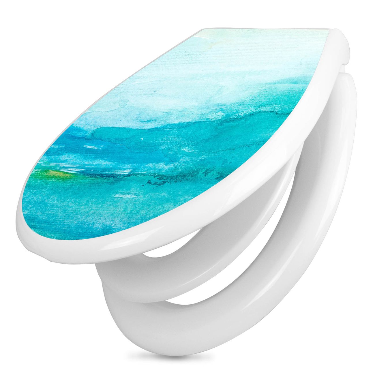 Toilettendeckel weiß mit Absenkautomatik Motiv Aquarell Blau