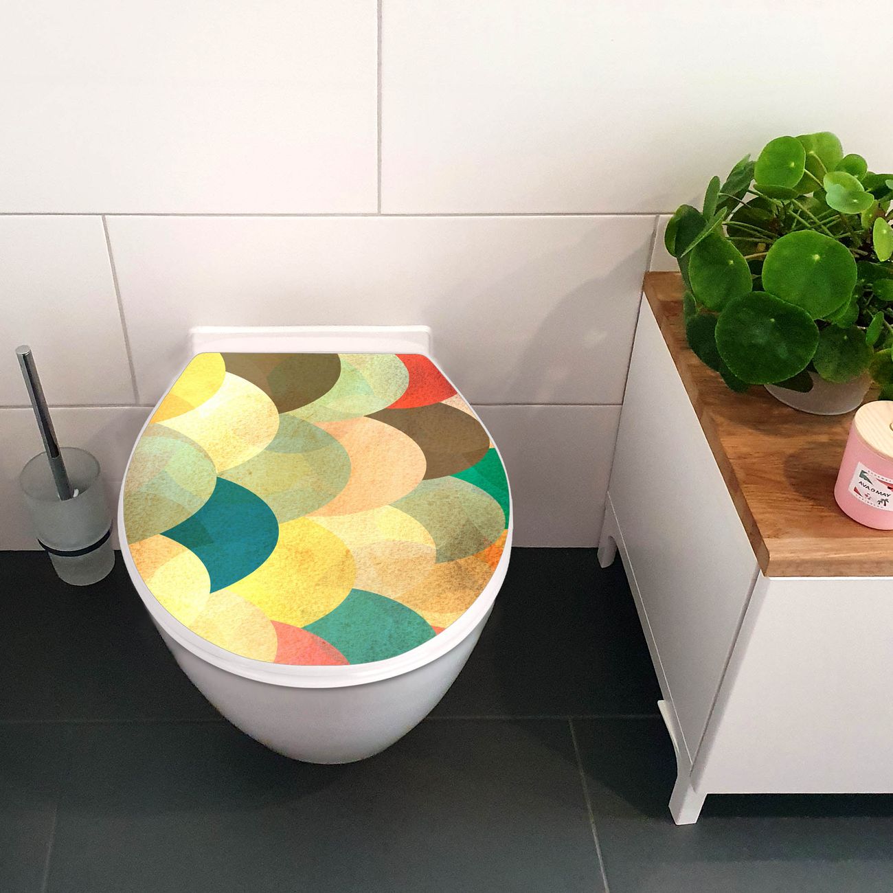 Toilettendeckel weiß mit Absenkautomatik Motiv Aquarell Schuppen