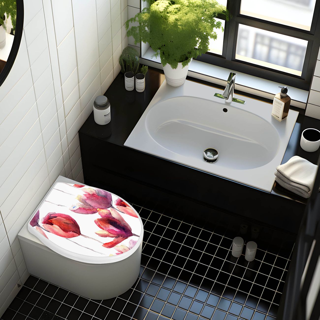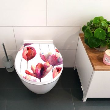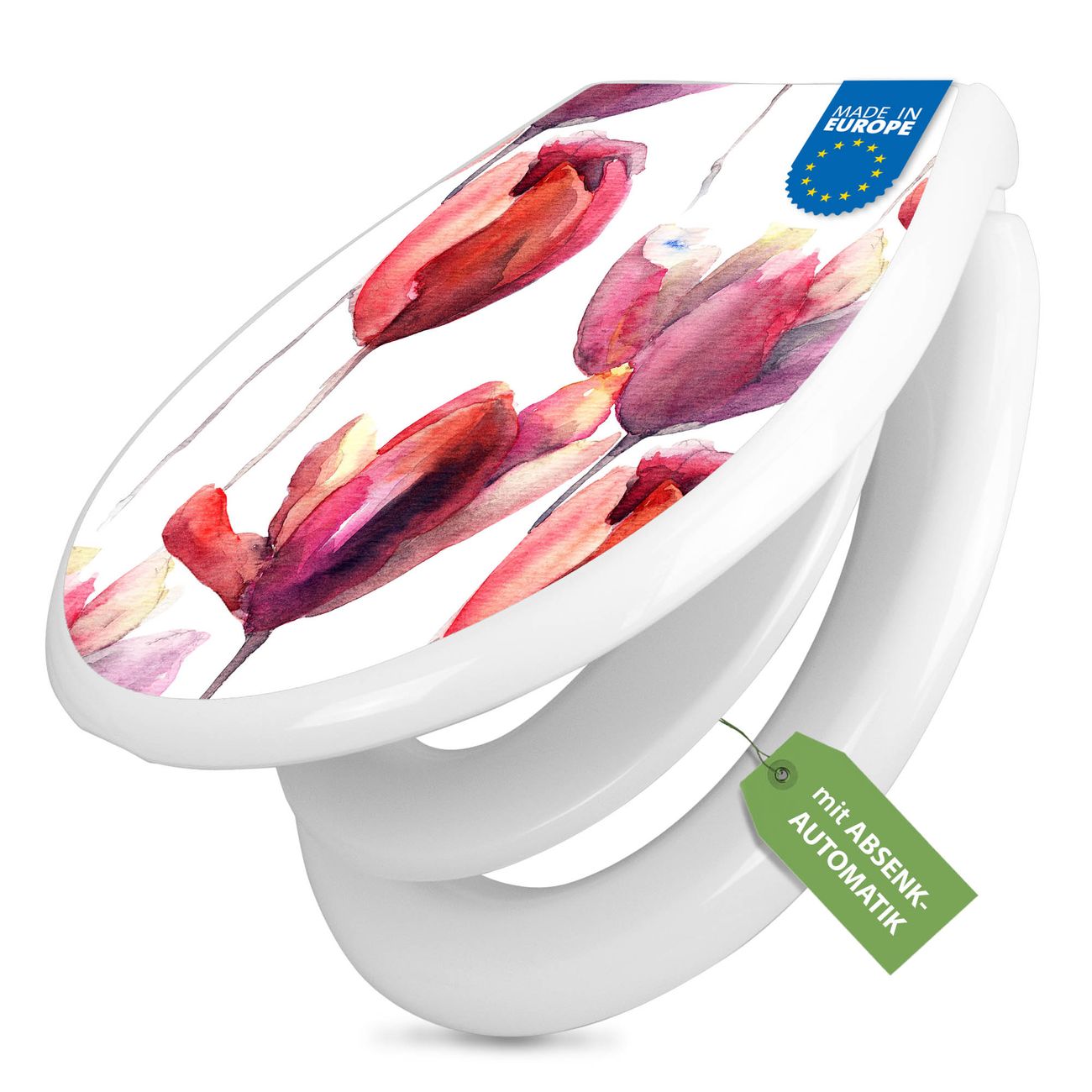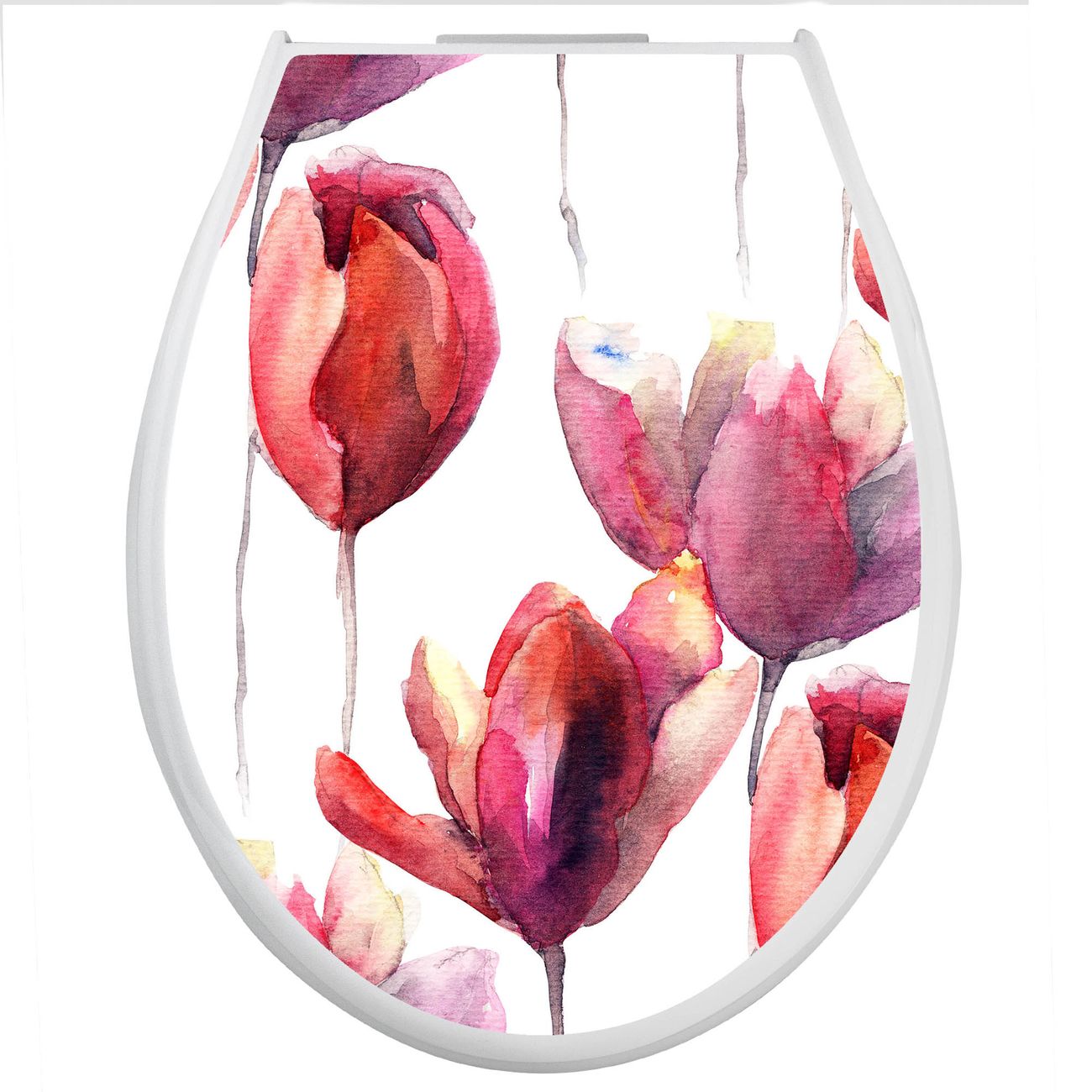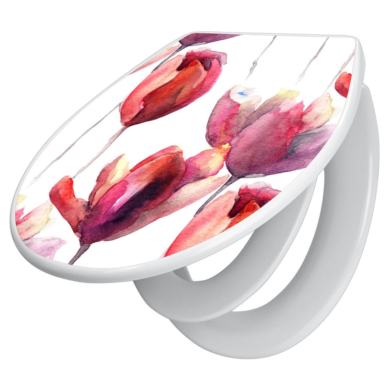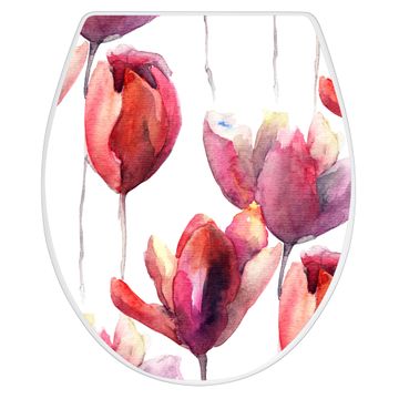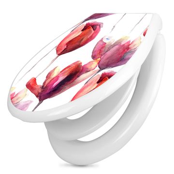 Toilettendeckel weiß mit Absenkautomatik Motiv Aquarell Tulpen