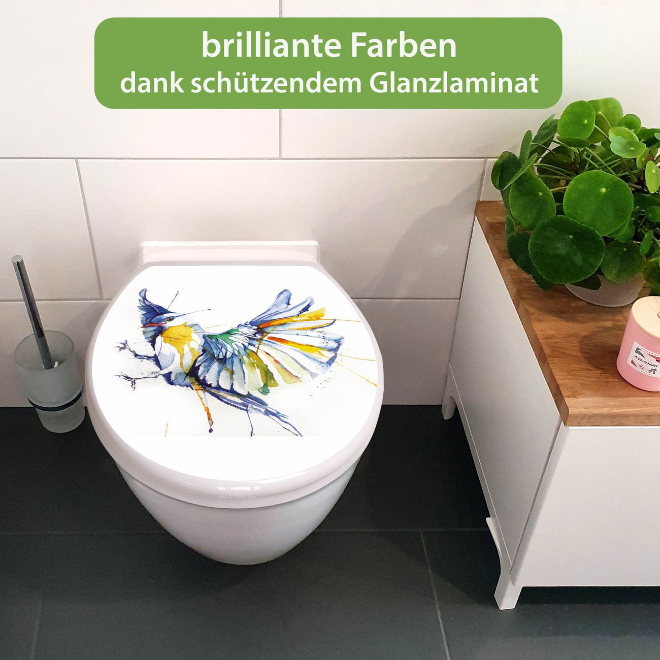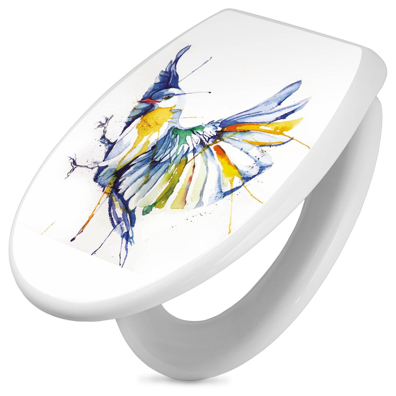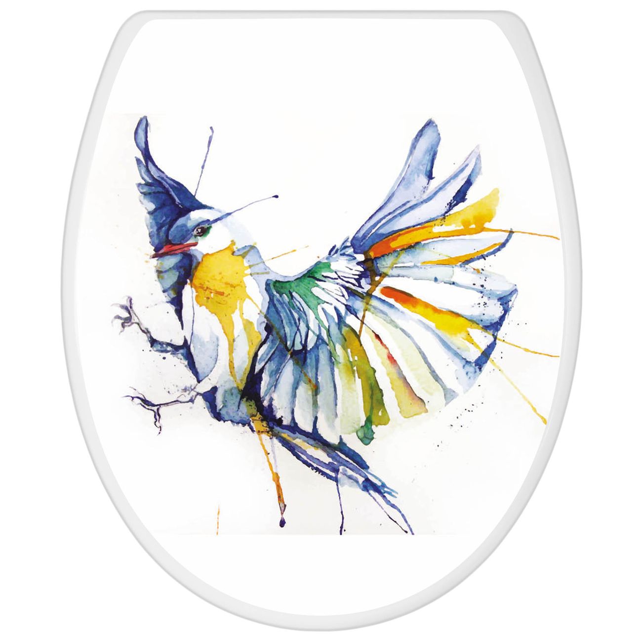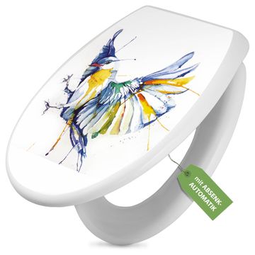 Toilettendeckel weiß mit Absenkautomatik Motiv Aquarell Vogel
