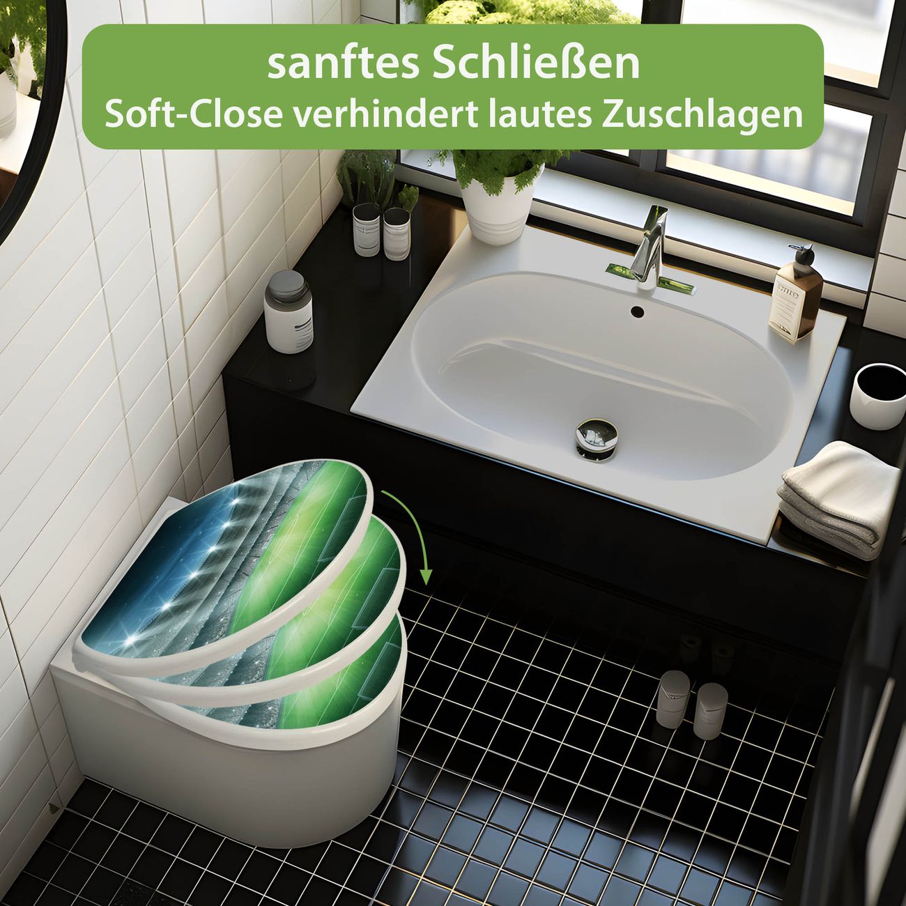 - Material: WC-Sitz und Deckel aus robustem Duroplast