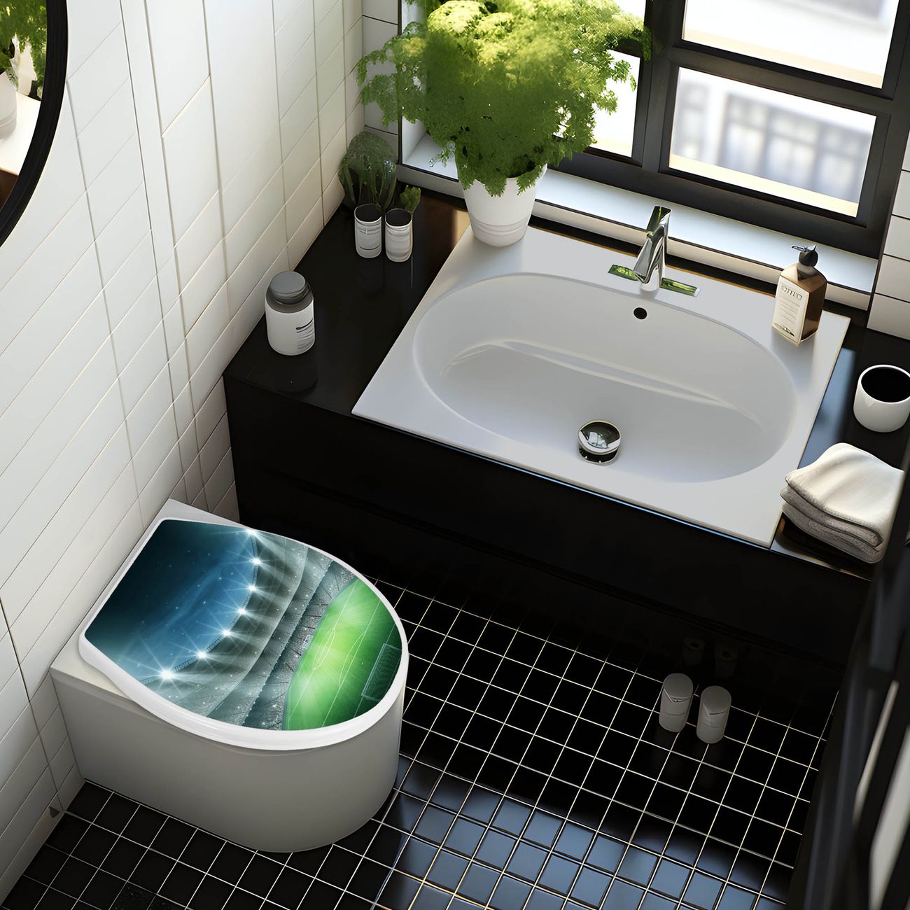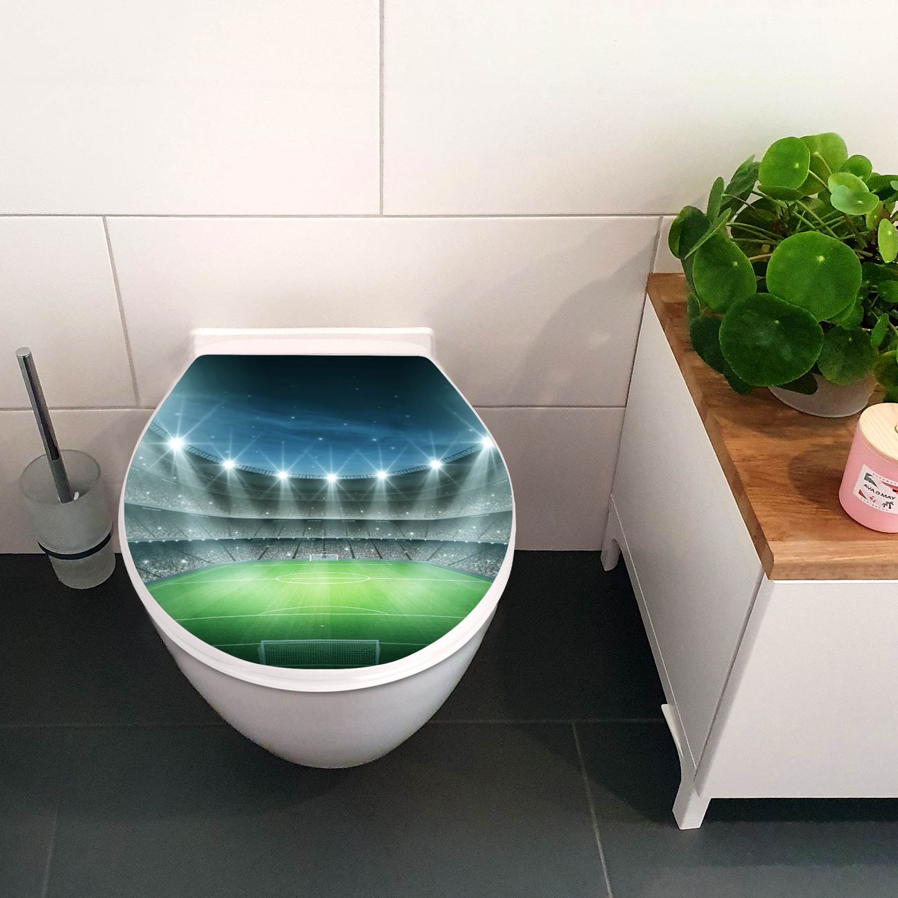 Toilettendeckel weiß mit Absenkautomatik Motiv Arena