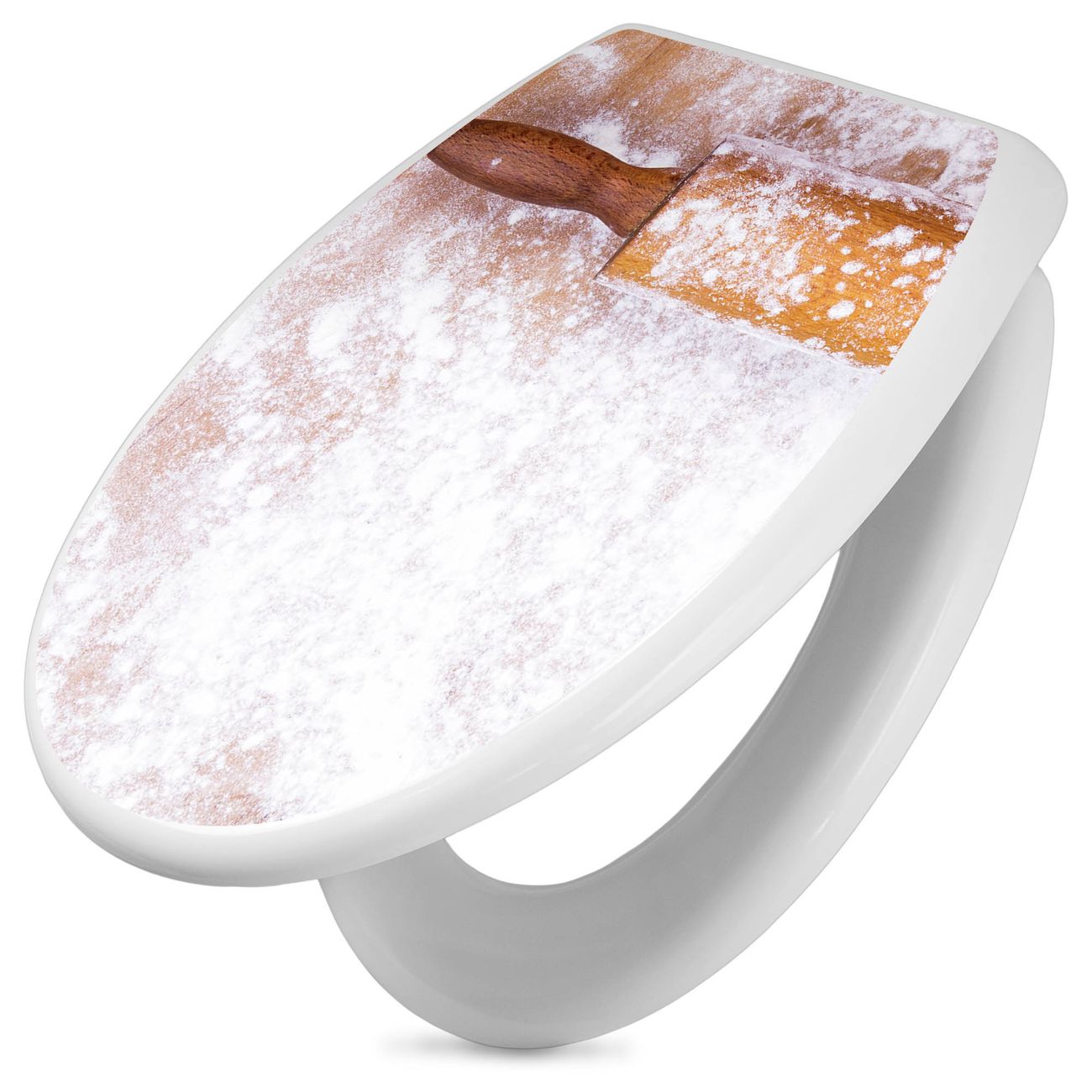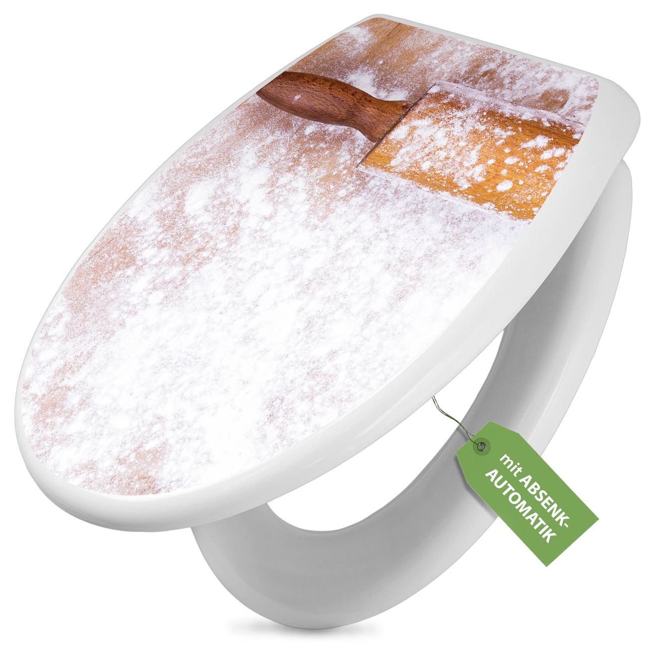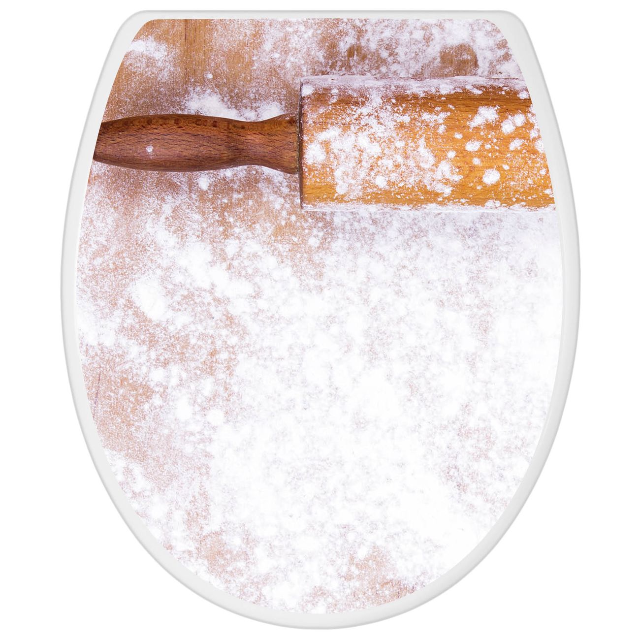 Toilettendeckel weiß mit Absenkautomatik Motiv Backen