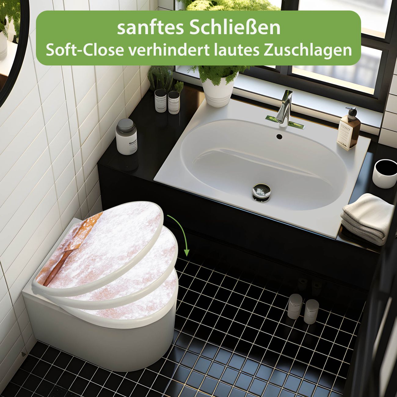 - Material: WC-Sitz und Deckel aus robustem Duroplast