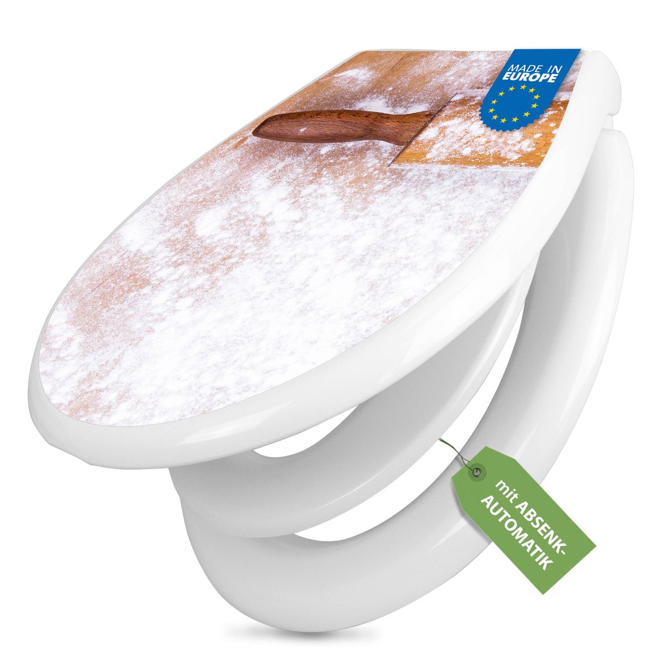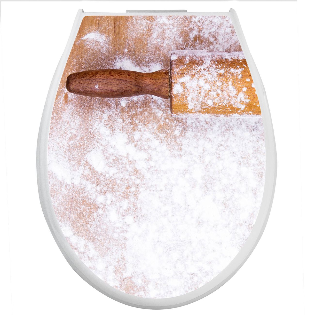 Toilettendeckel weiß mit Absenkautomatik Motiv Backen