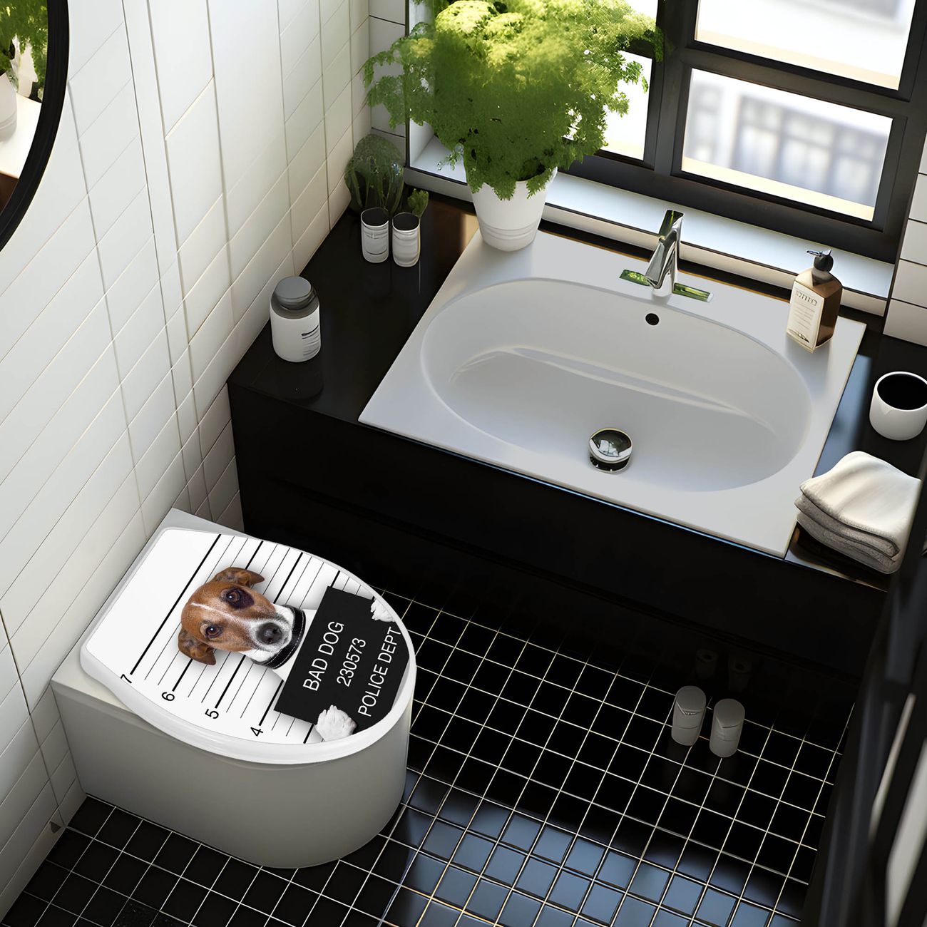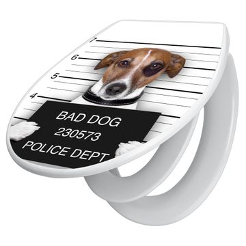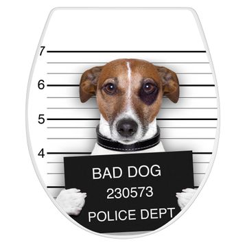 Toilettendeckel weiß mit Absenkautomatik Motiv Bad Dog Jack Russel