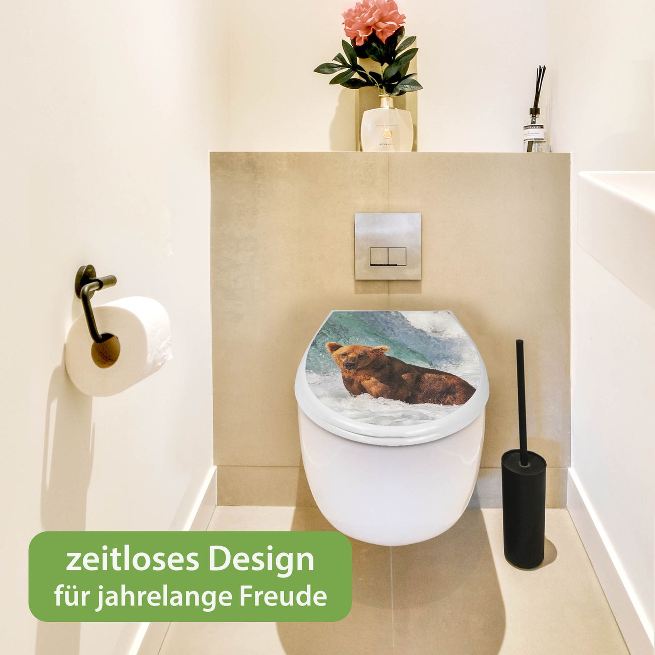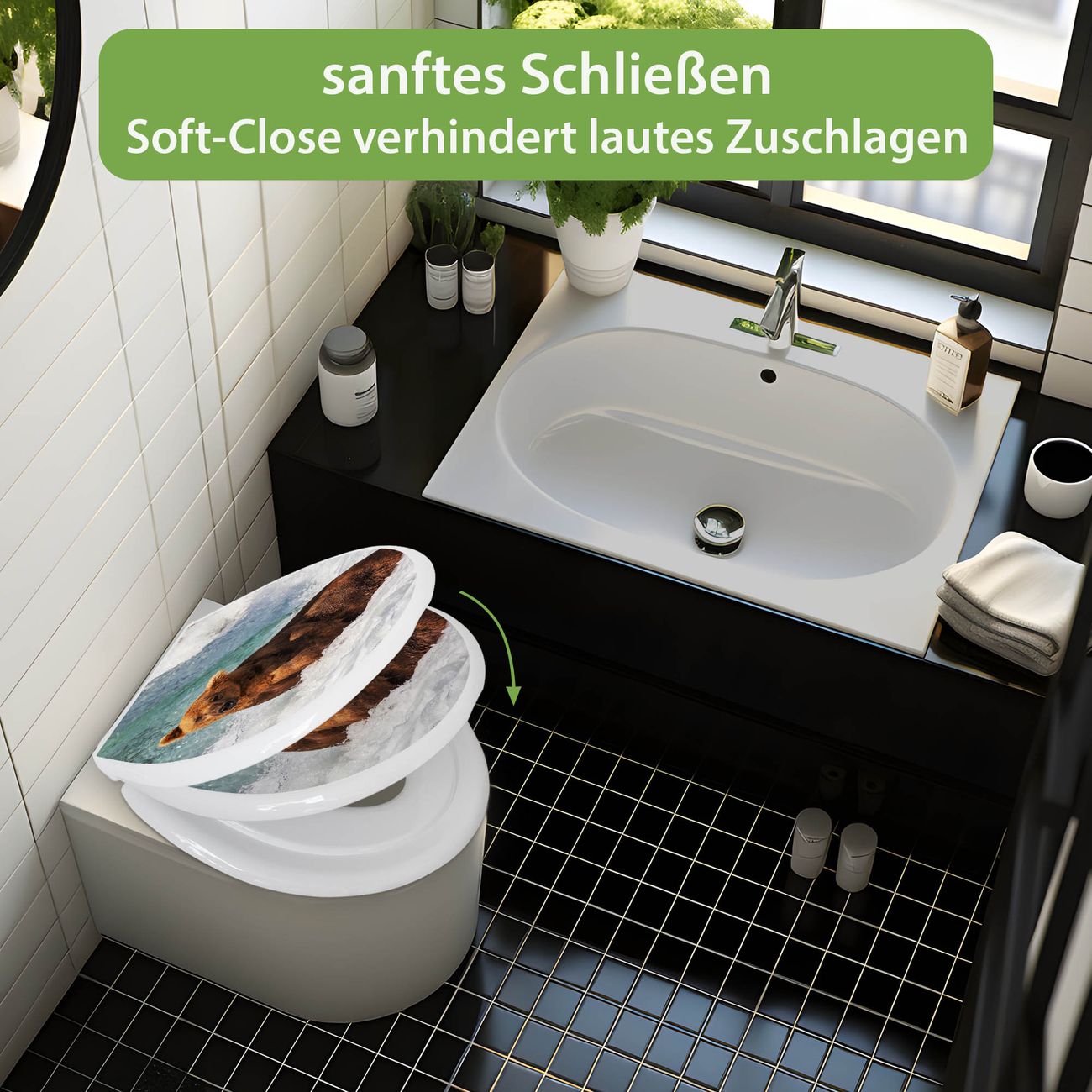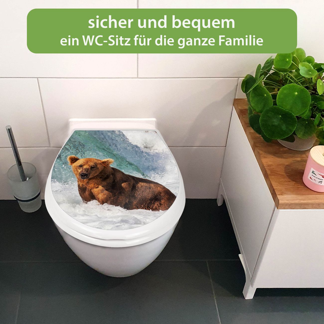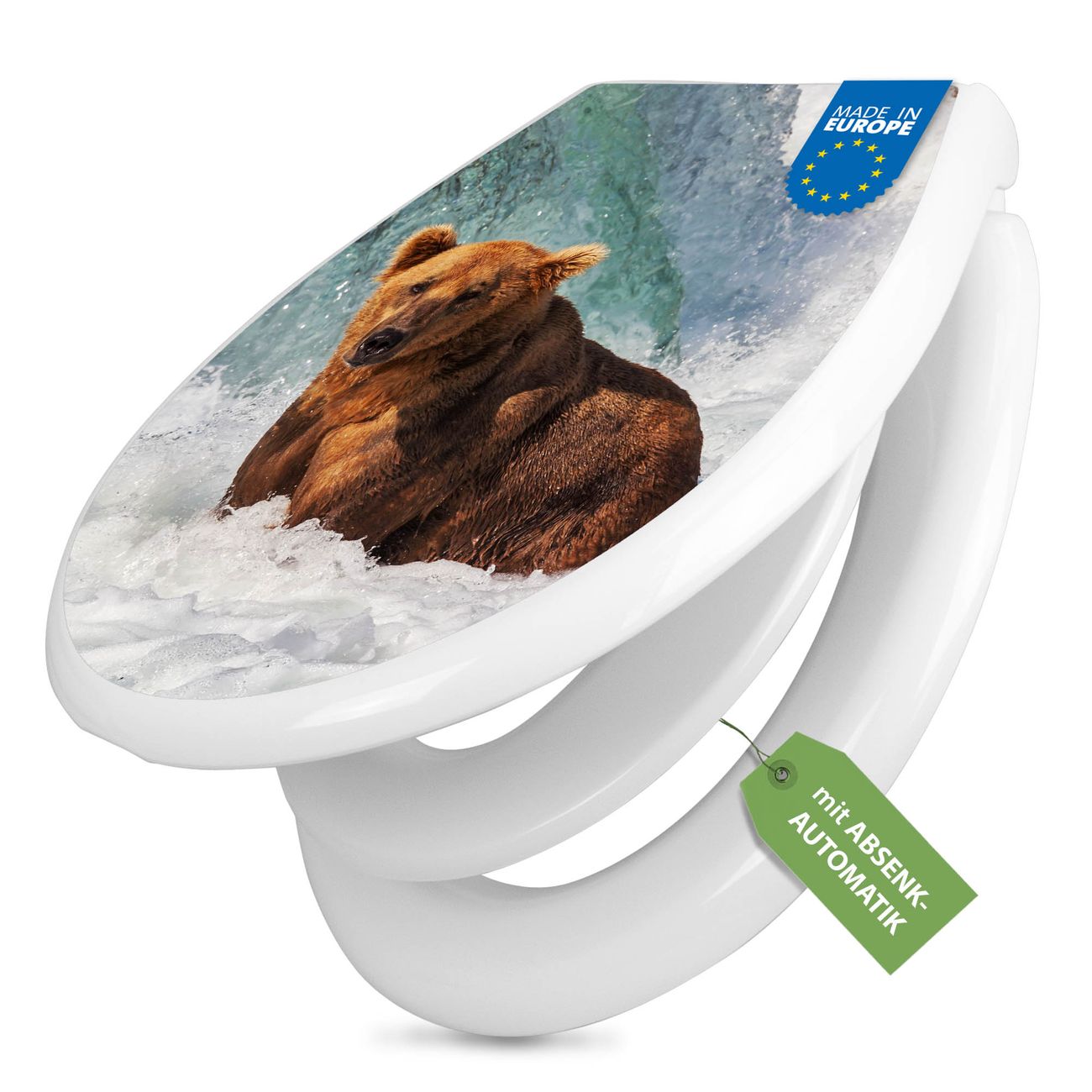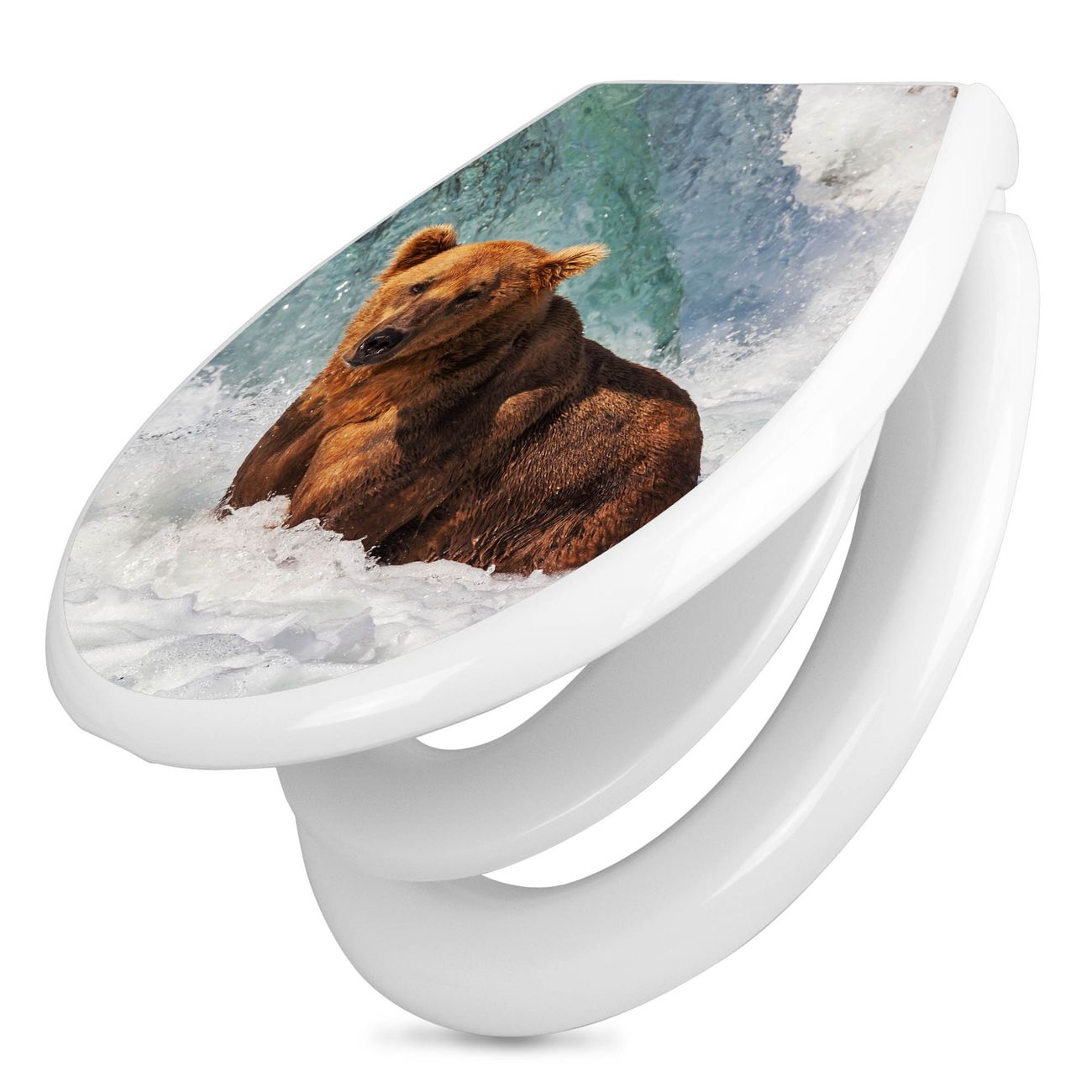 Toilettendeckel weiß mit Absenkautomatik Motiv Bär Im Wasser