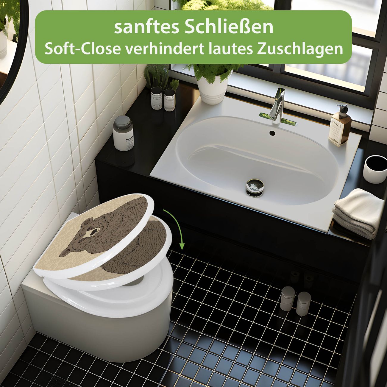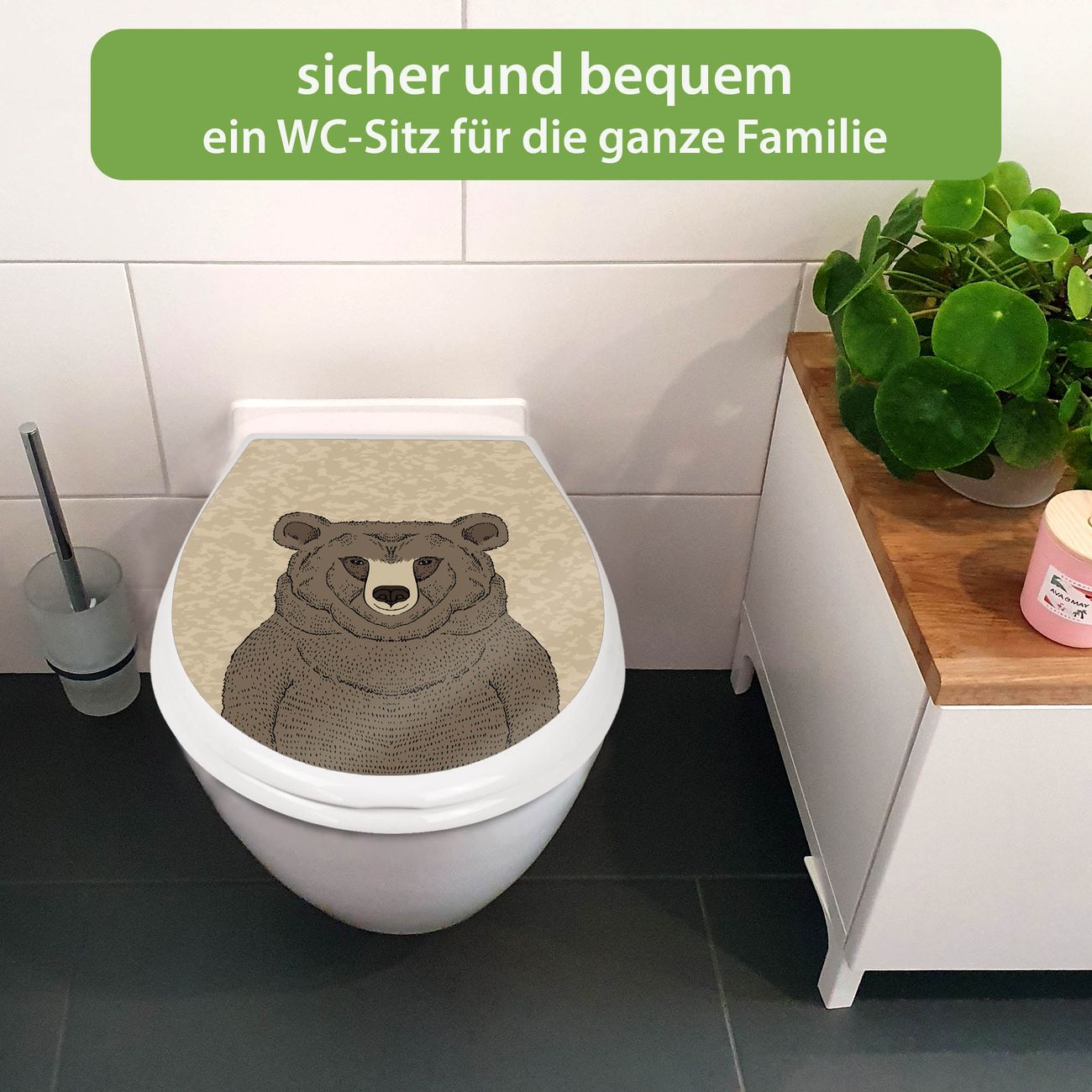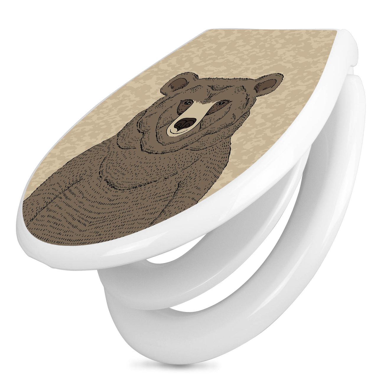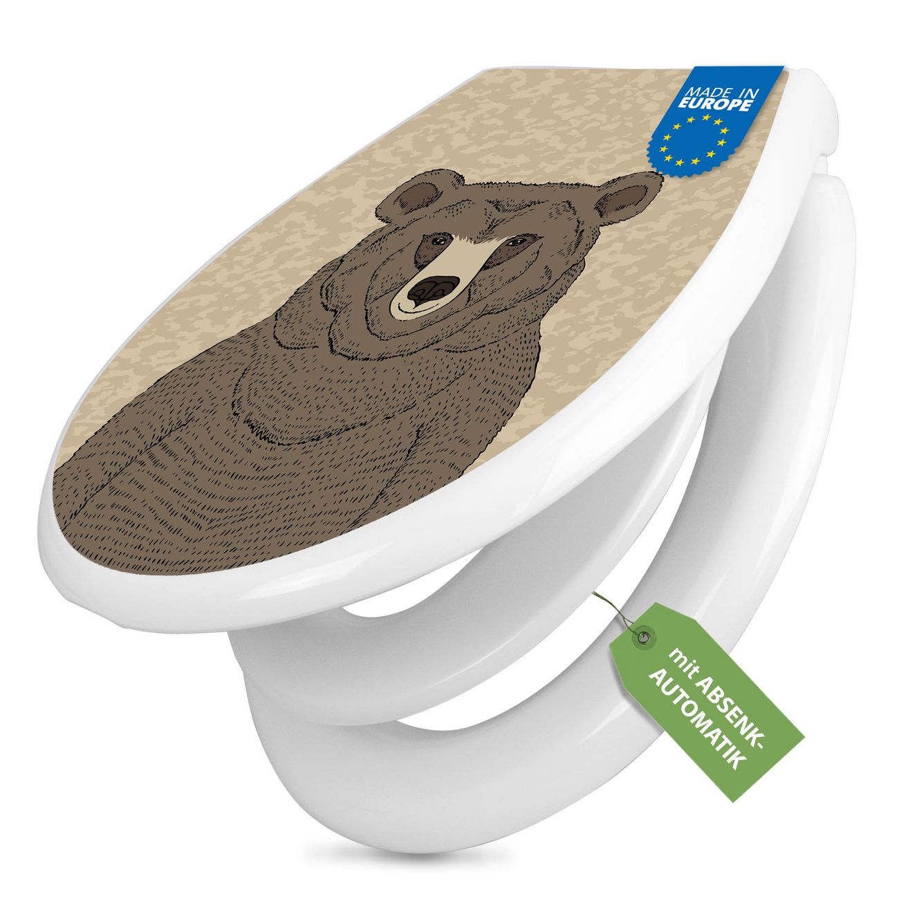 Toilettendeckel weiß mit Absenkautomatik Motiv Bär Ohne Brille