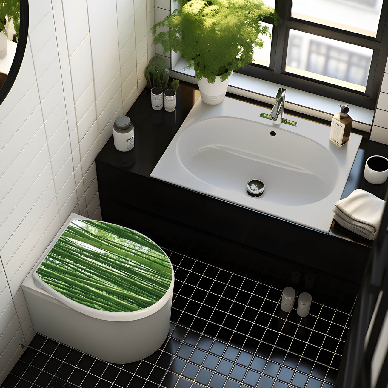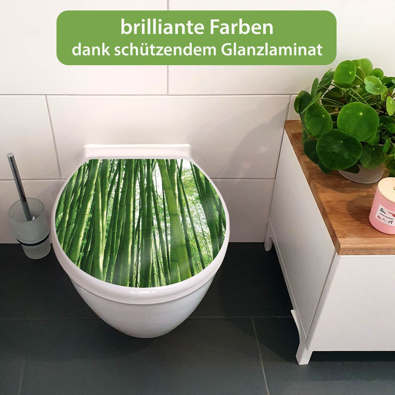Toilettendeckel weiß mit Absenkautomatik Motiv Bambus
