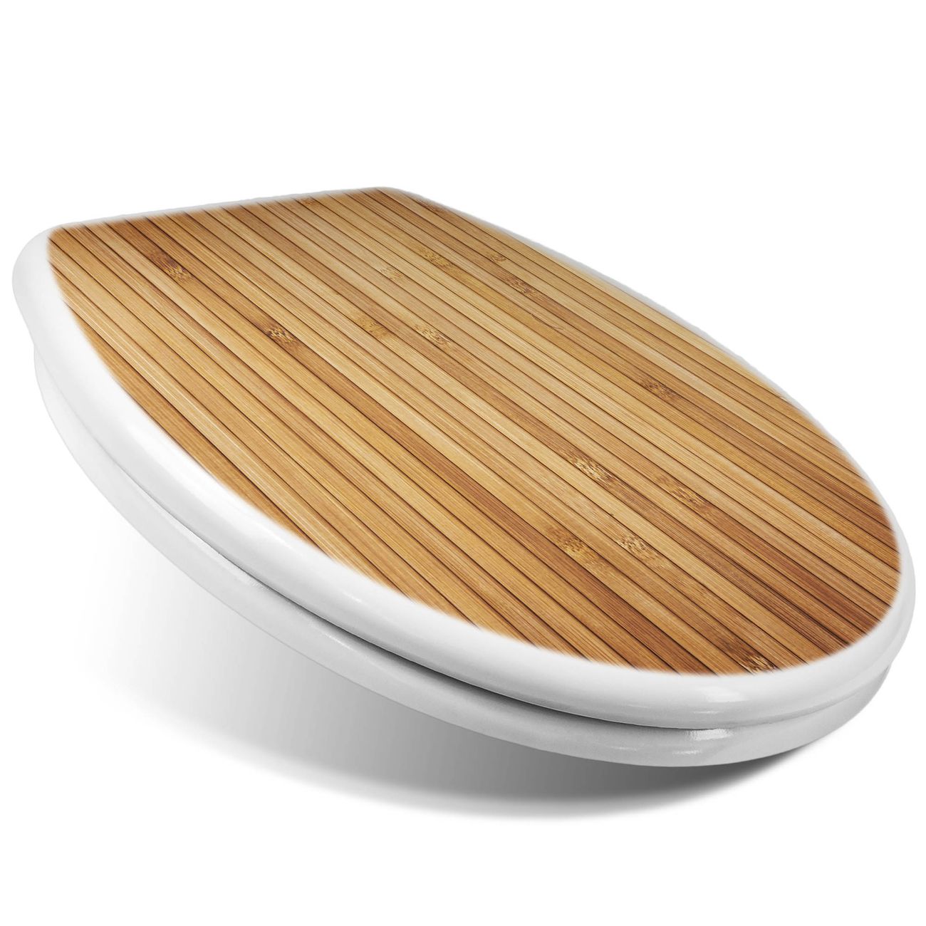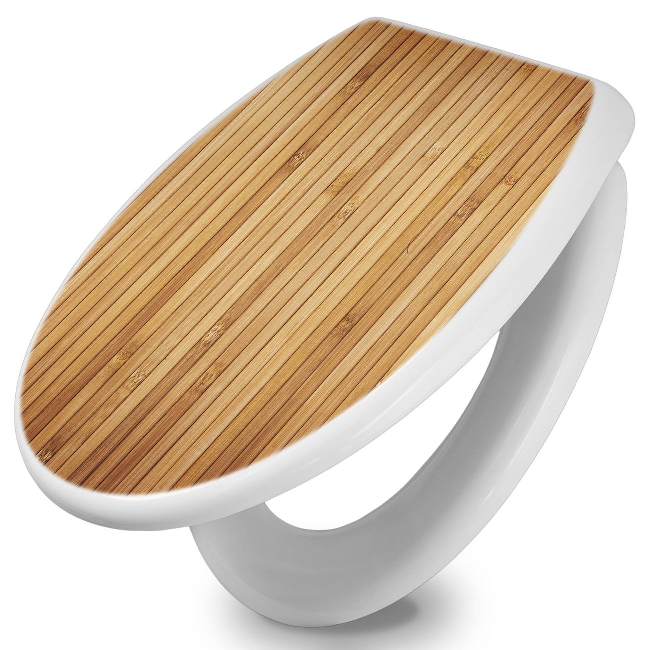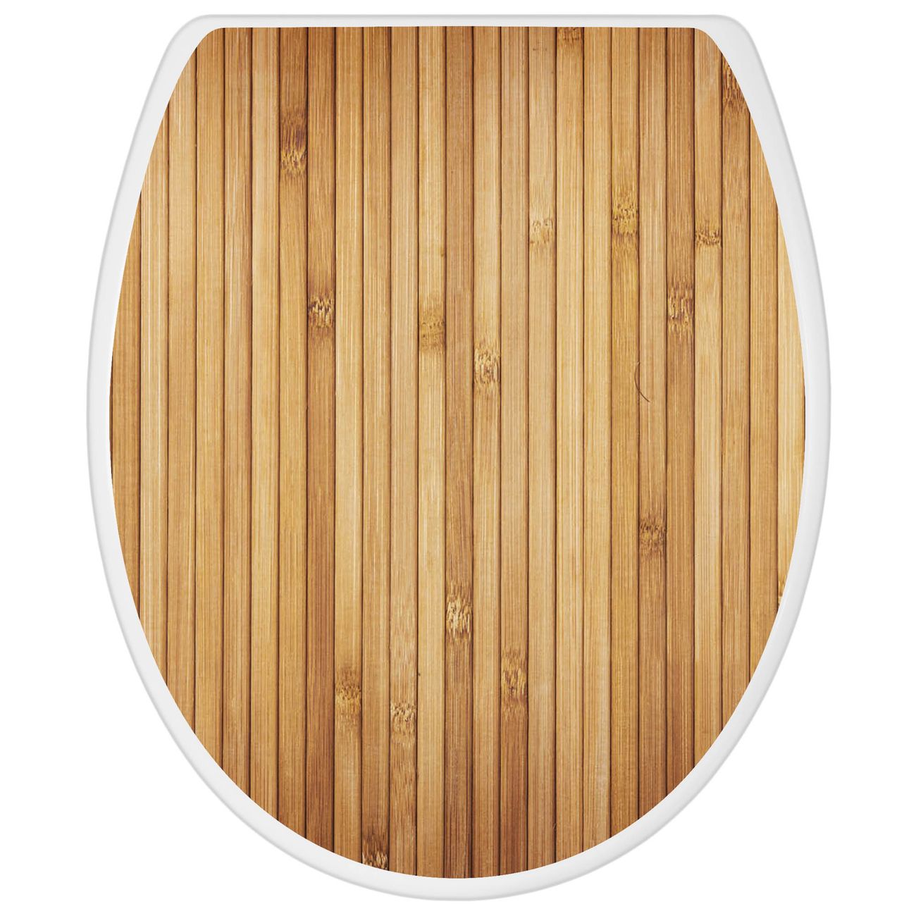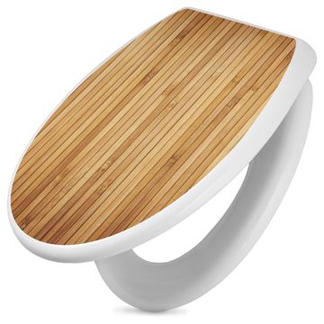 Toilettendeckel weiß mit Absenkautomatik Motiv Bambusholz