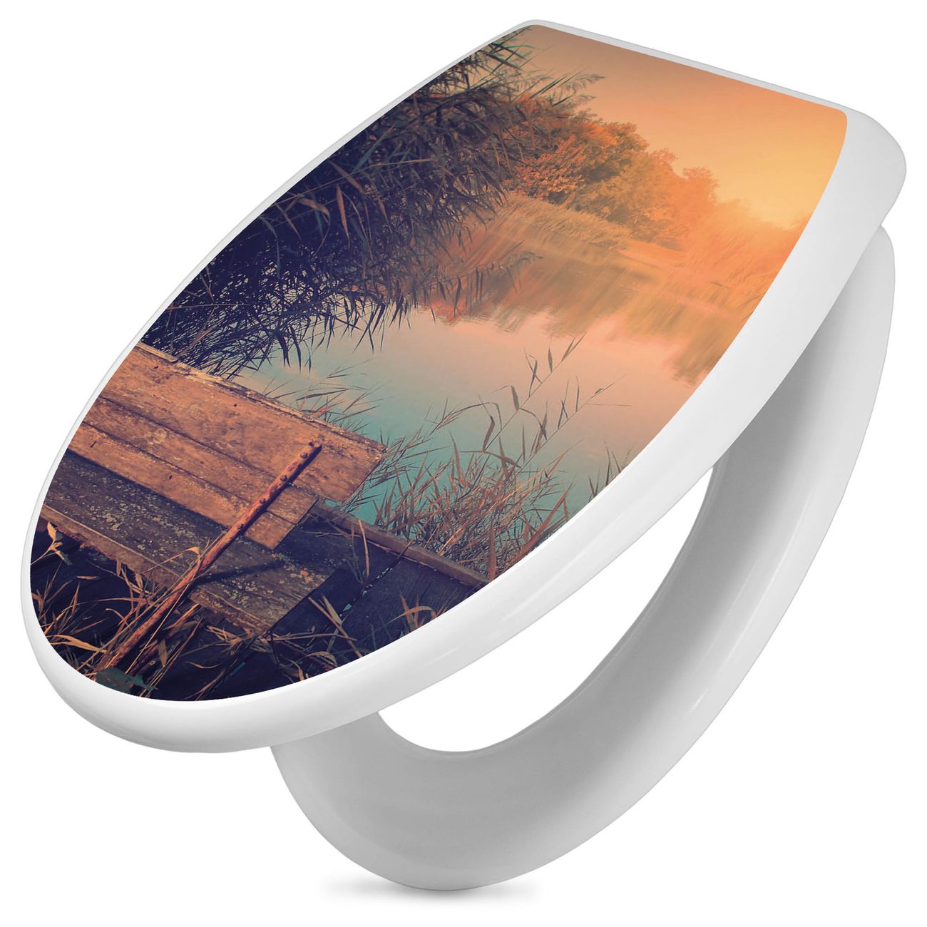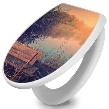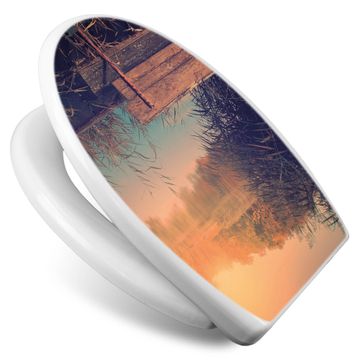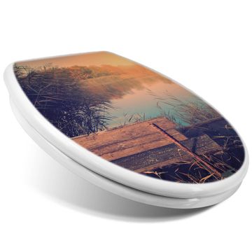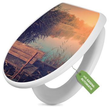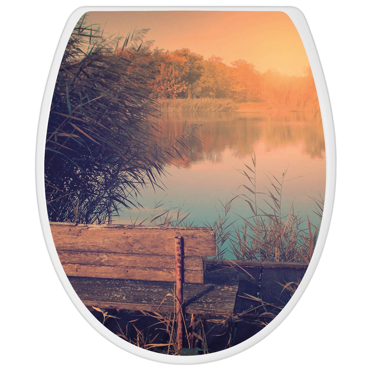 Toilettendeckel weiß mit Absenkautomatik Motiv Bank Am See