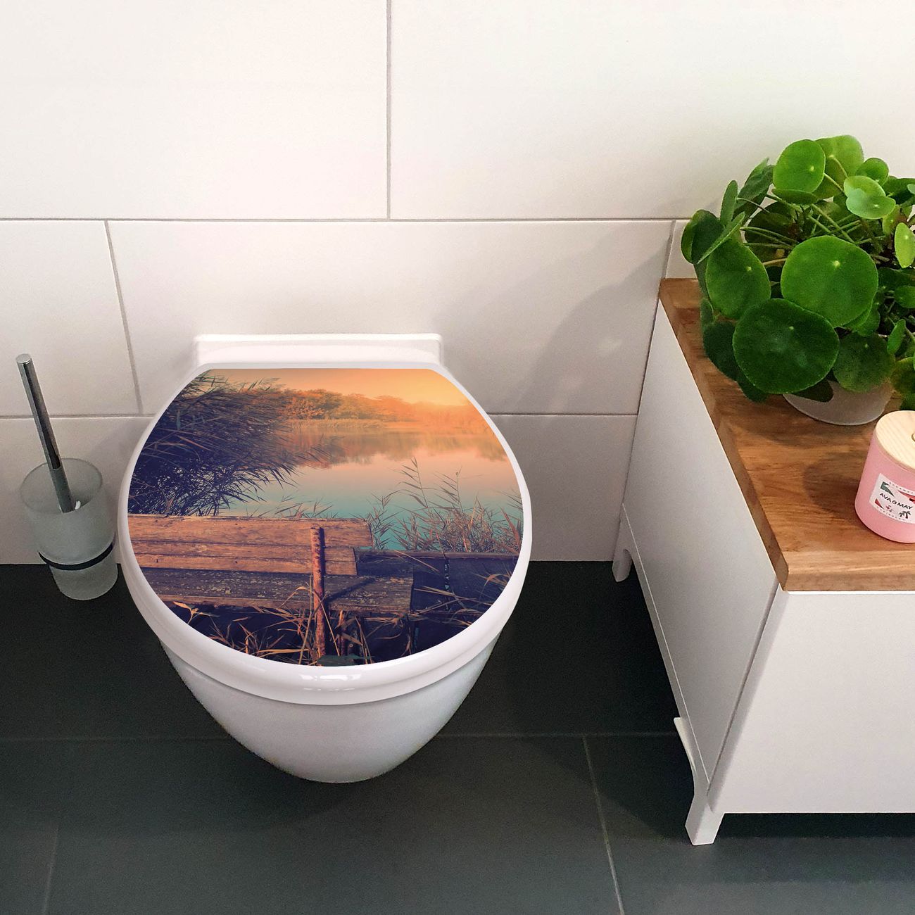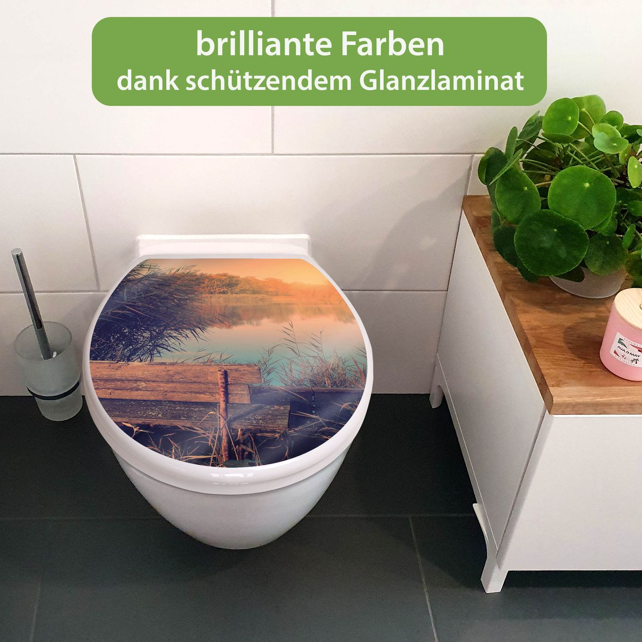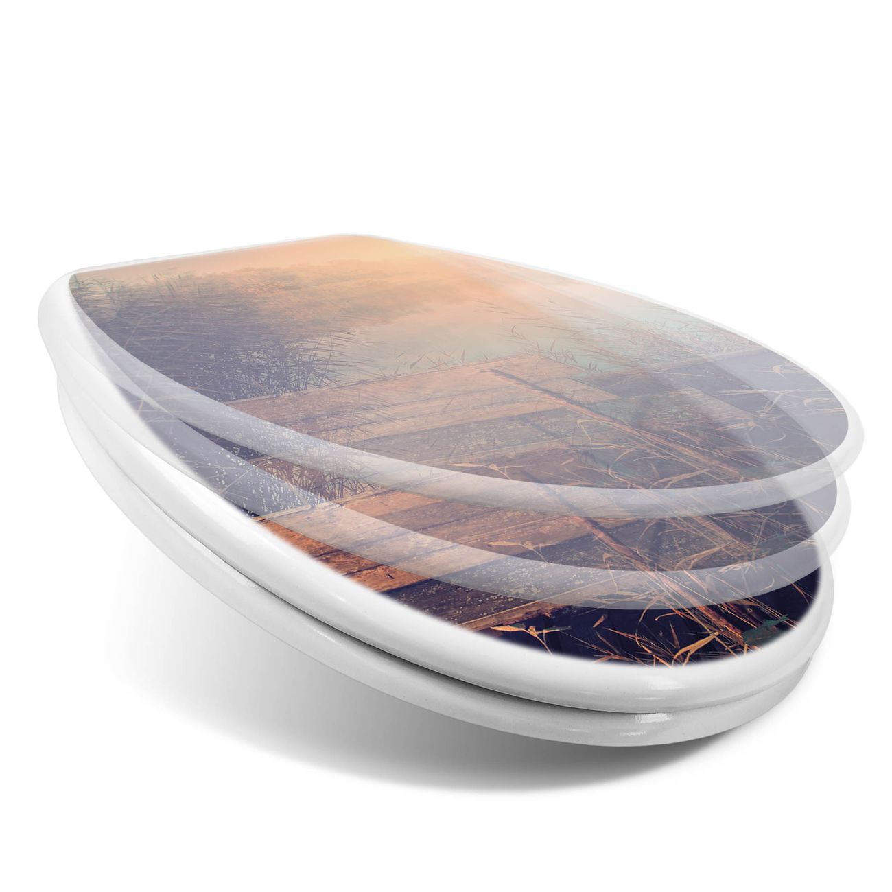 Toilettendeckel weiß mit Absenkautomatik Motiv Bank Am See