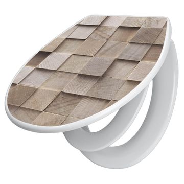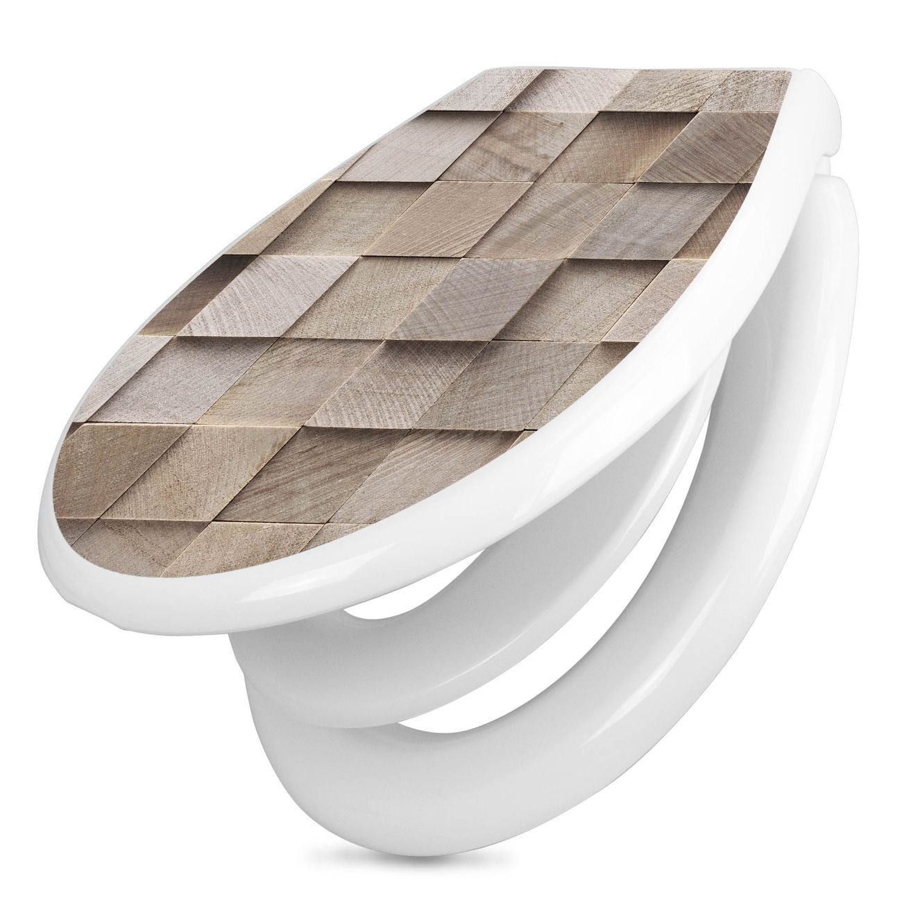 Toilettendeckel weiß mit Absenkautomatik Motiv Bauklötze Relief