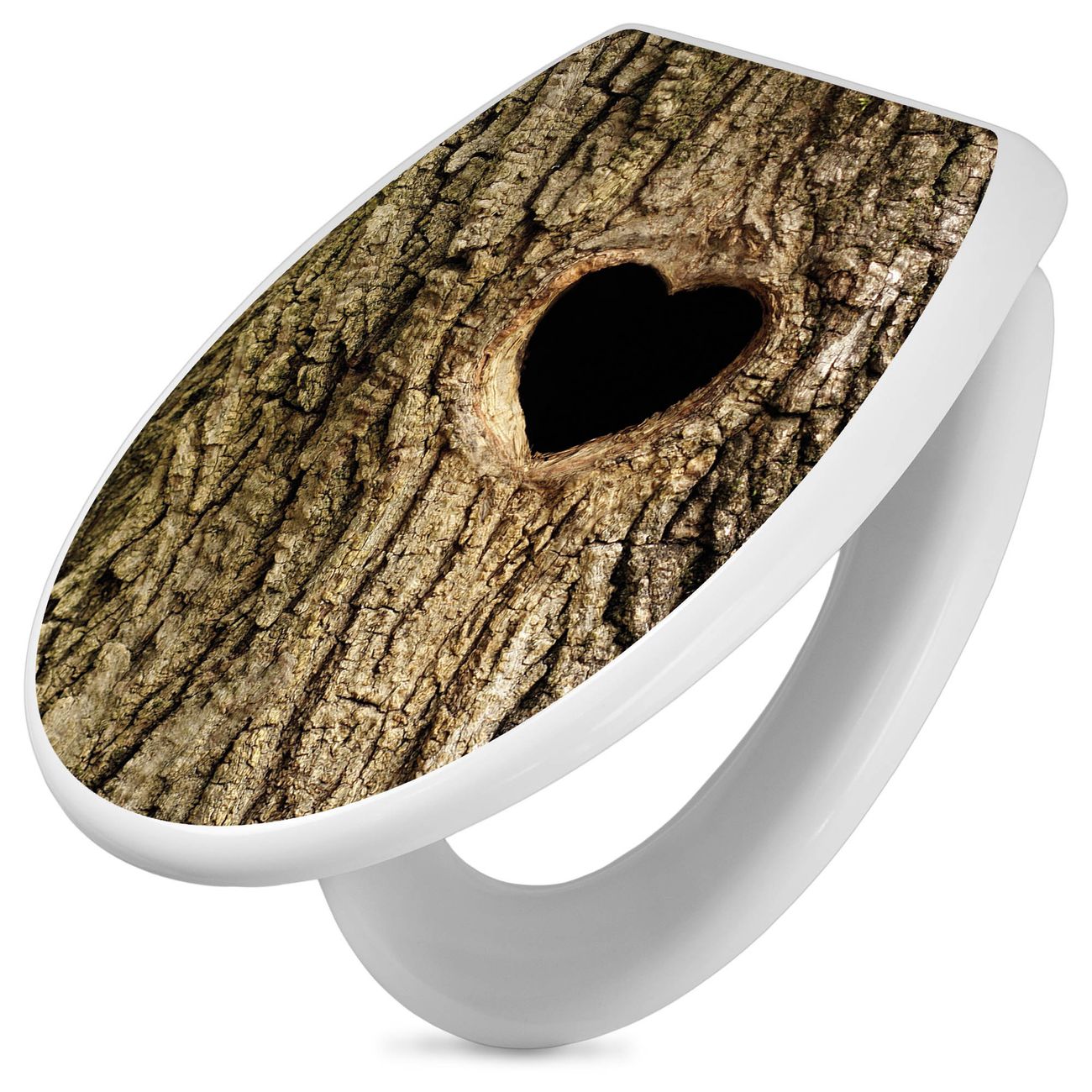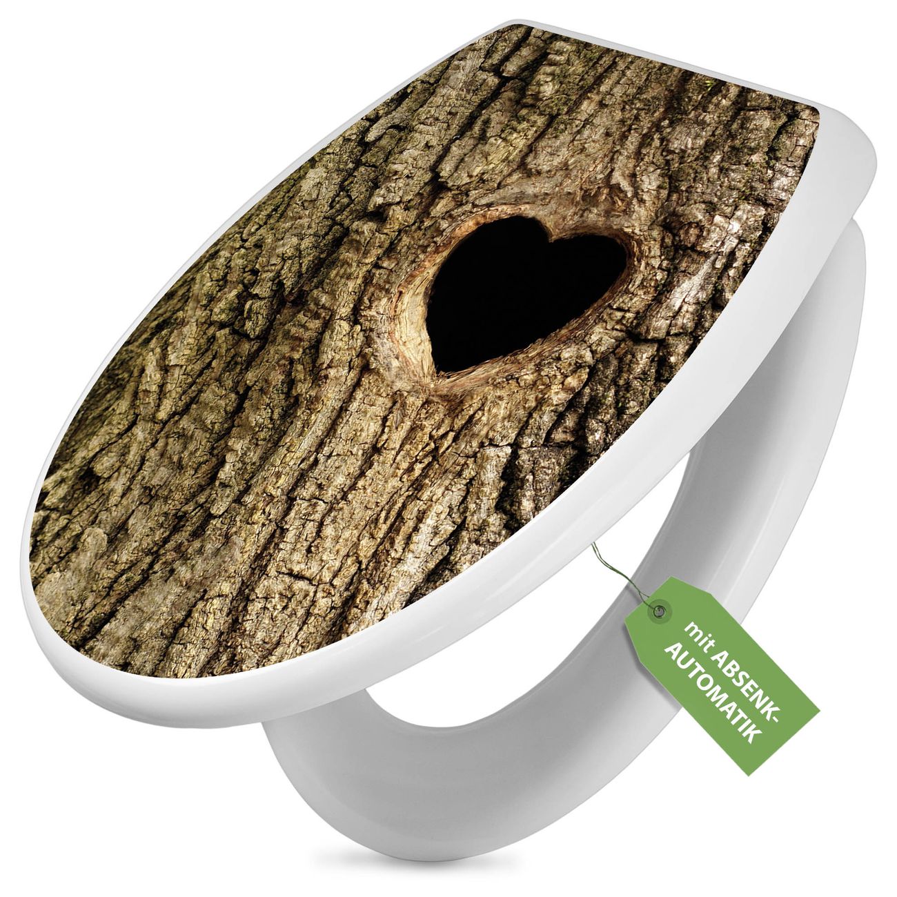 Toilettendeckel weiß mit Absenkautomatik Motiv Baumherz
