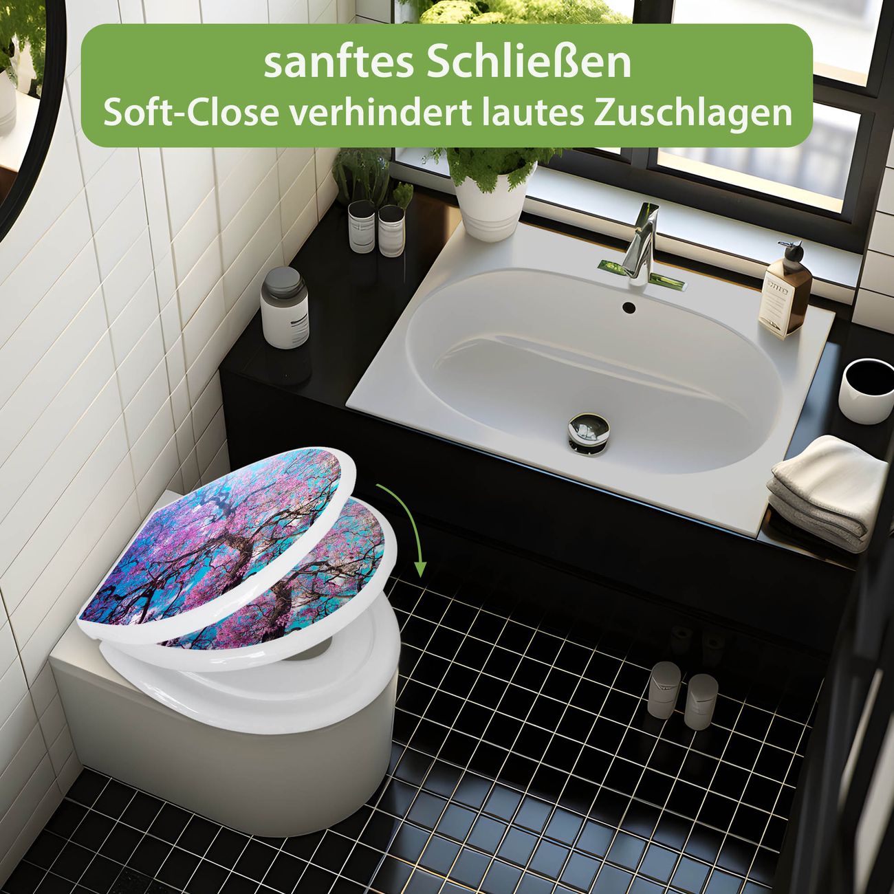 Toilettendeckel weiß mit Absenkautomatik Motiv Baumkrone 2