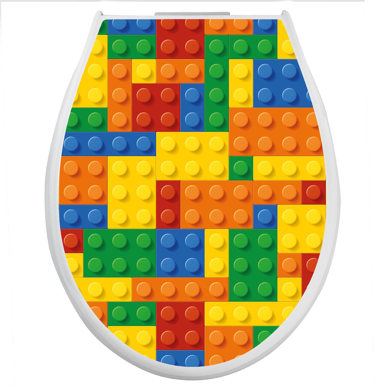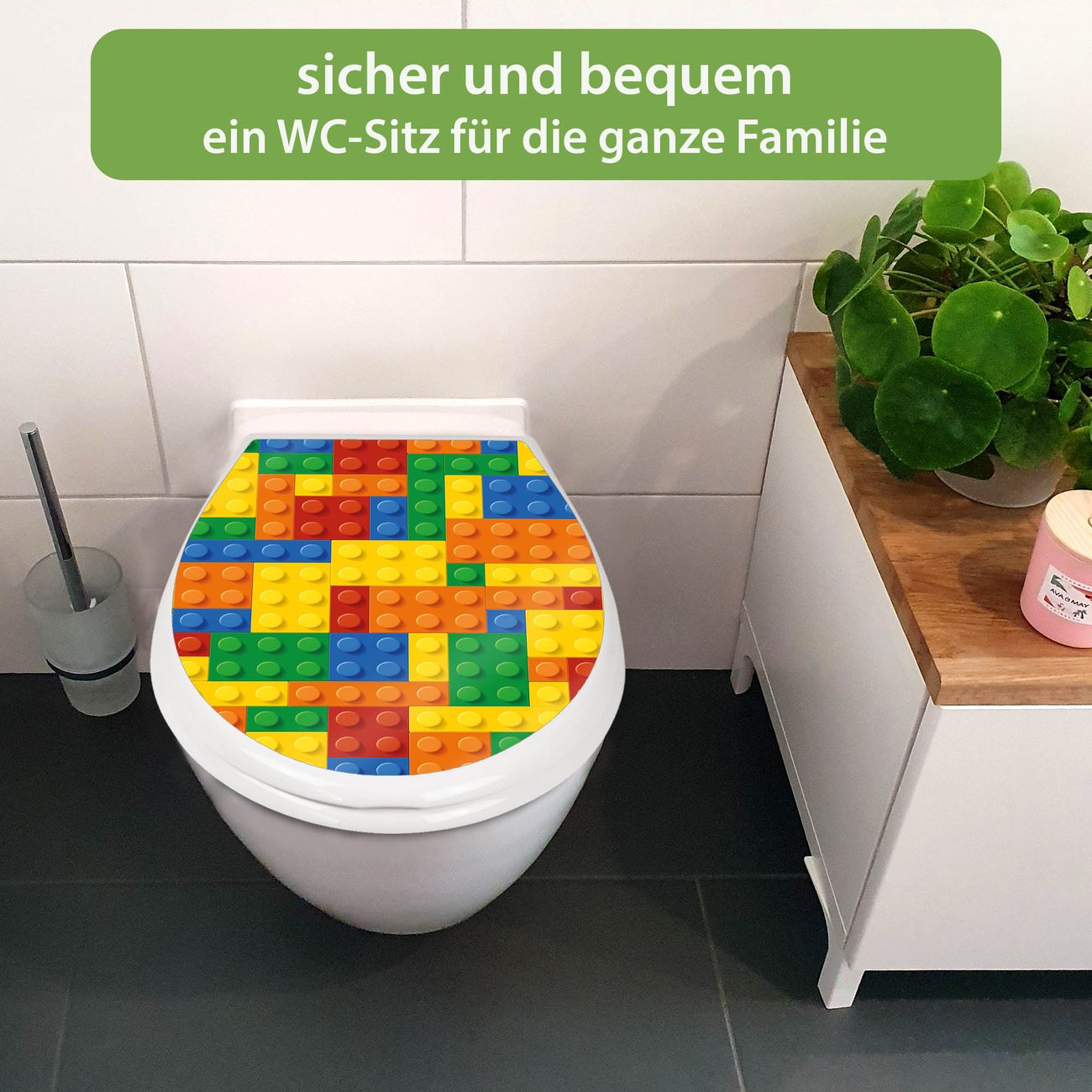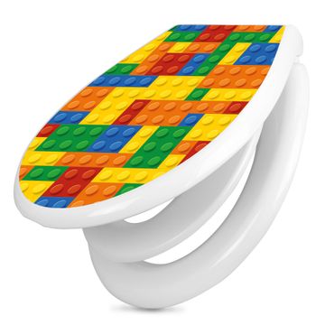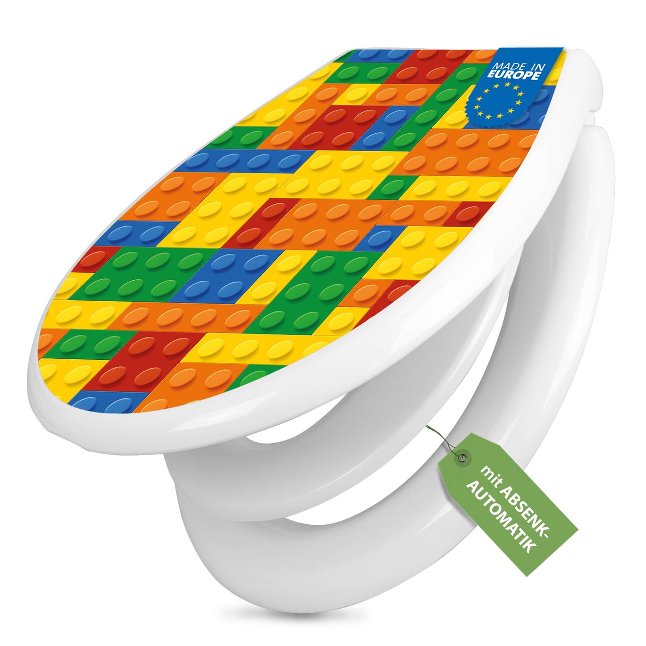 Toilettendeckel weiß mit Absenkautomatik Motiv Bausteine