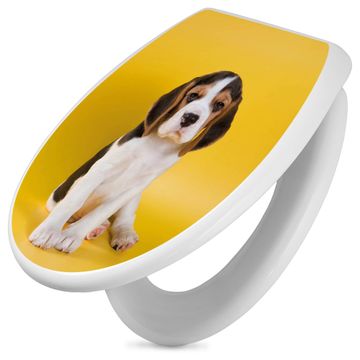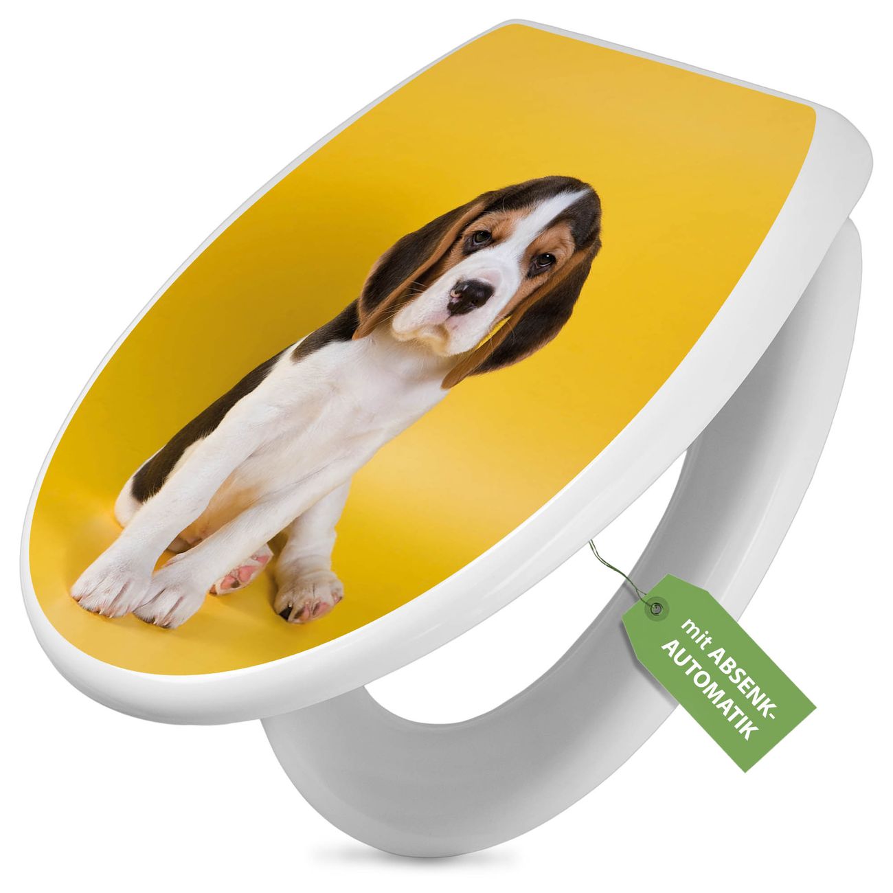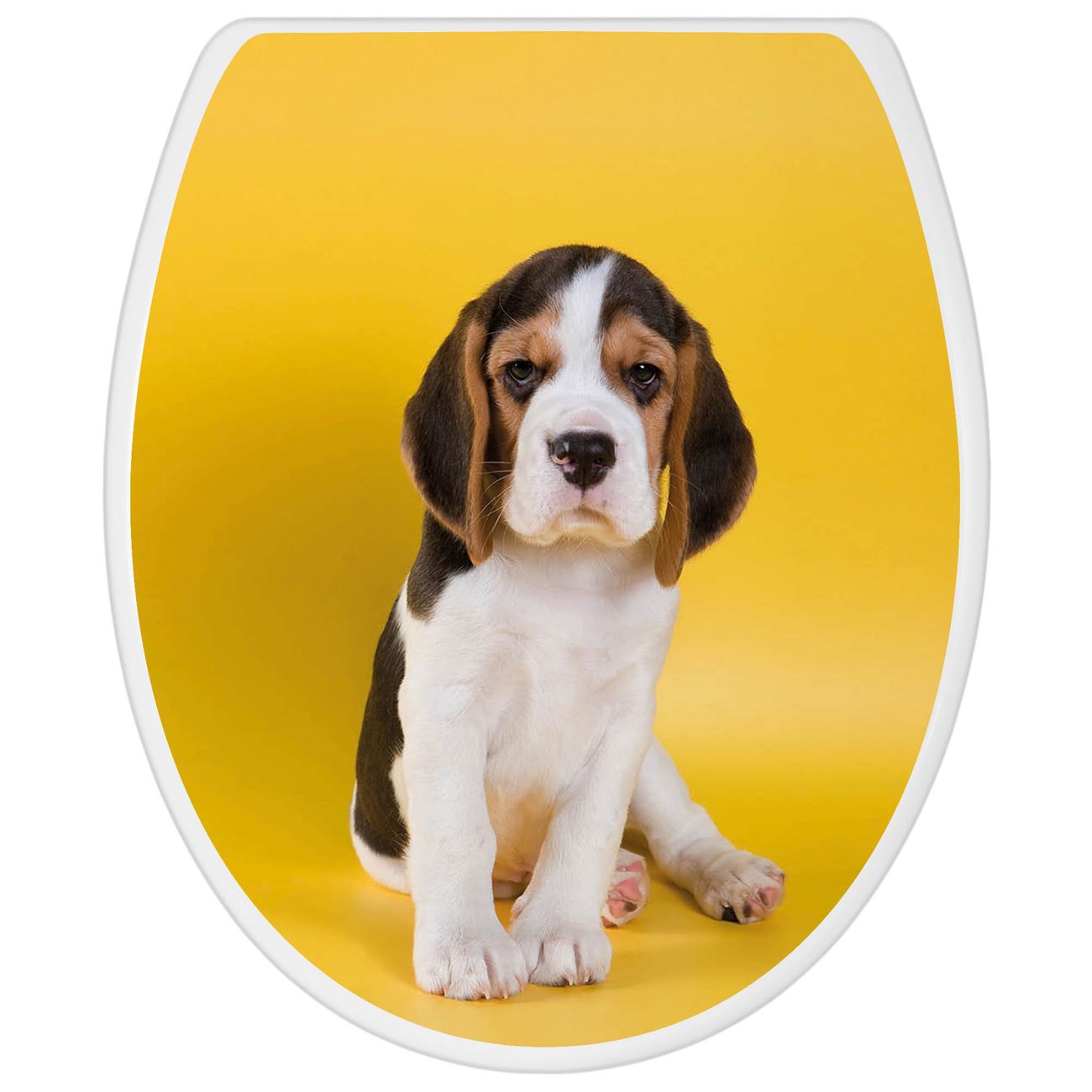 Toilettendeckel weiß mit Absenkautomatik Motiv Beagle