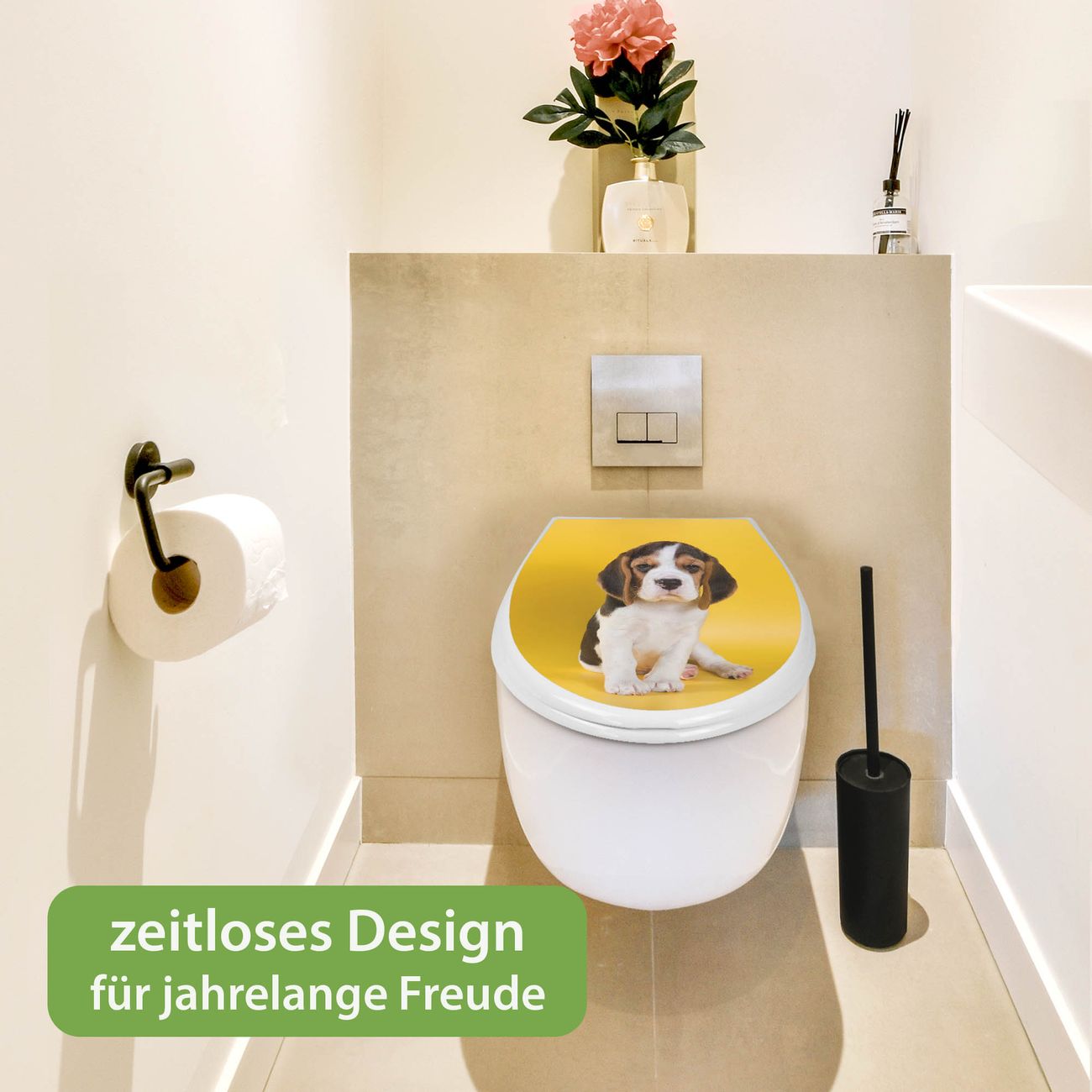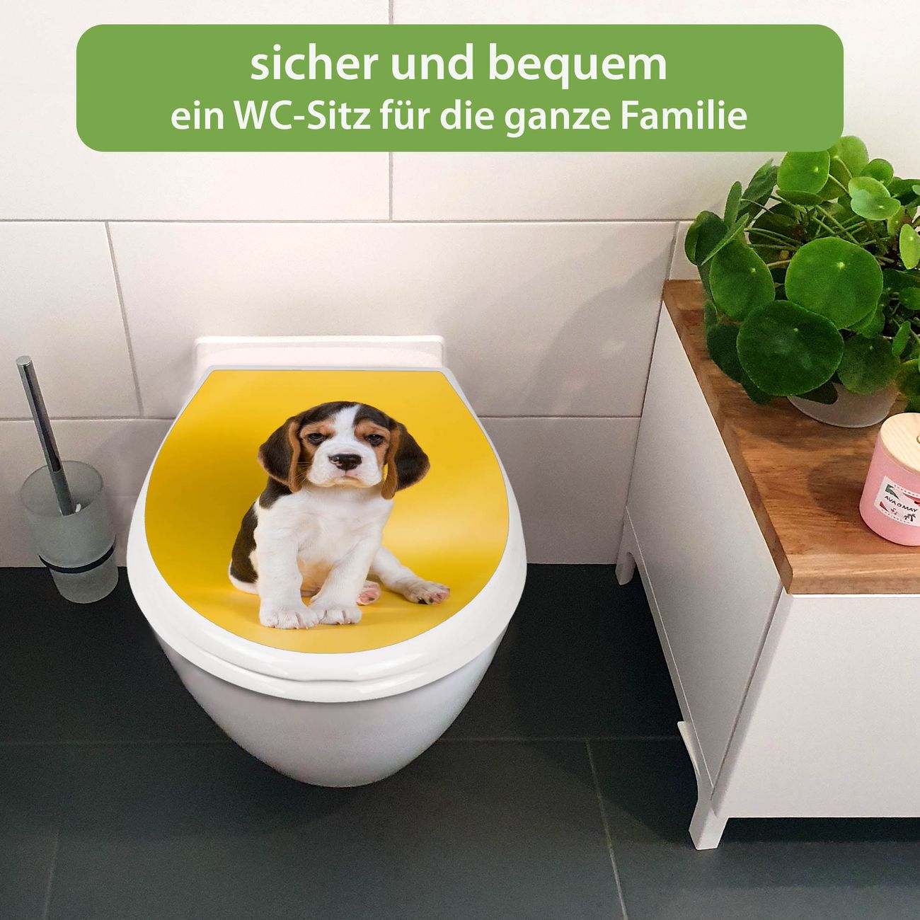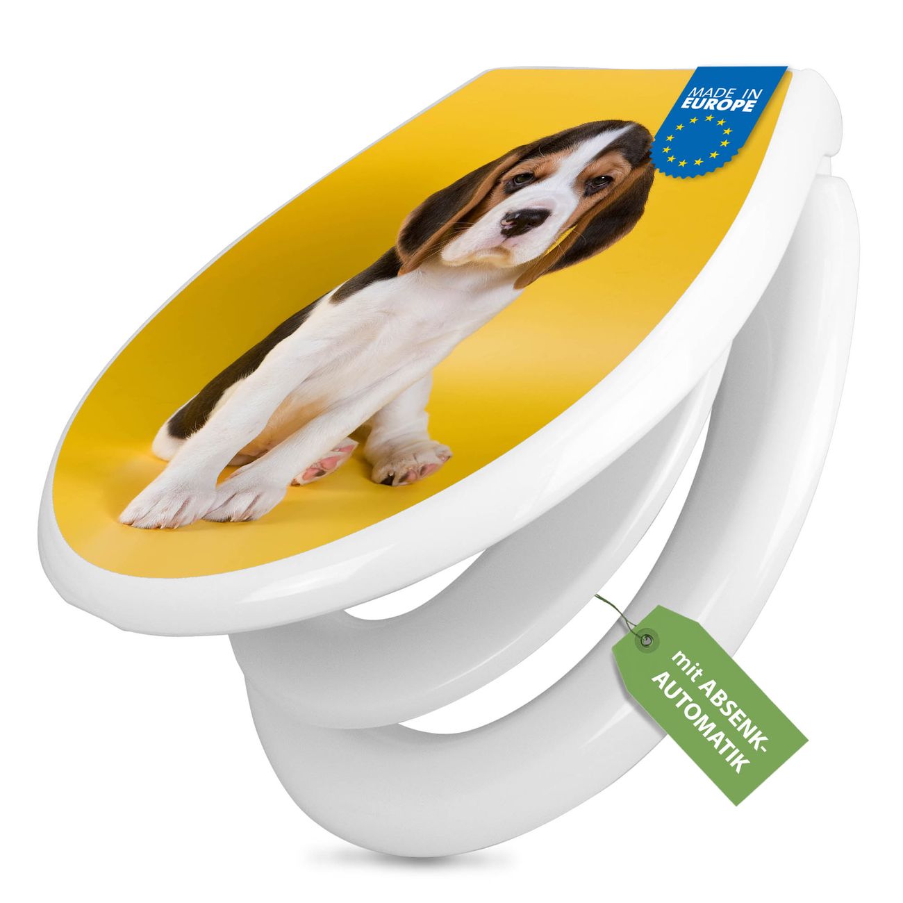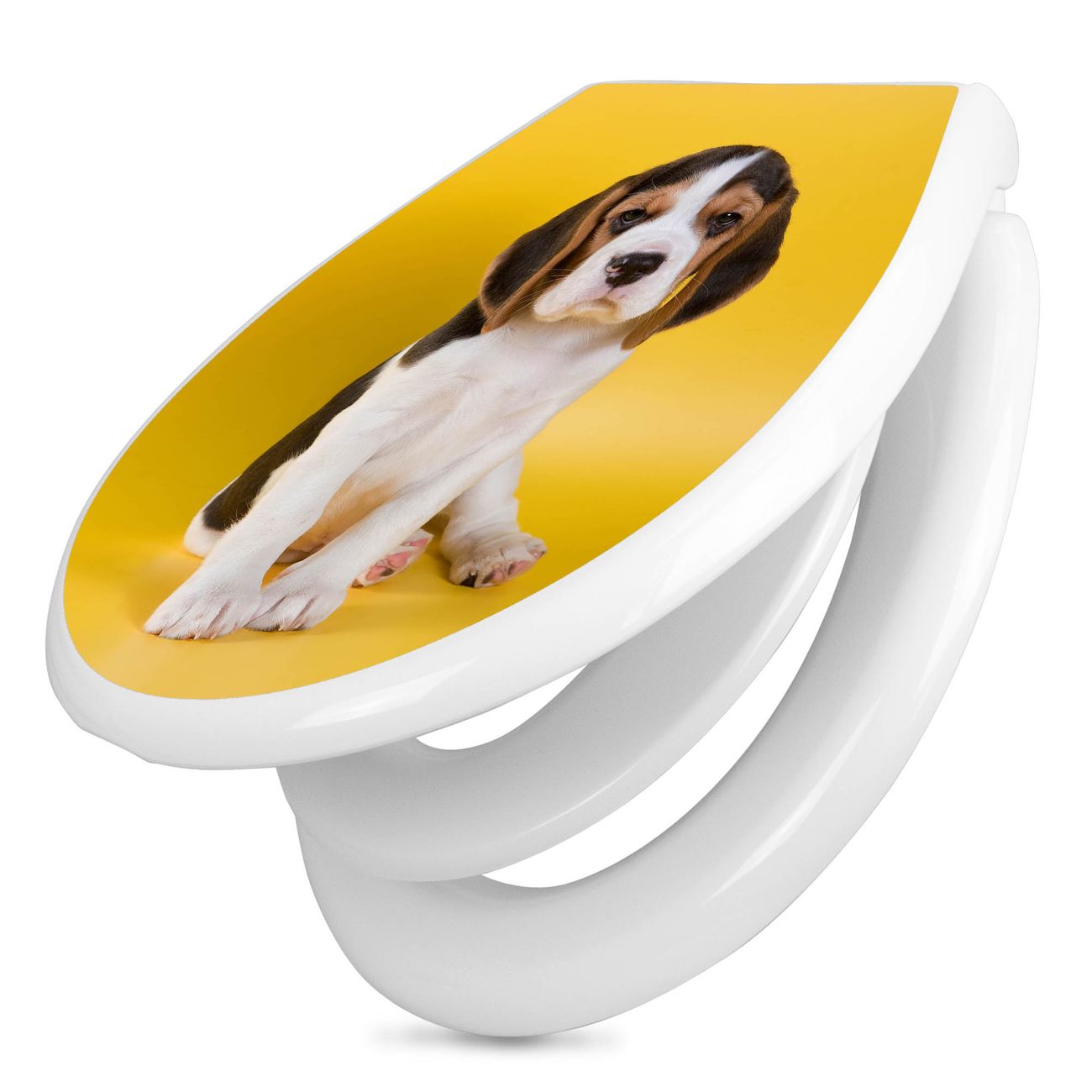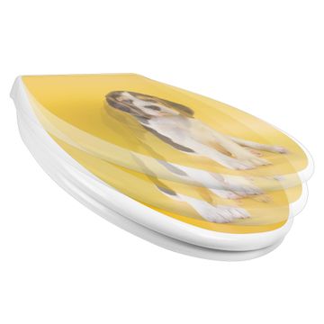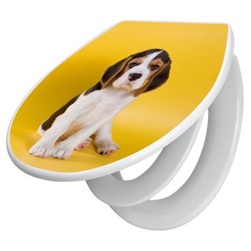 Toilettendeckel weiß mit Absenkautomatik Motiv Beagle
