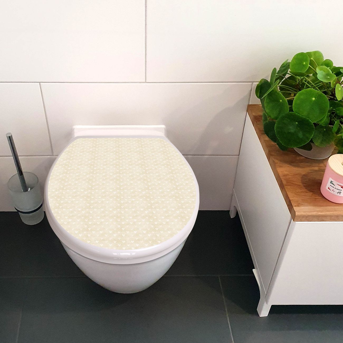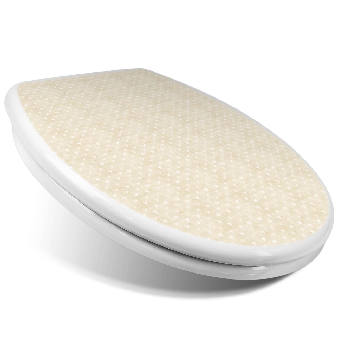 Toilettendeckel weiß mit Absenkautomatik Motiv Beige Herzen