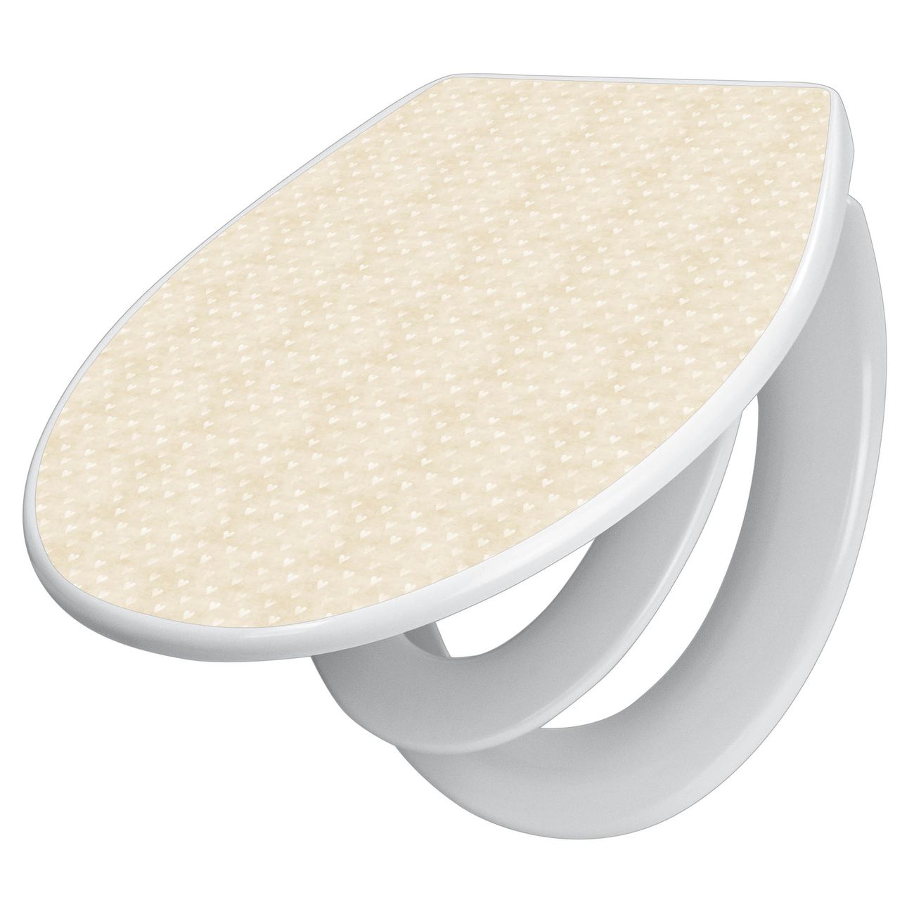 Toilettendeckel weiß mit Absenkautomatik Motiv Beige Herzen