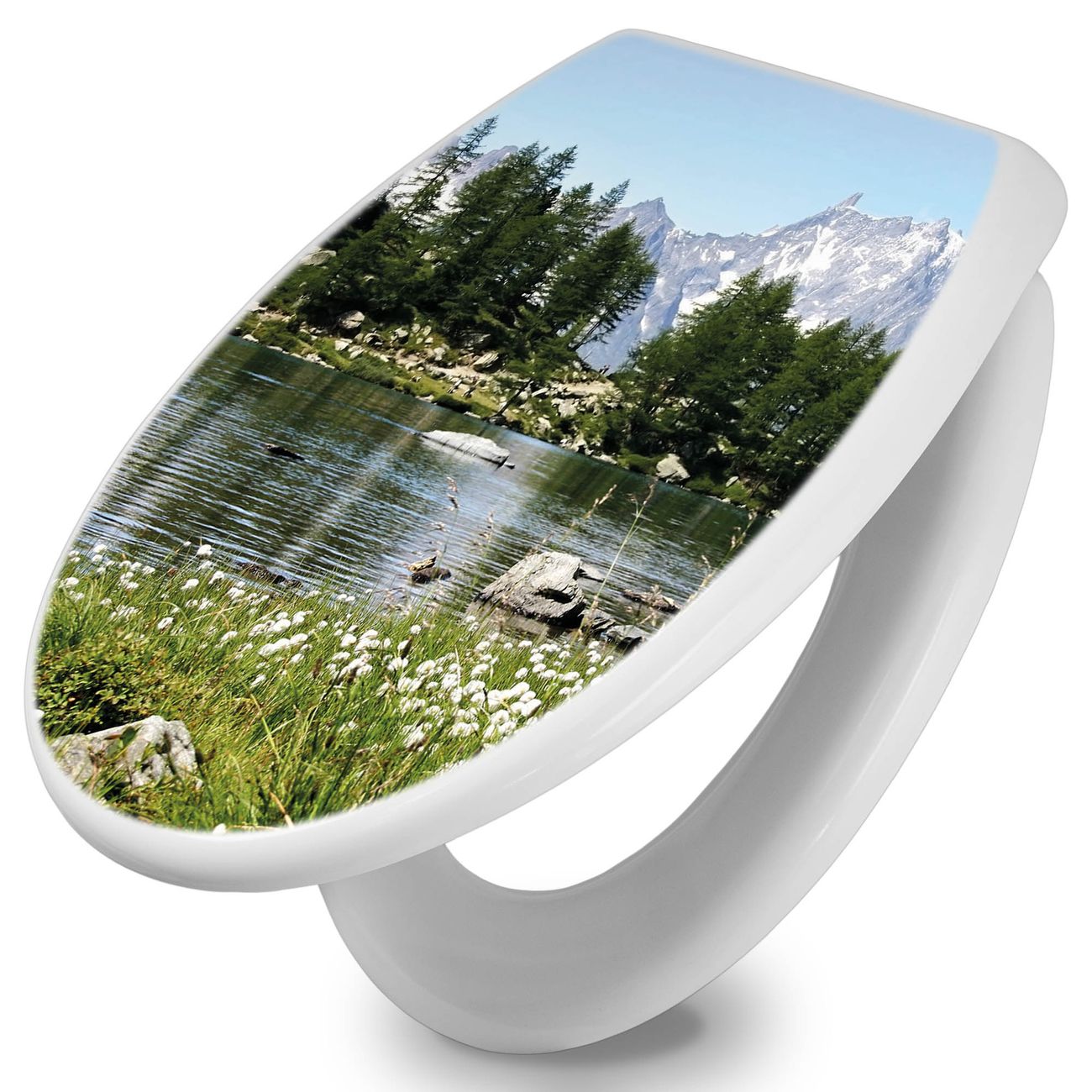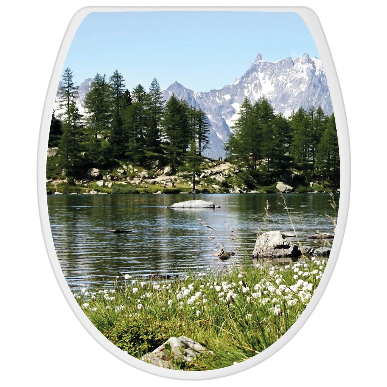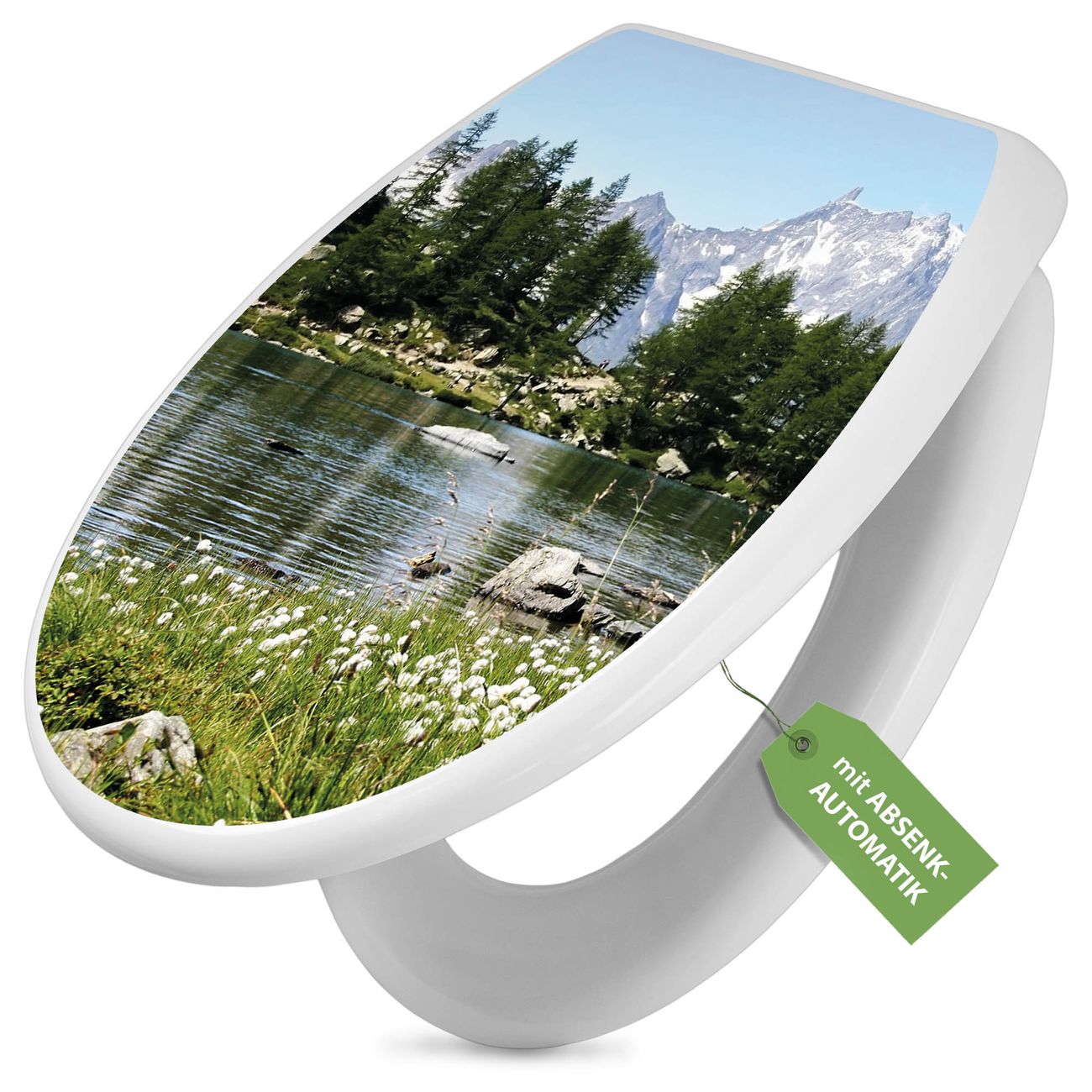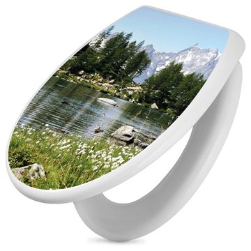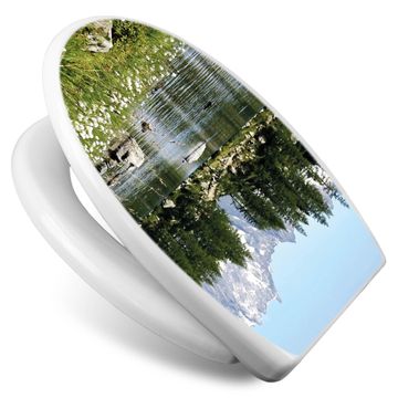 Toilettendeckel weiß mit Absenkautomatik Motiv Bergidylle