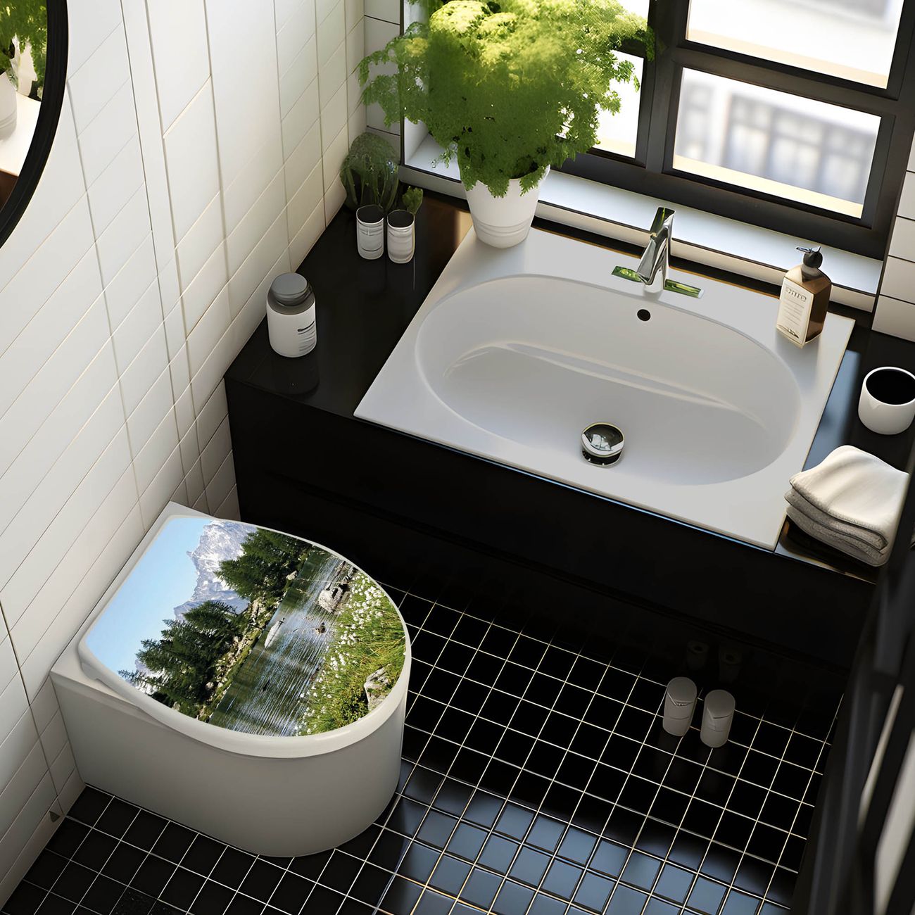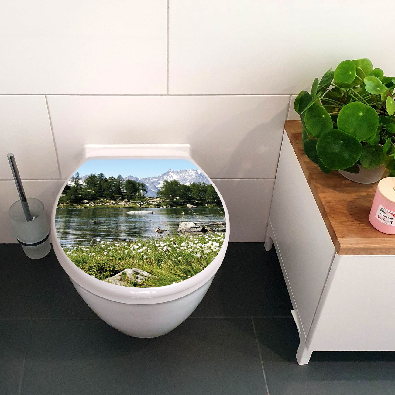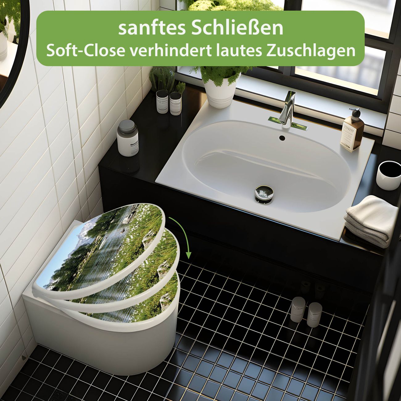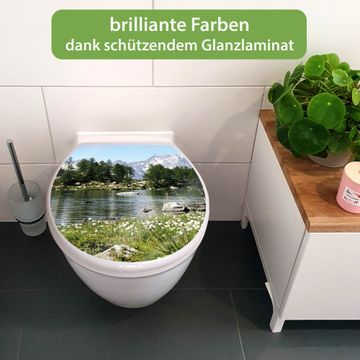 Toilettendeckel weiß mit Absenkautomatik Motiv Bergidylle