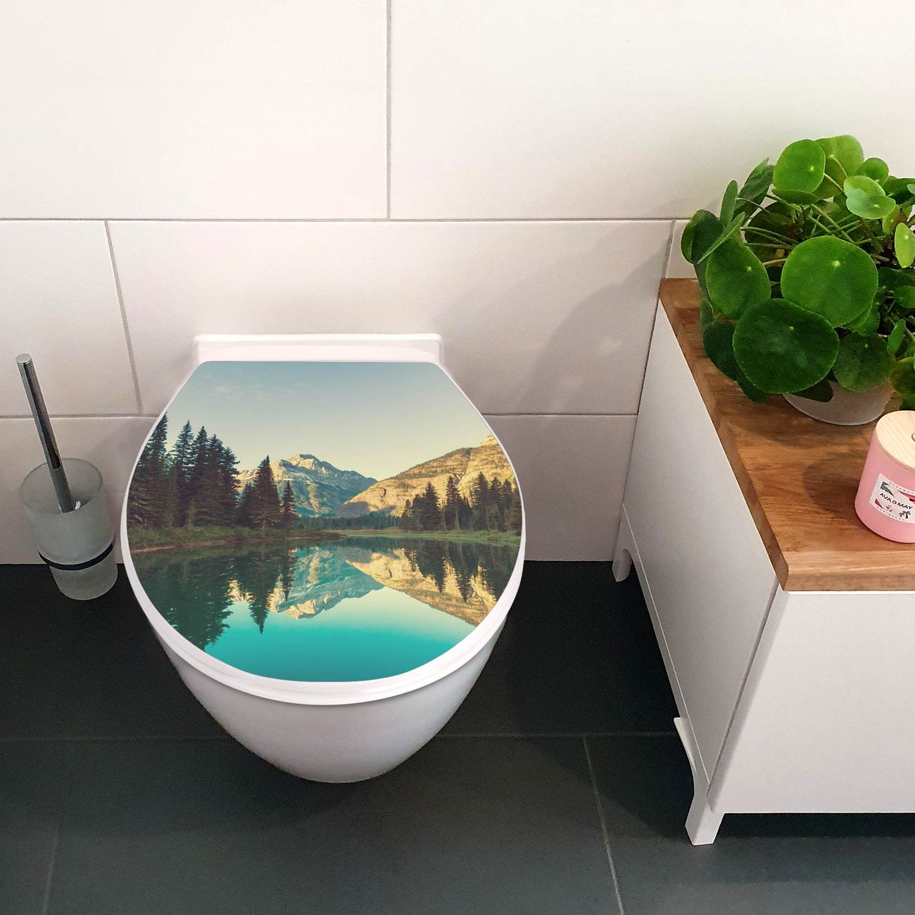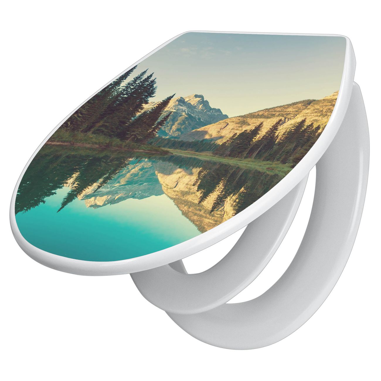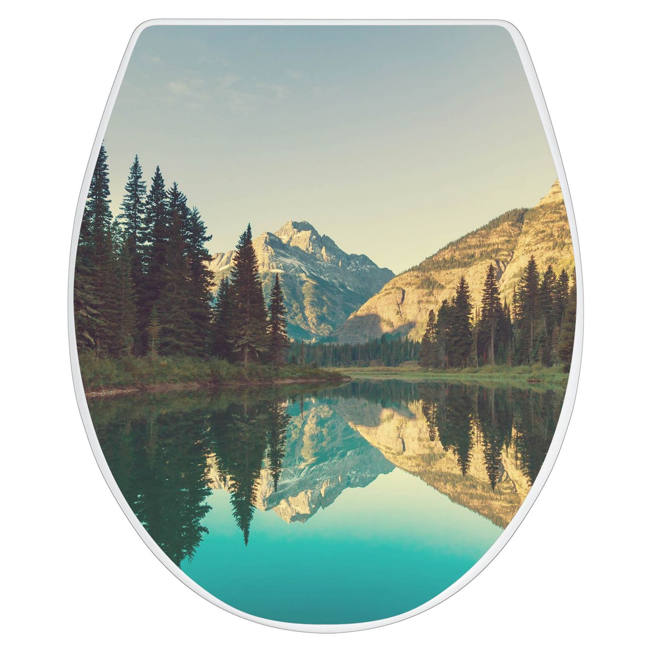 Toilettendeckel weiß mit Absenkautomatik Motiv Bergsee