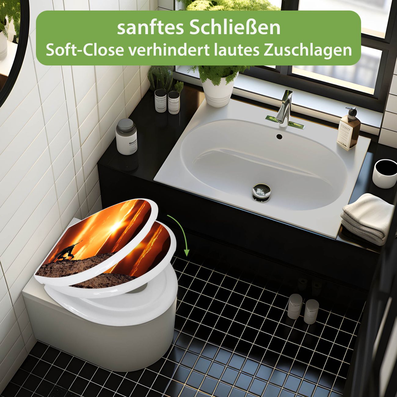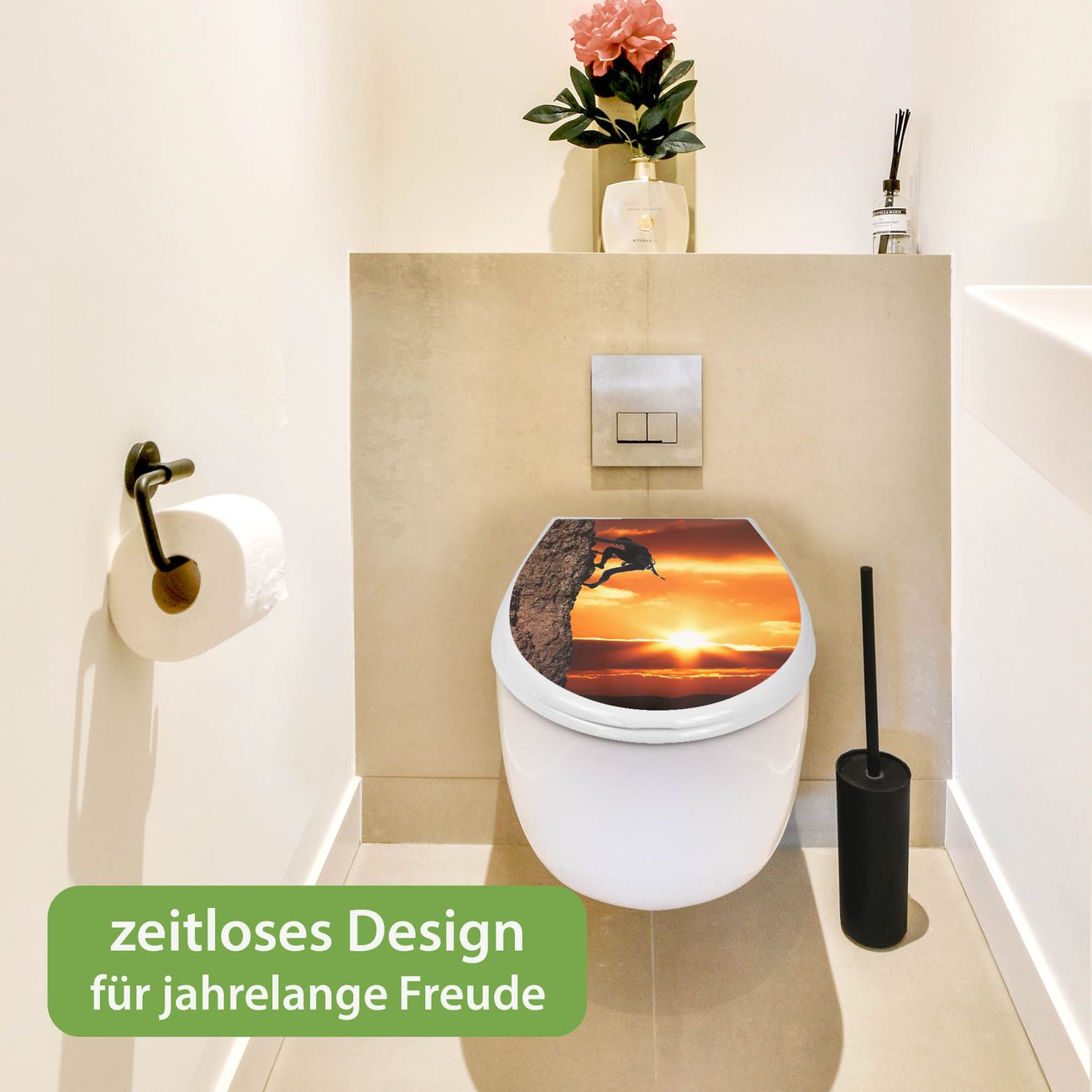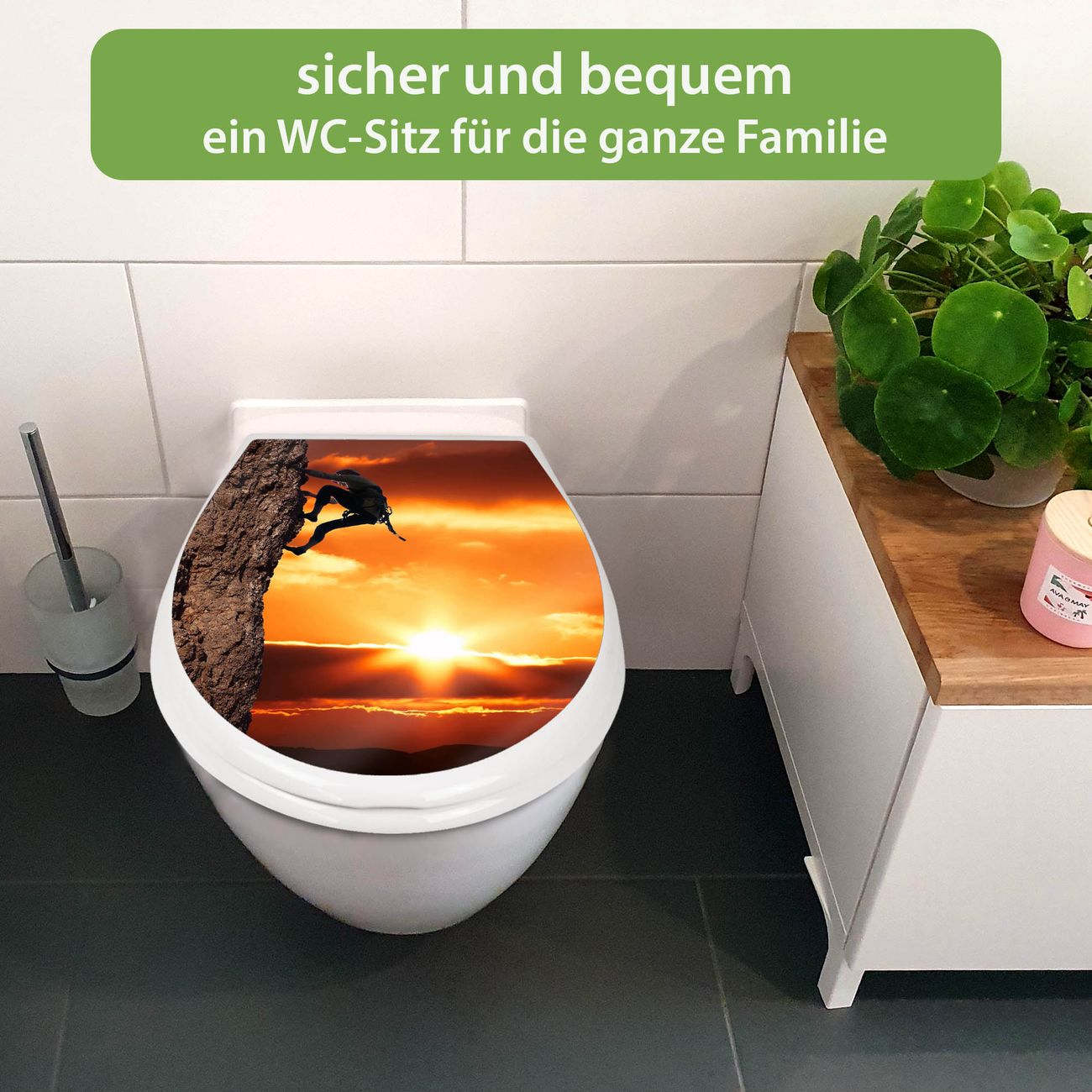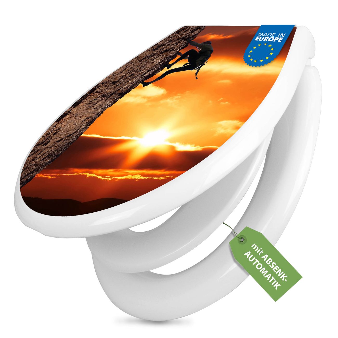 Toilettendeckel weiß mit Absenkautomatik Motiv Bergsteiger