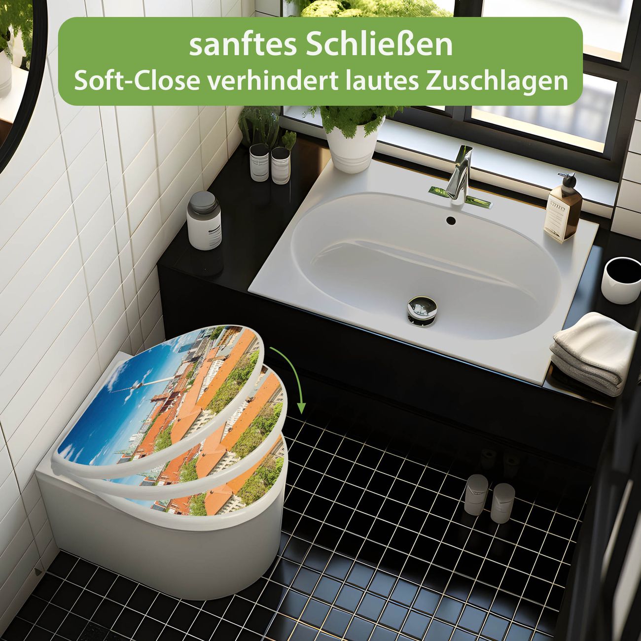 Toilettendeckel weiß mit Absenkautomatik Motiv Berlin Mitte