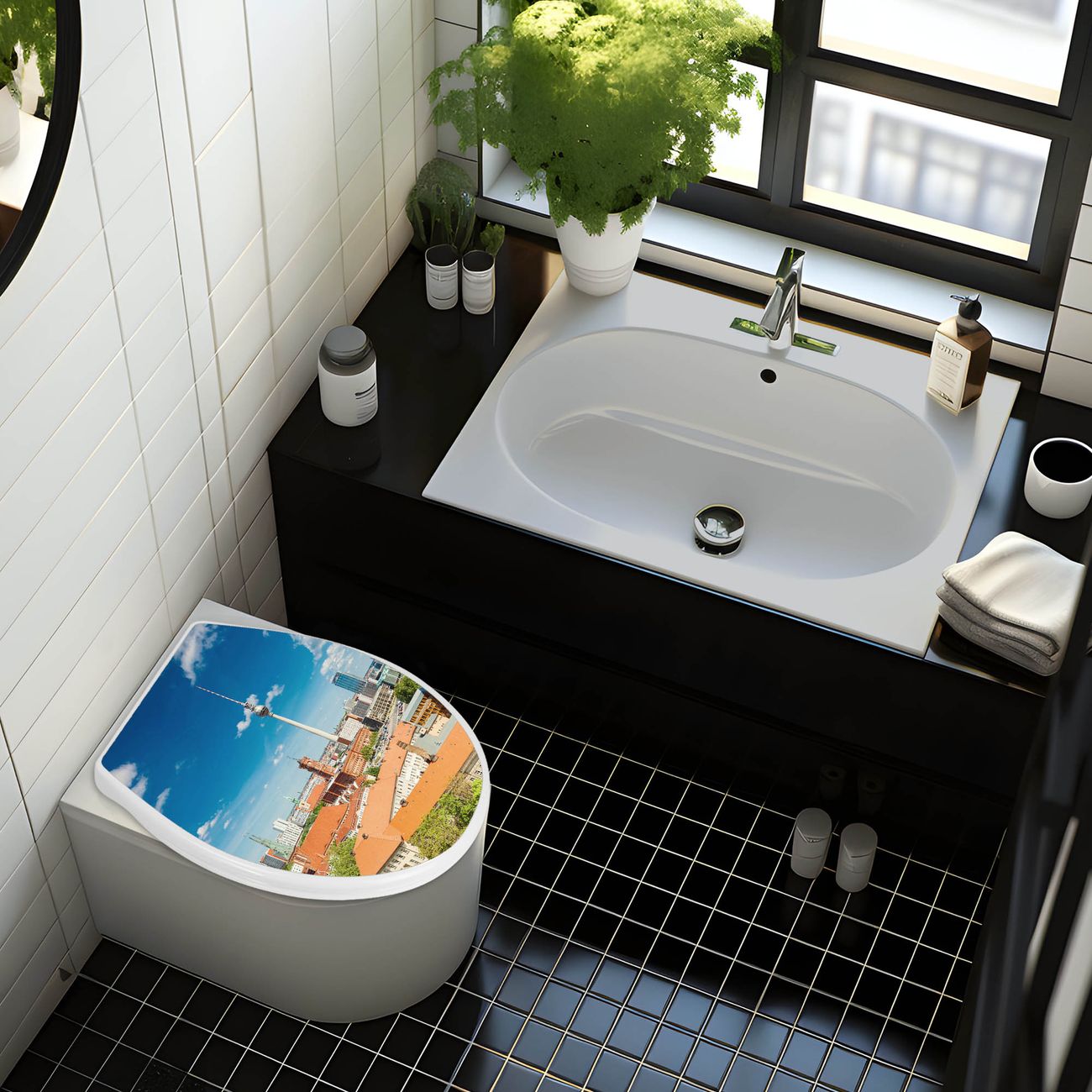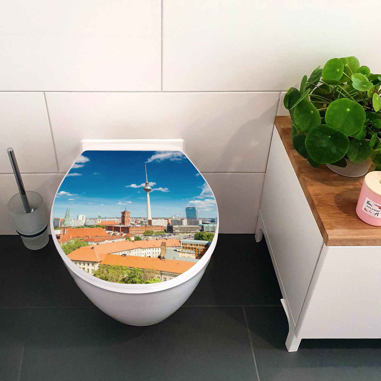 Toilettendeckel weiß mit Absenkautomatik Motiv Berlin Mitte